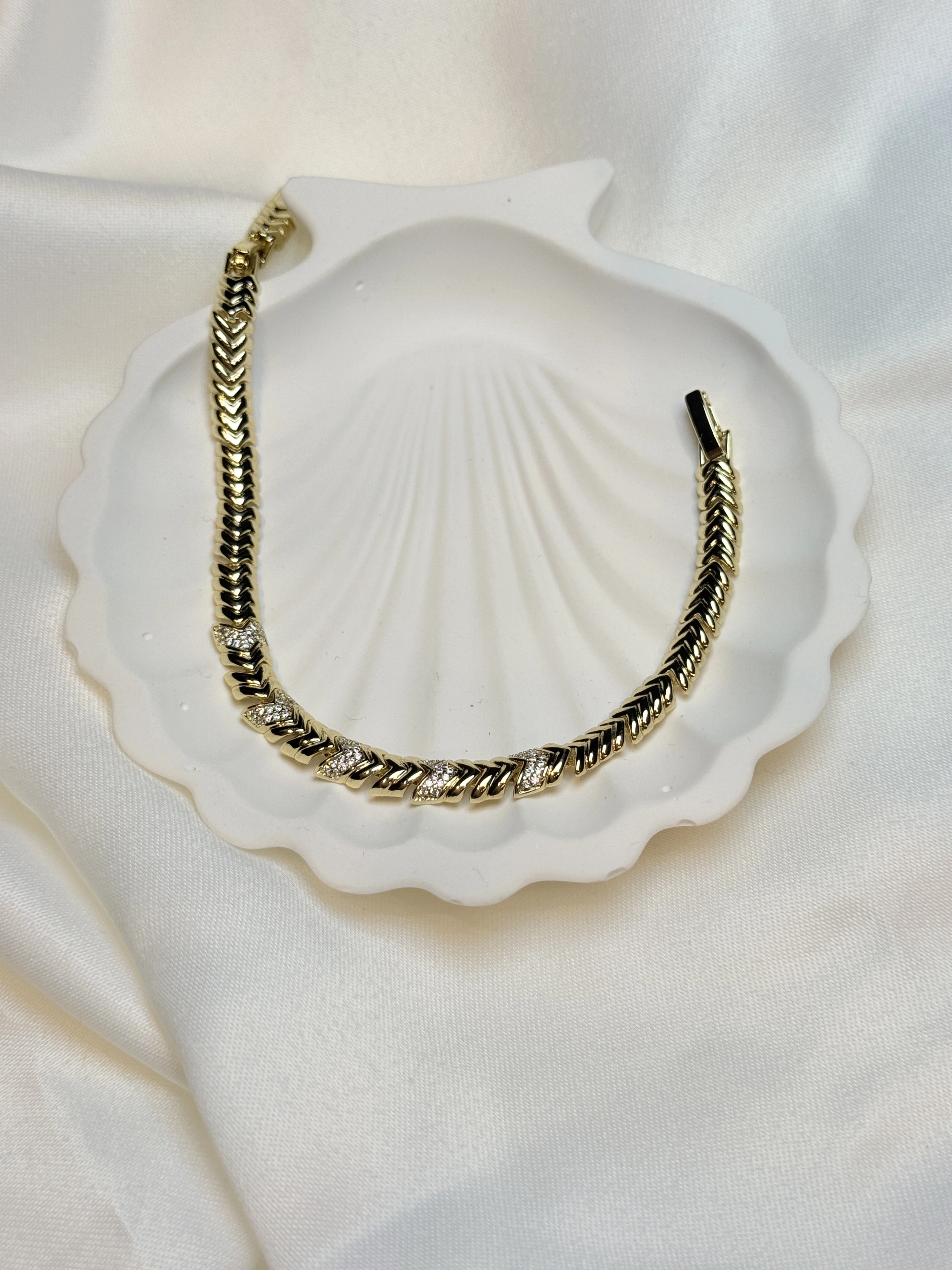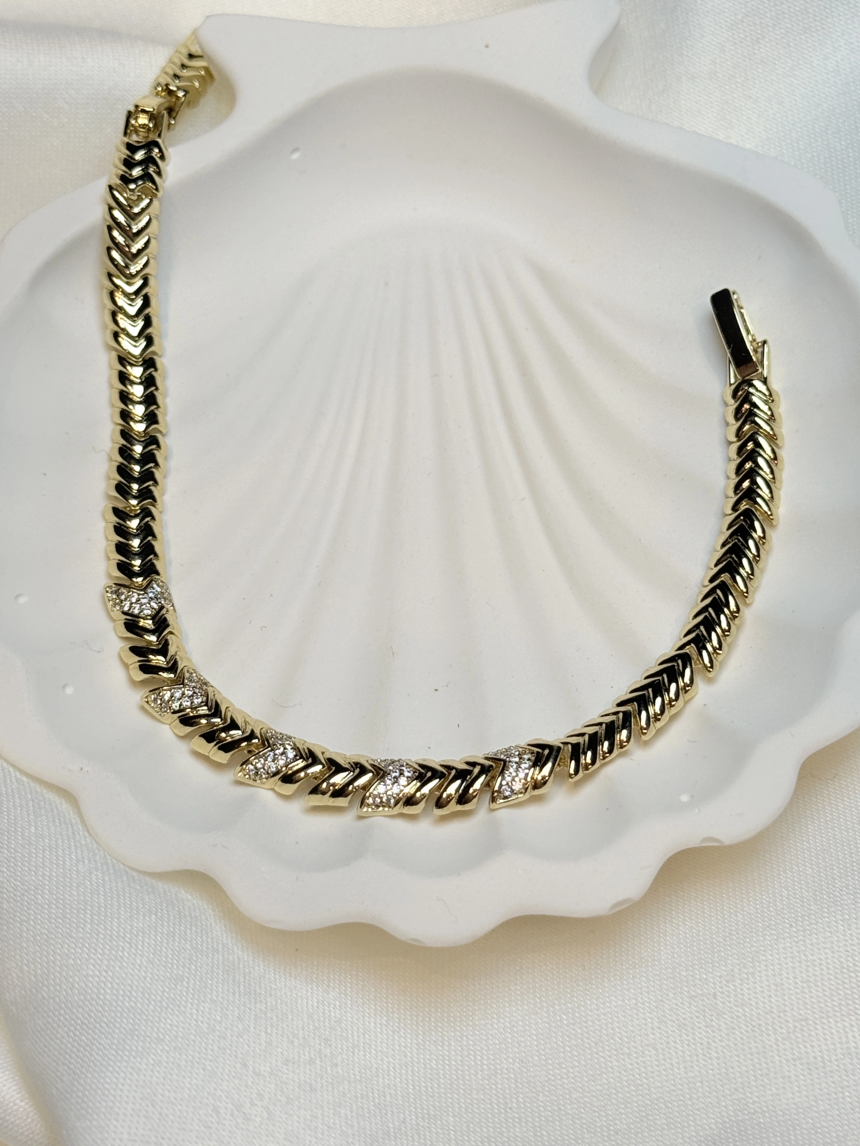 Gold Rengi Zirkon Taş Detaylı Sıralı V Model Kadın Bileklik