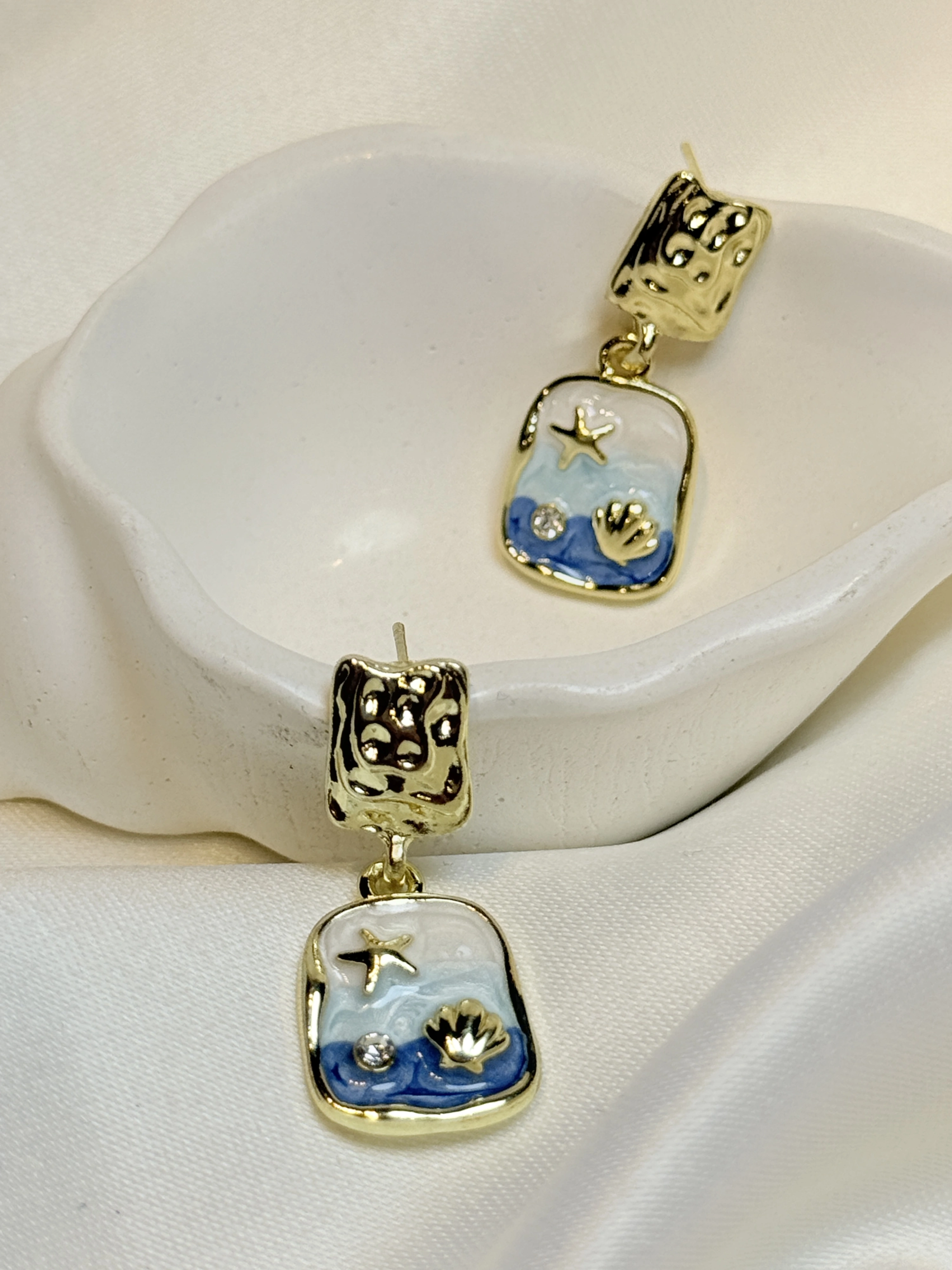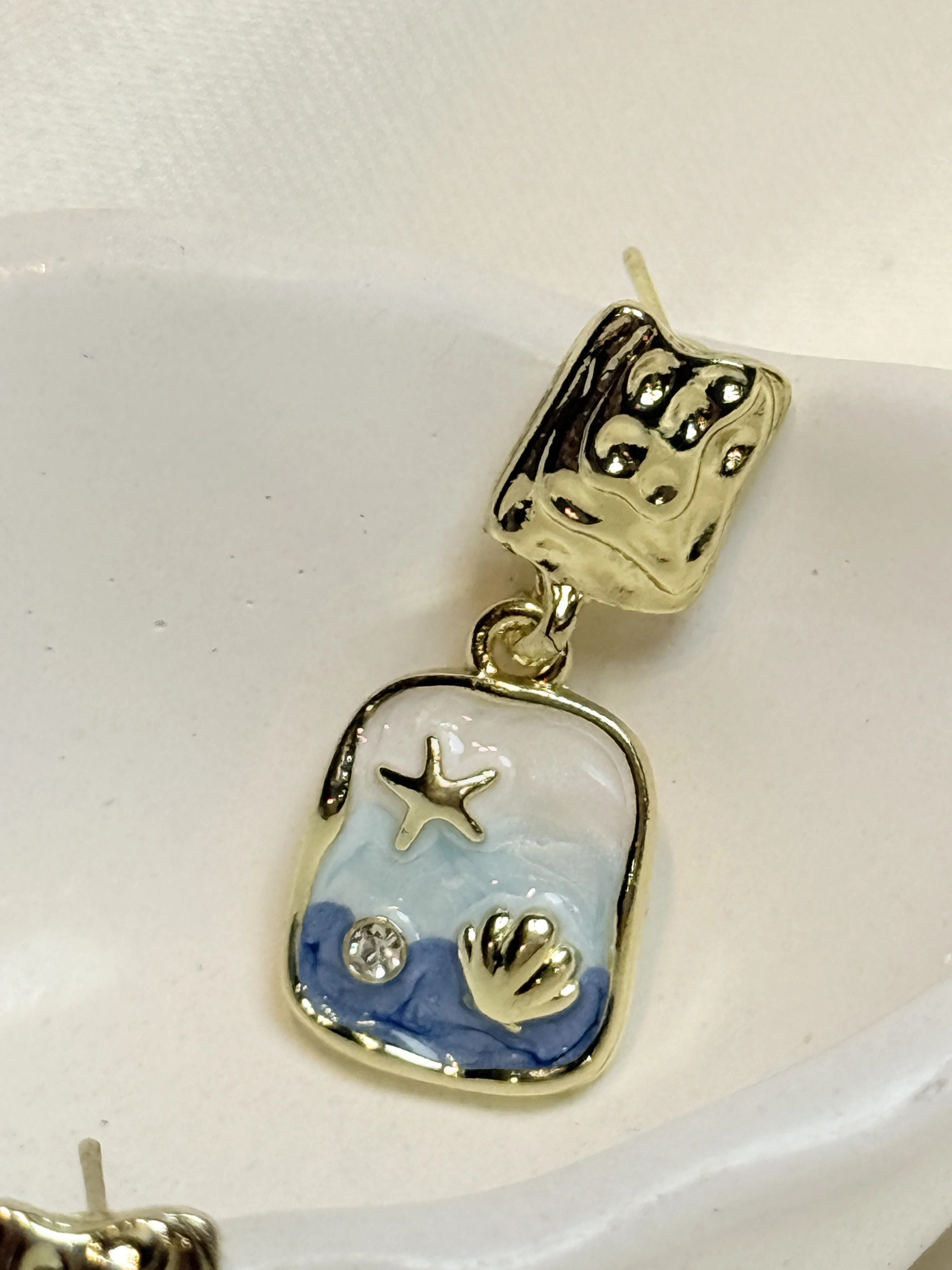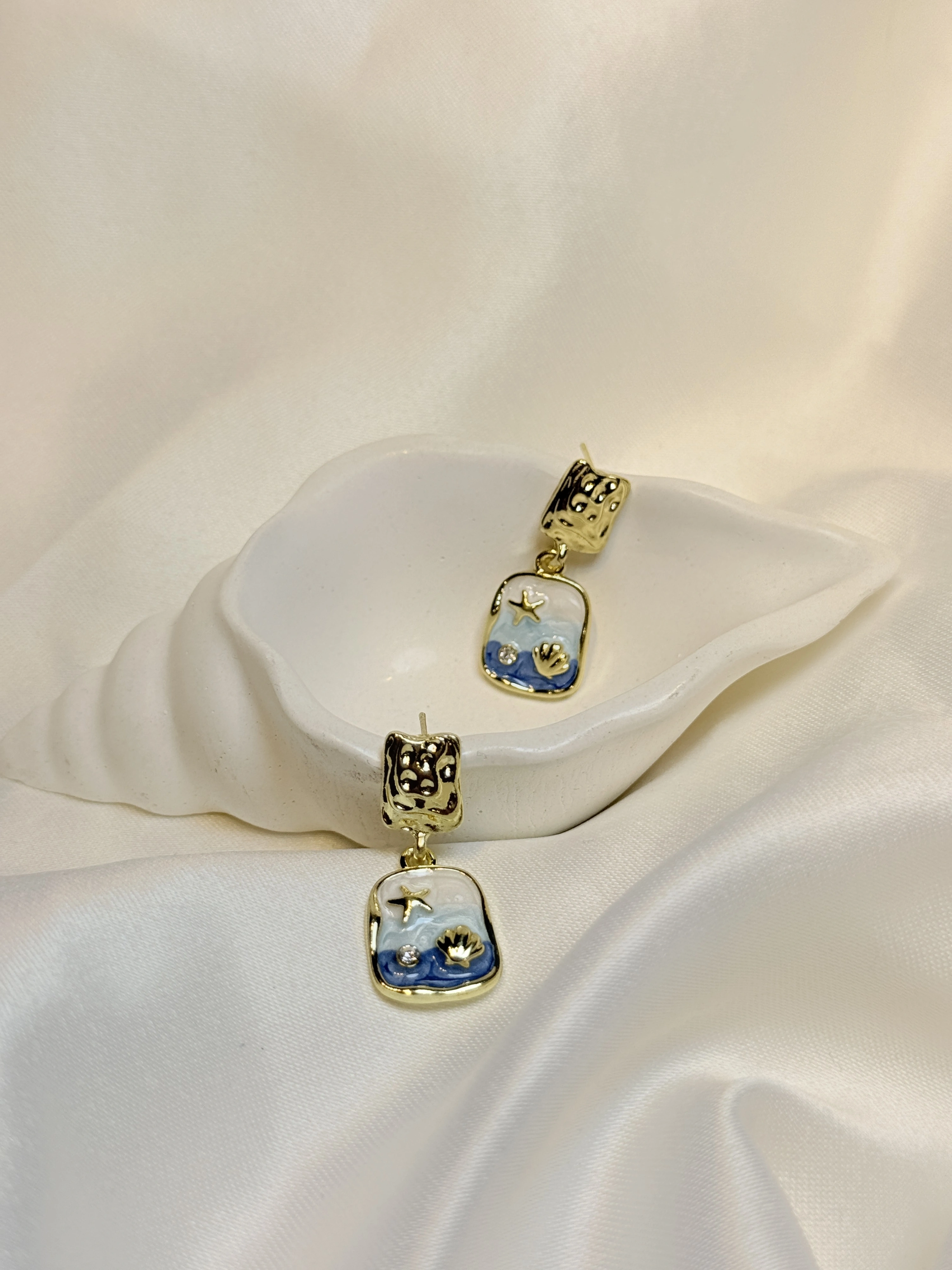 Gold Rengi Deniz İçi Desenli Mineli Kadın Küpe