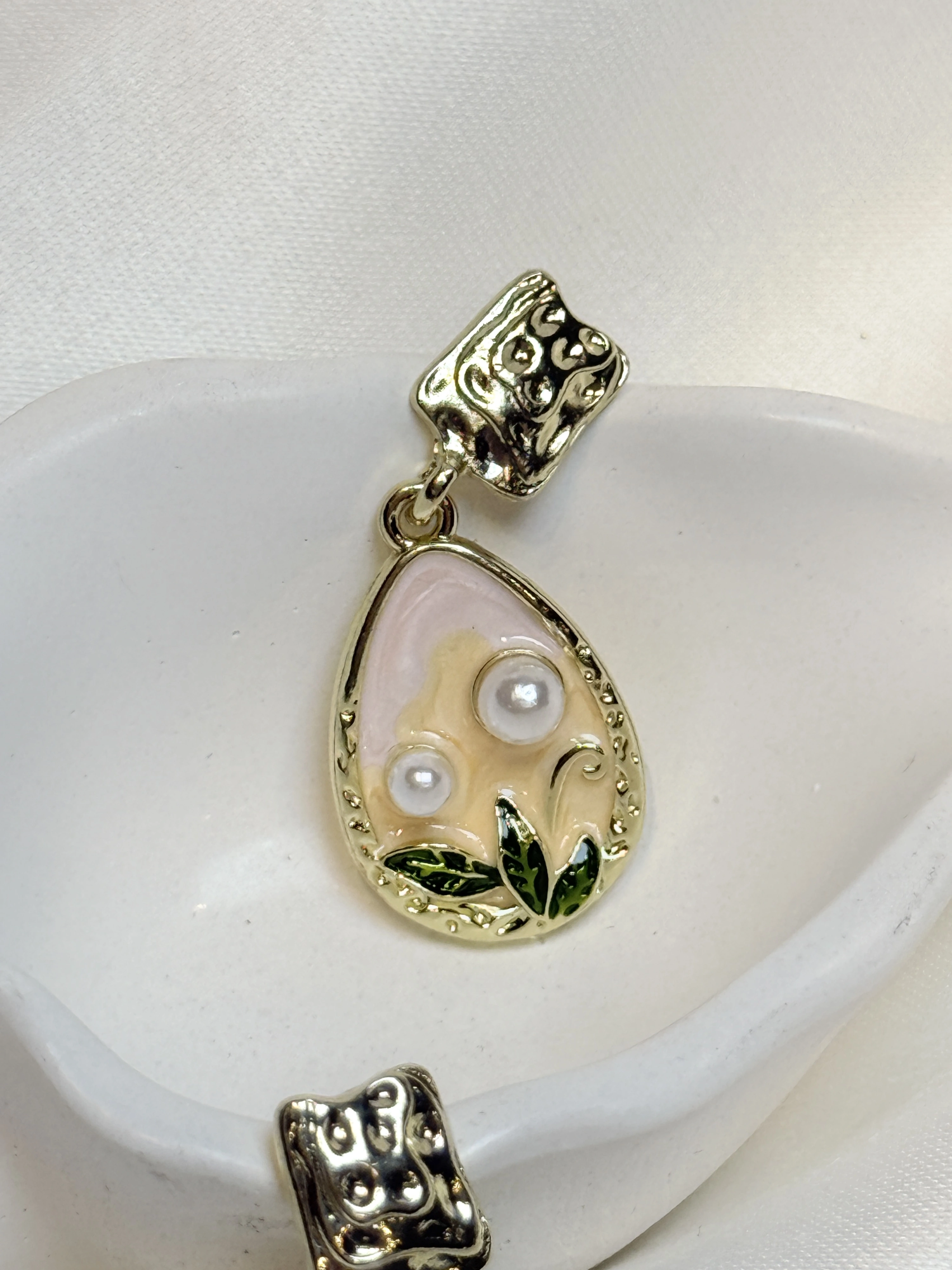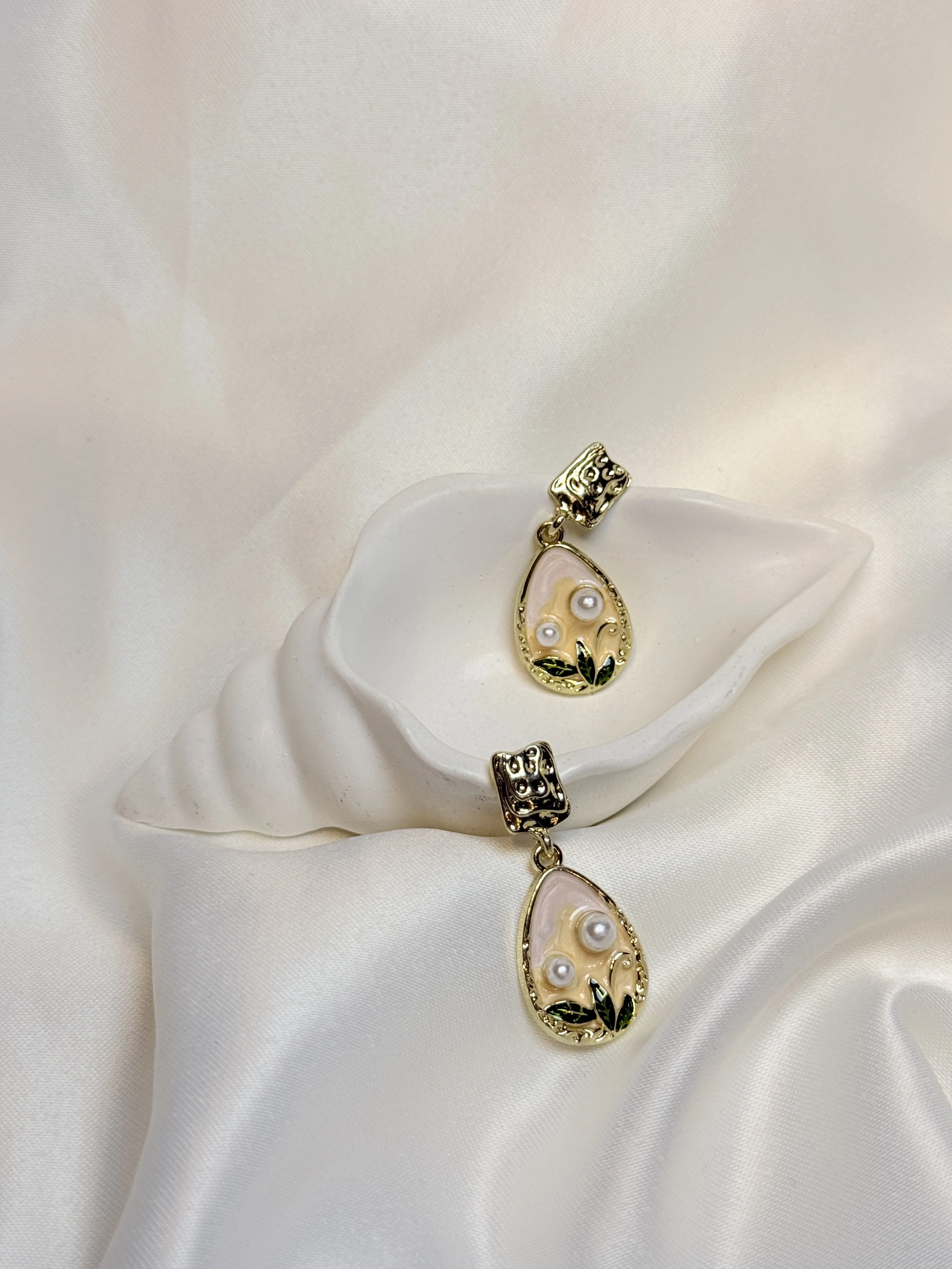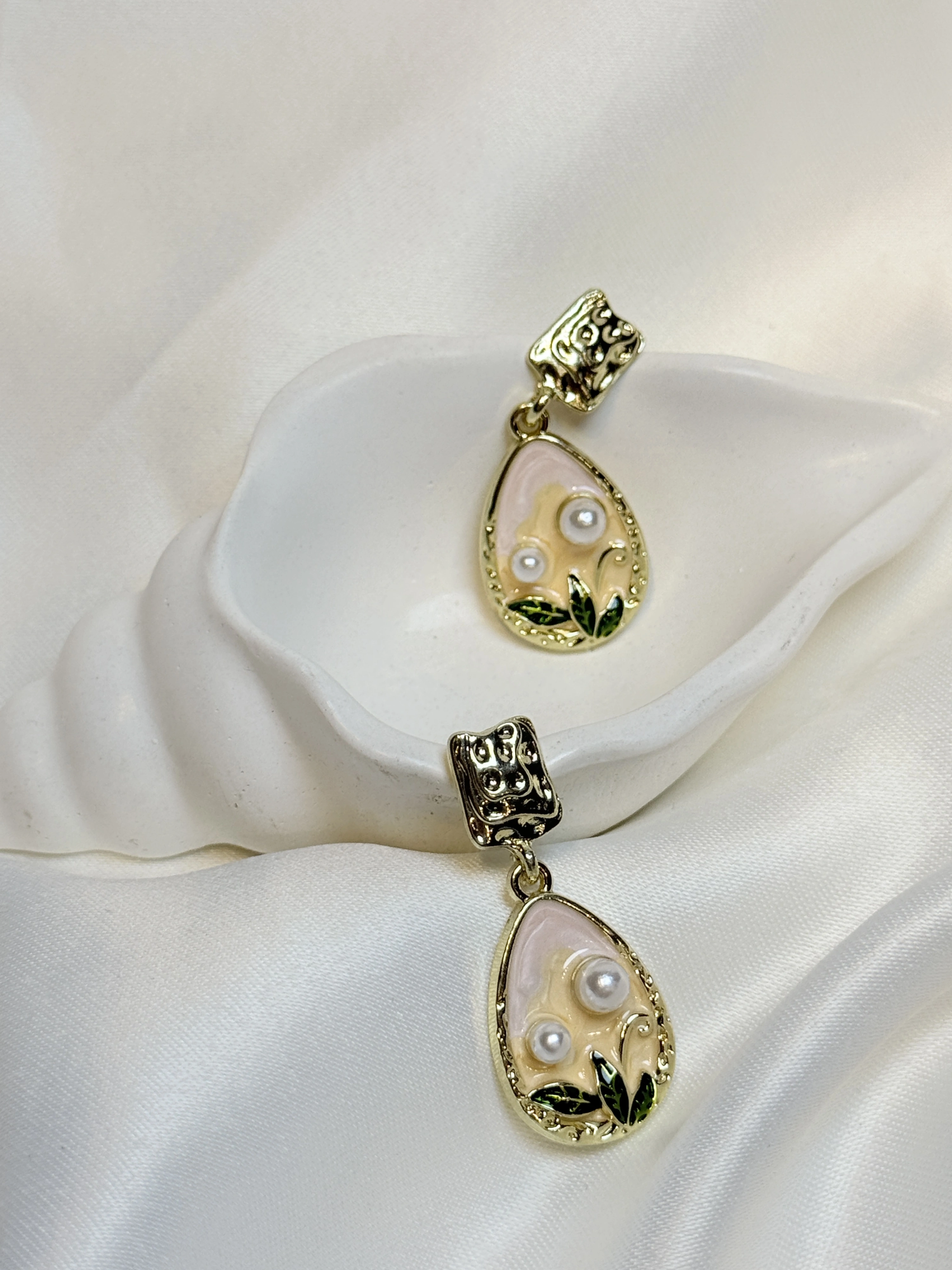 Gold Rengi İnci Detaylı Mineli Kadın küpe