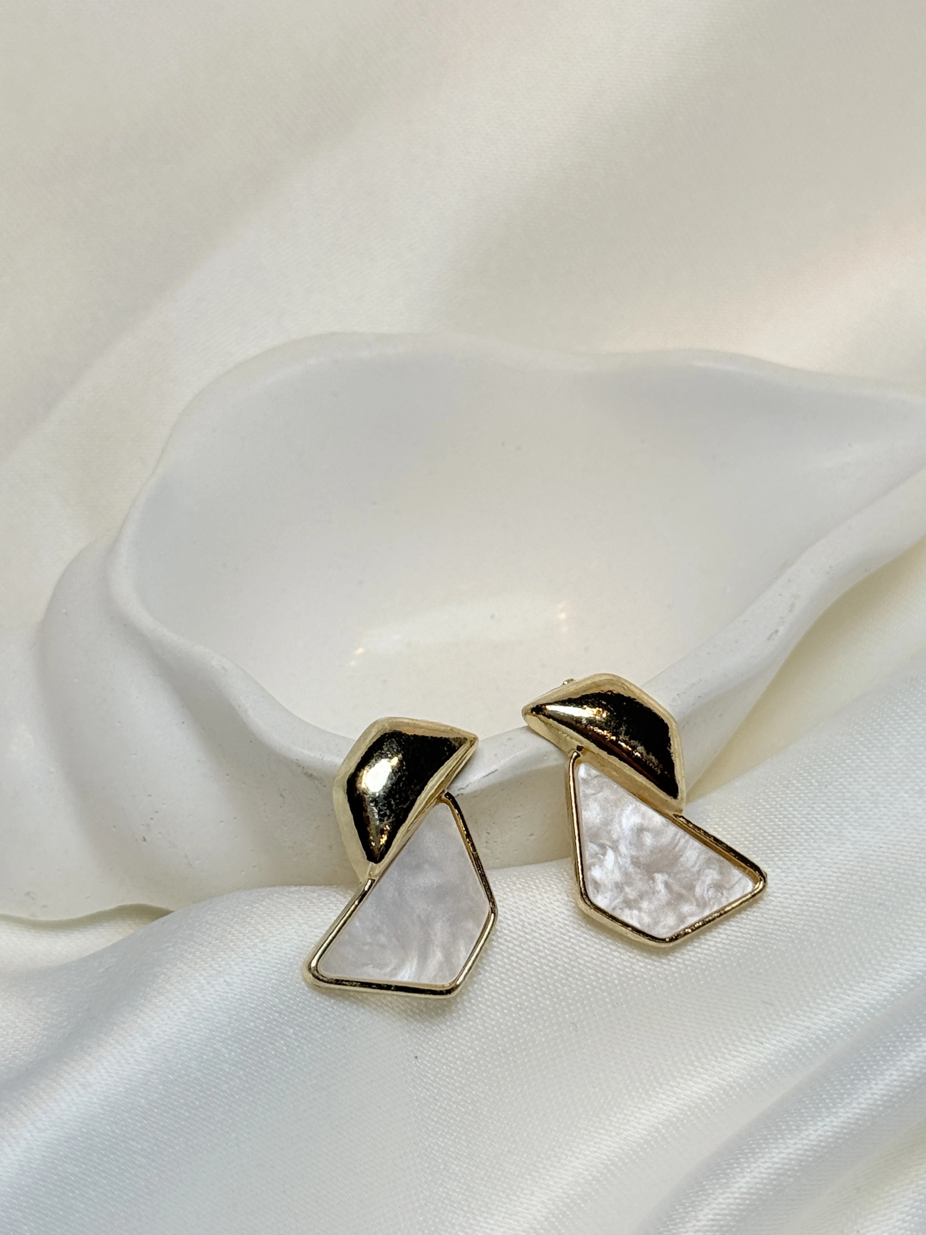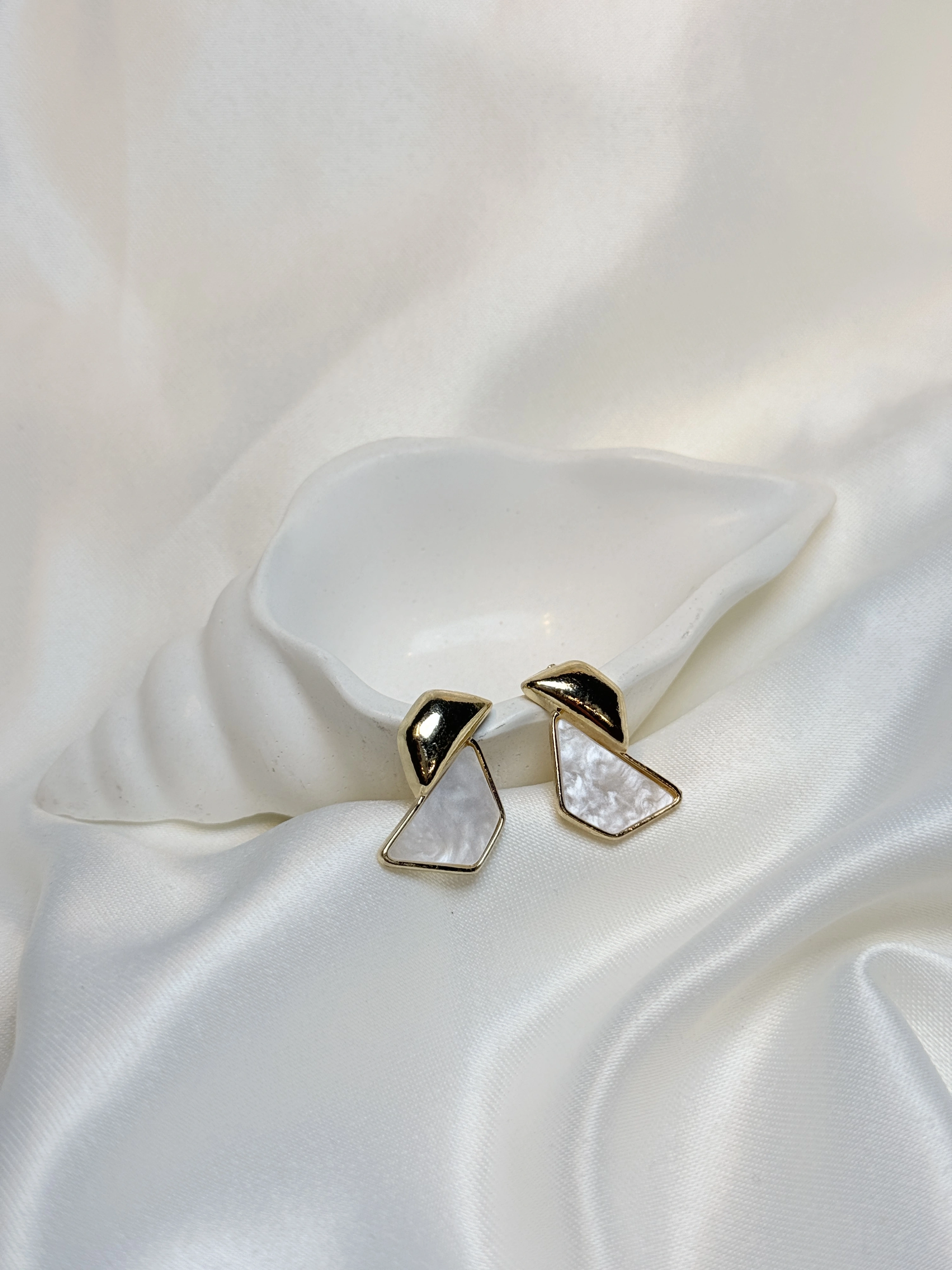 Gold Rengi Mermer Desenli Kadın Küpe