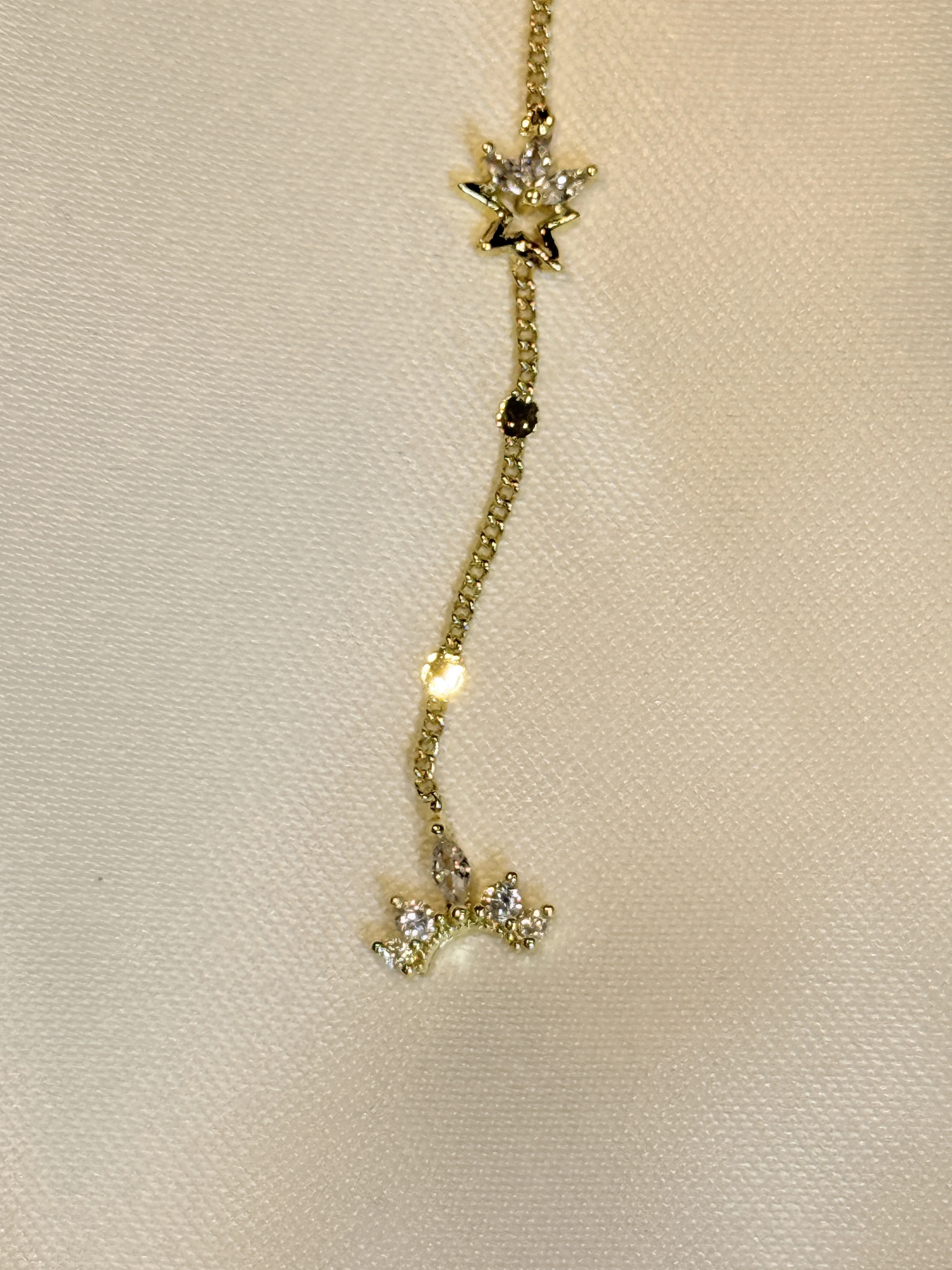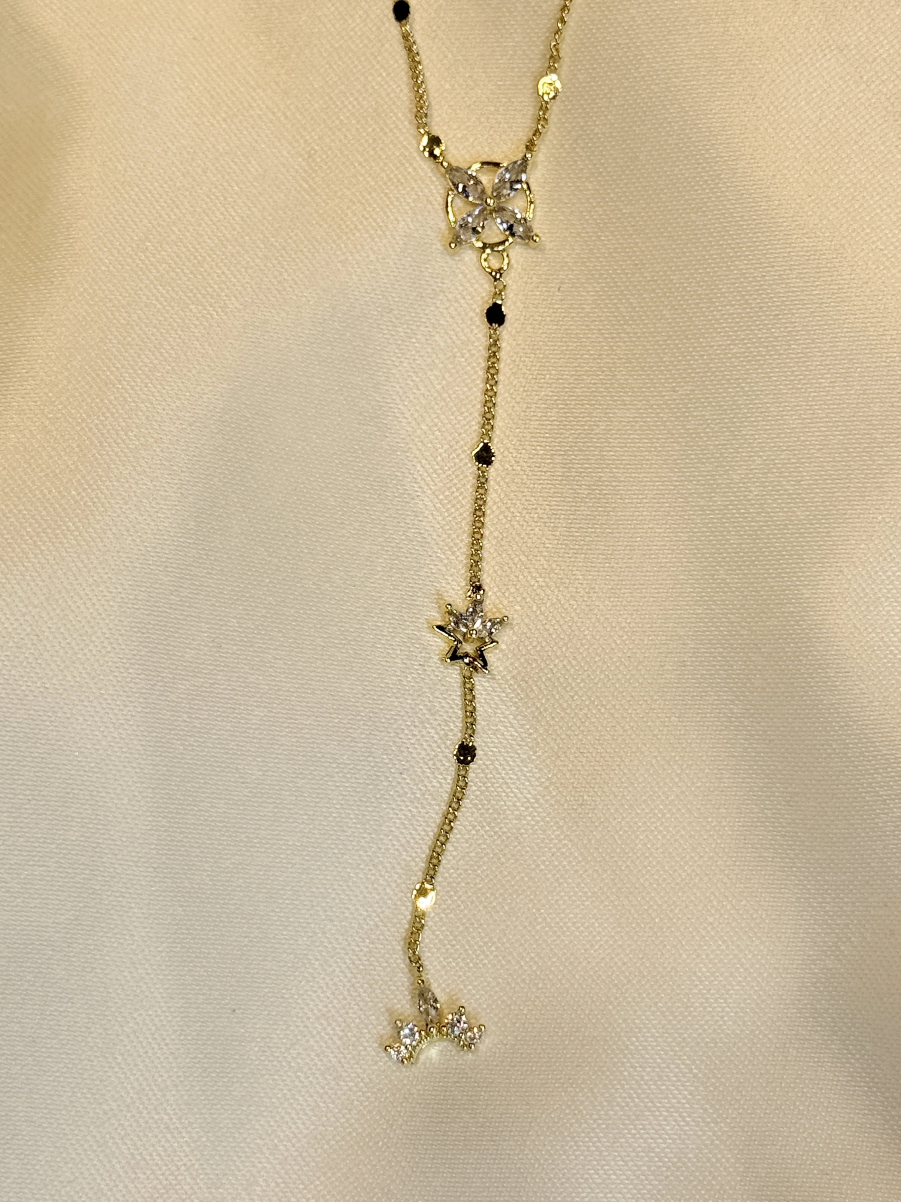 Gold Rengi Pul Desenli Taşlı Yıldız Detaylı Gurmet Zincir Kadın Y Kolye