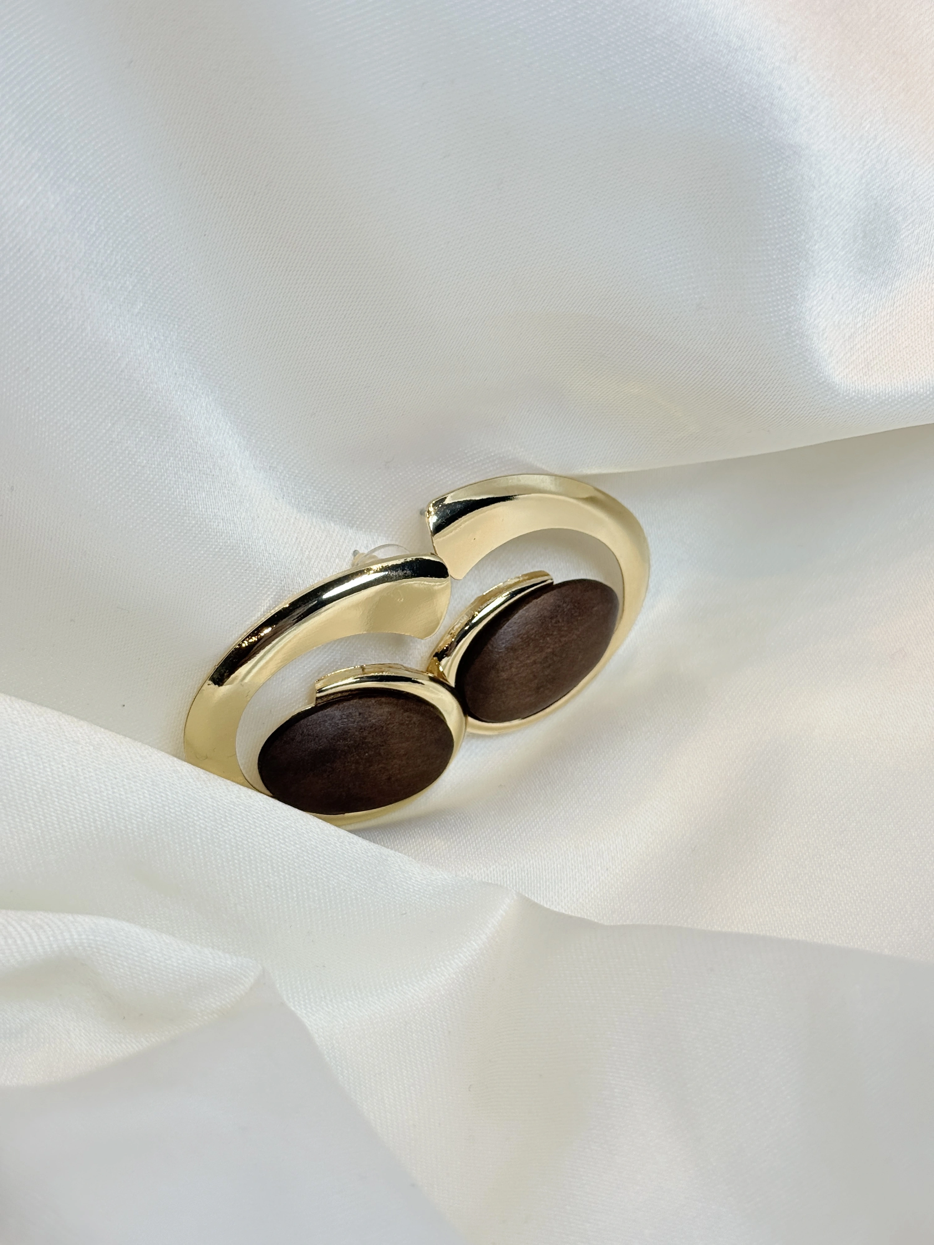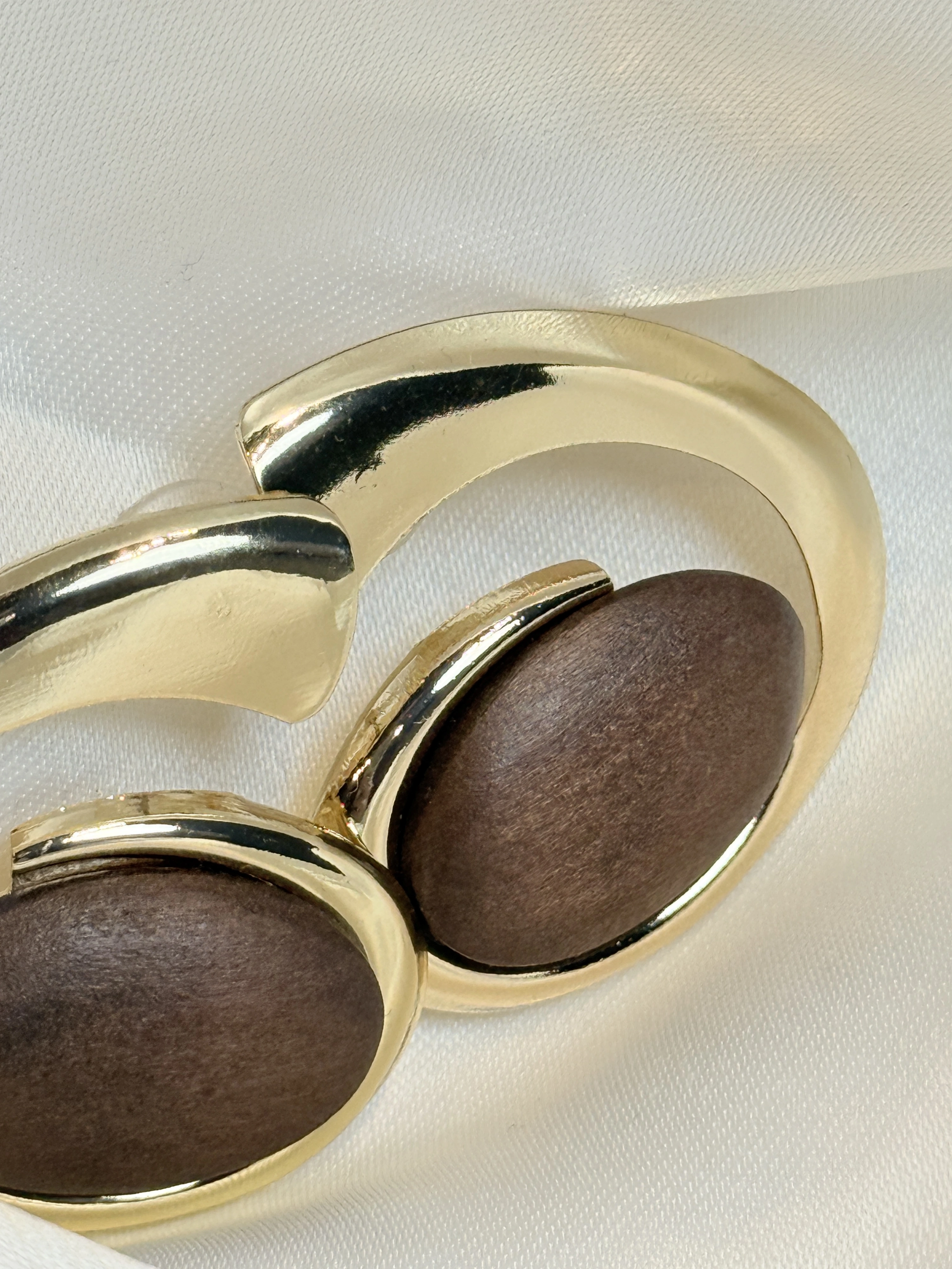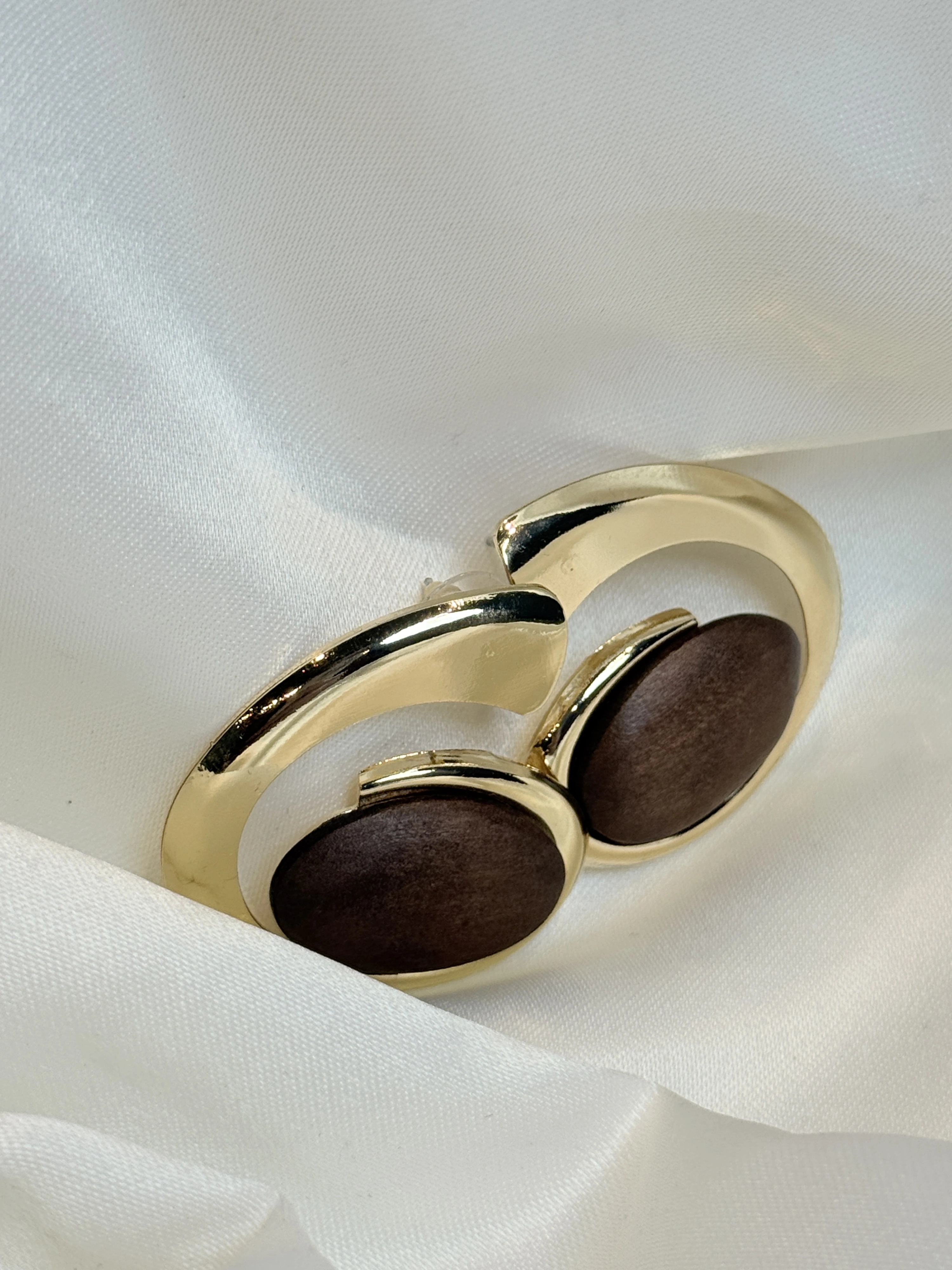 Gold Rengi Ahşap Desenli Top Kadın Küpe (Koyu Kahve)