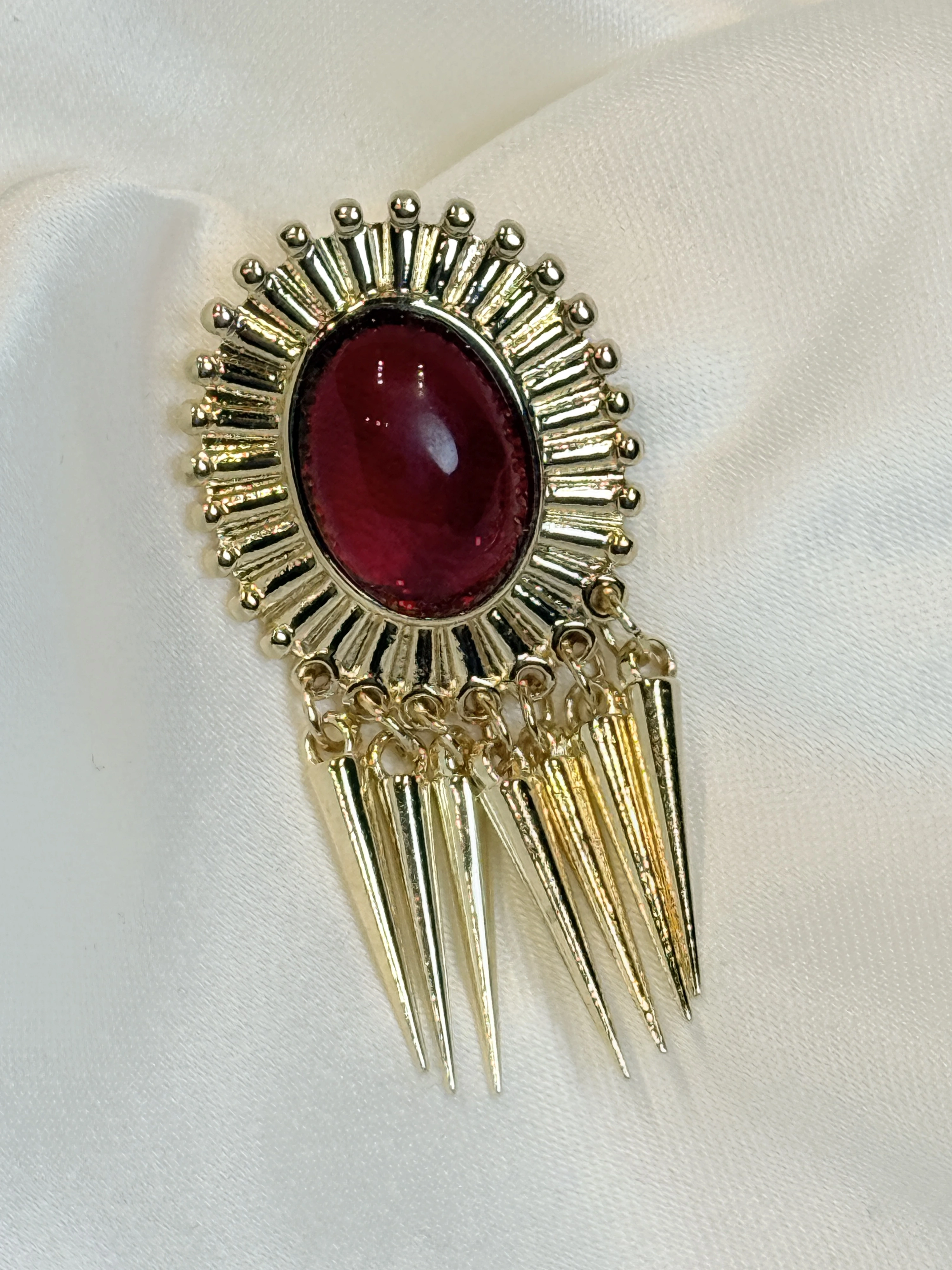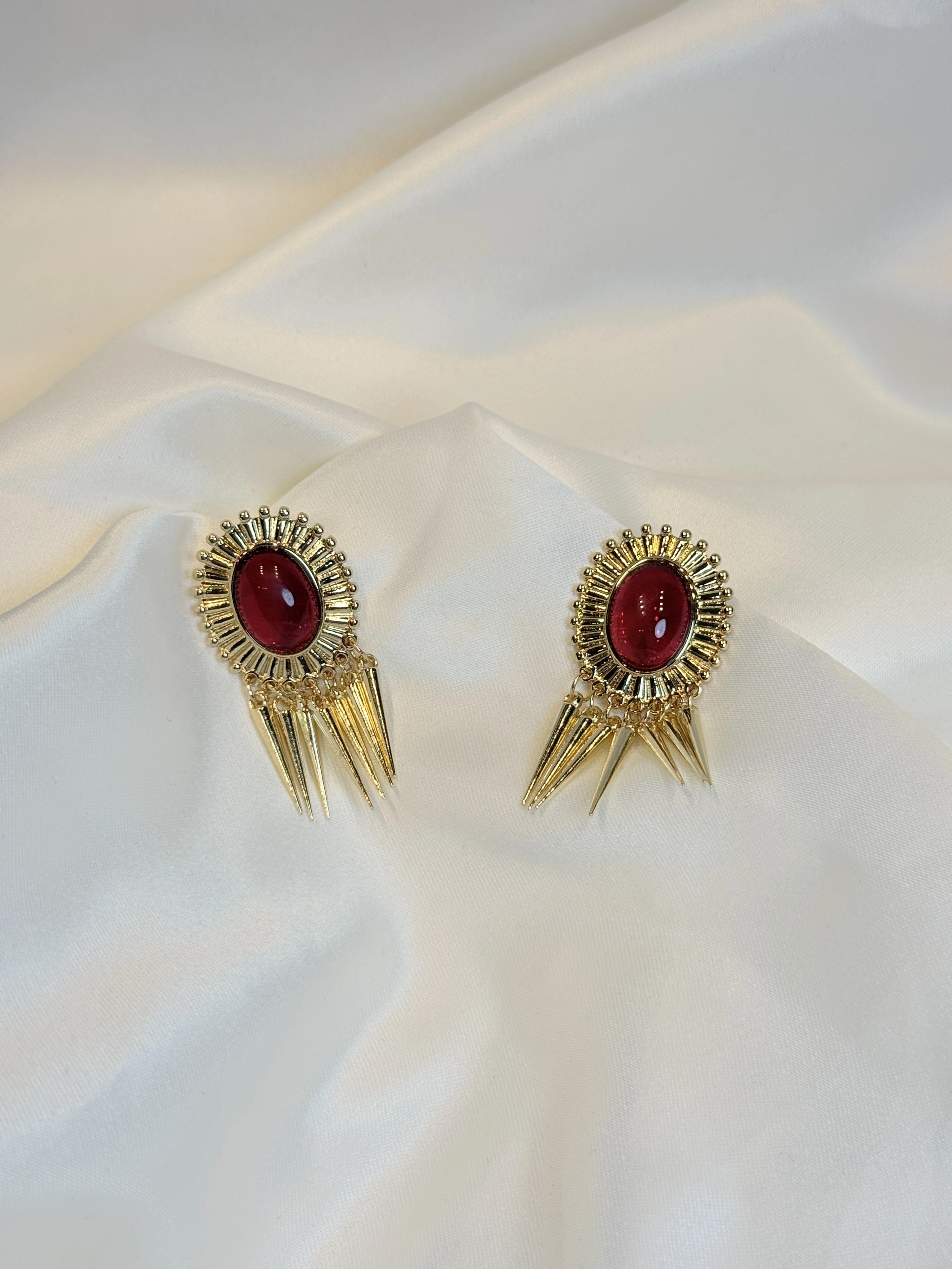 Gold Rengi Bordo Taş Tasarım Küpe