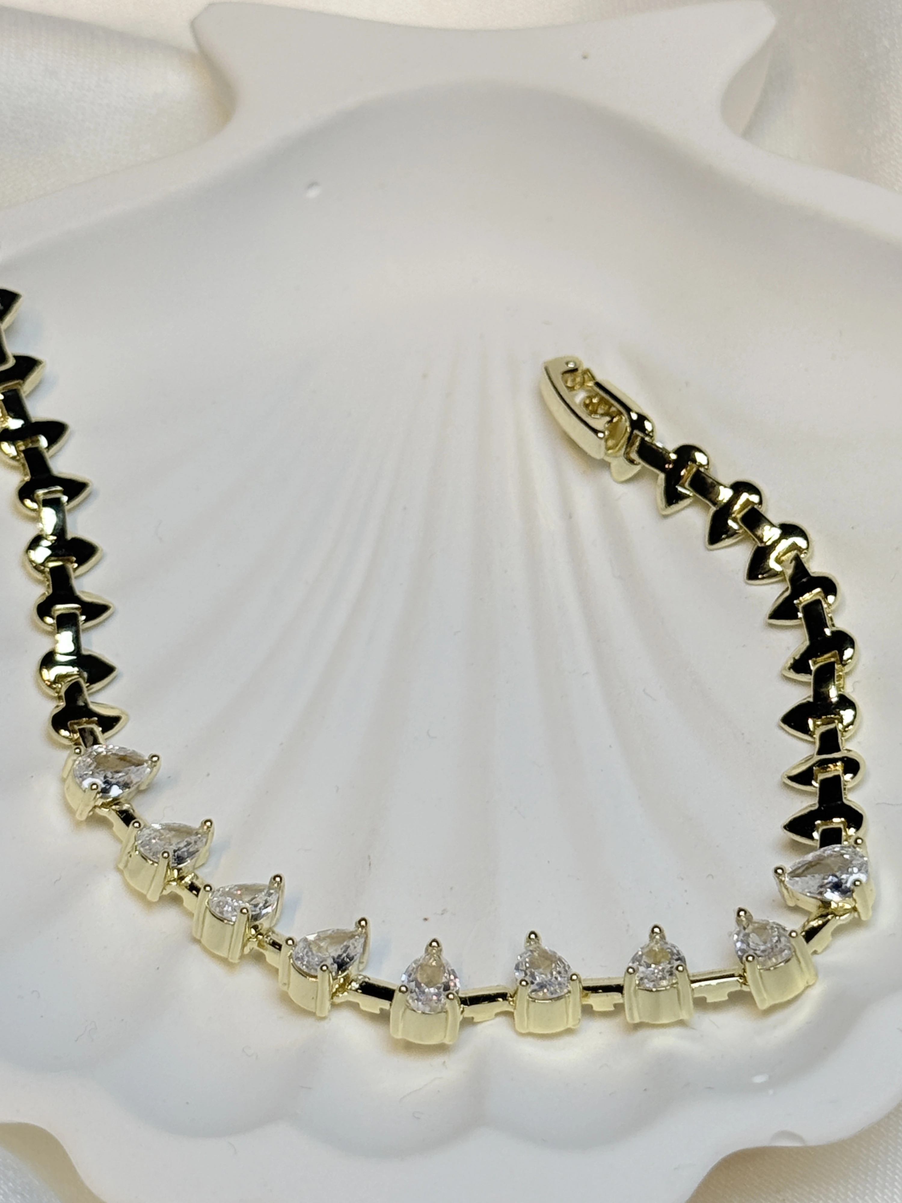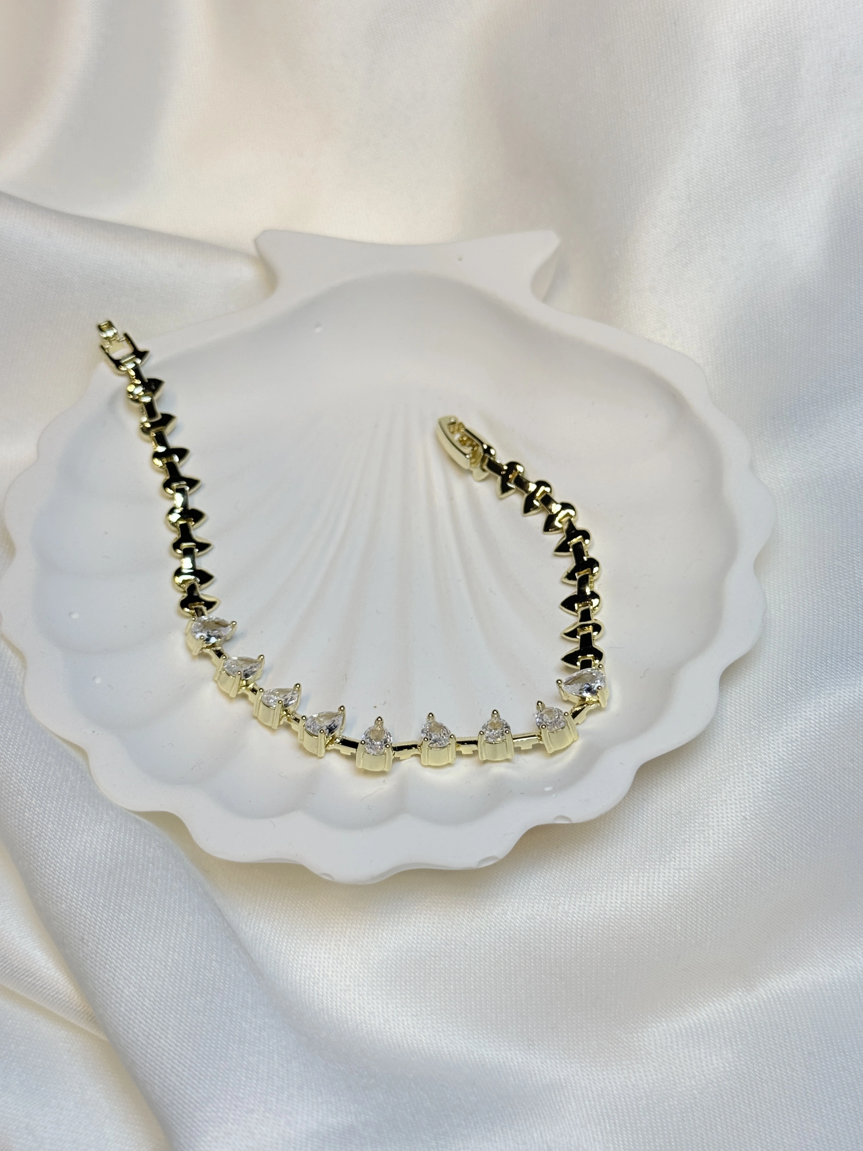 Gold Rengi Mikro Zirkon Taşlı Damla Geçişli Kadın Bileklik