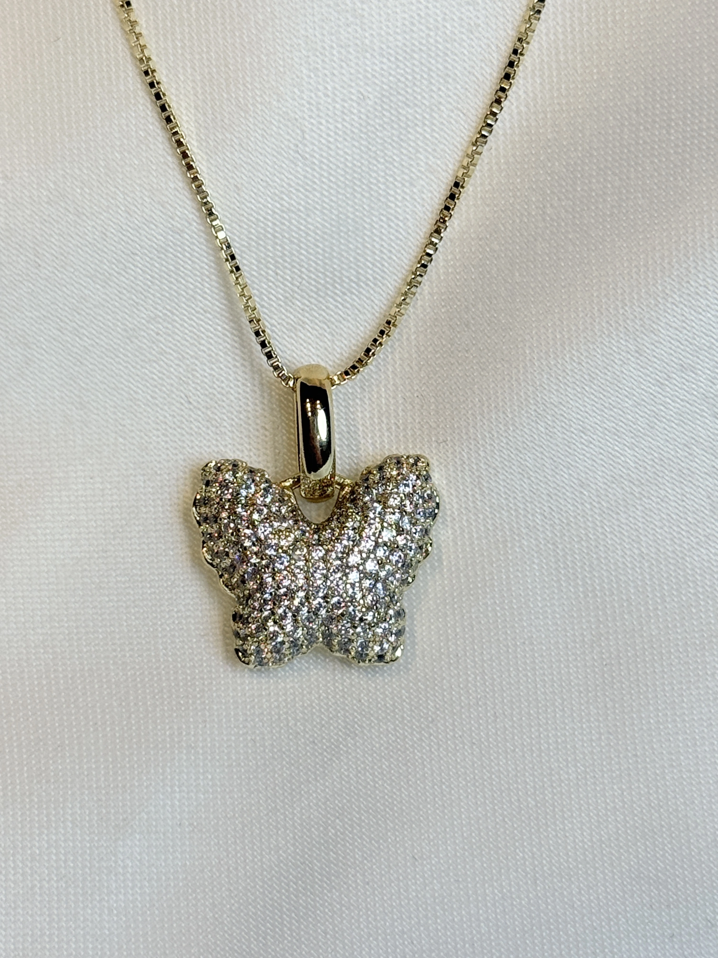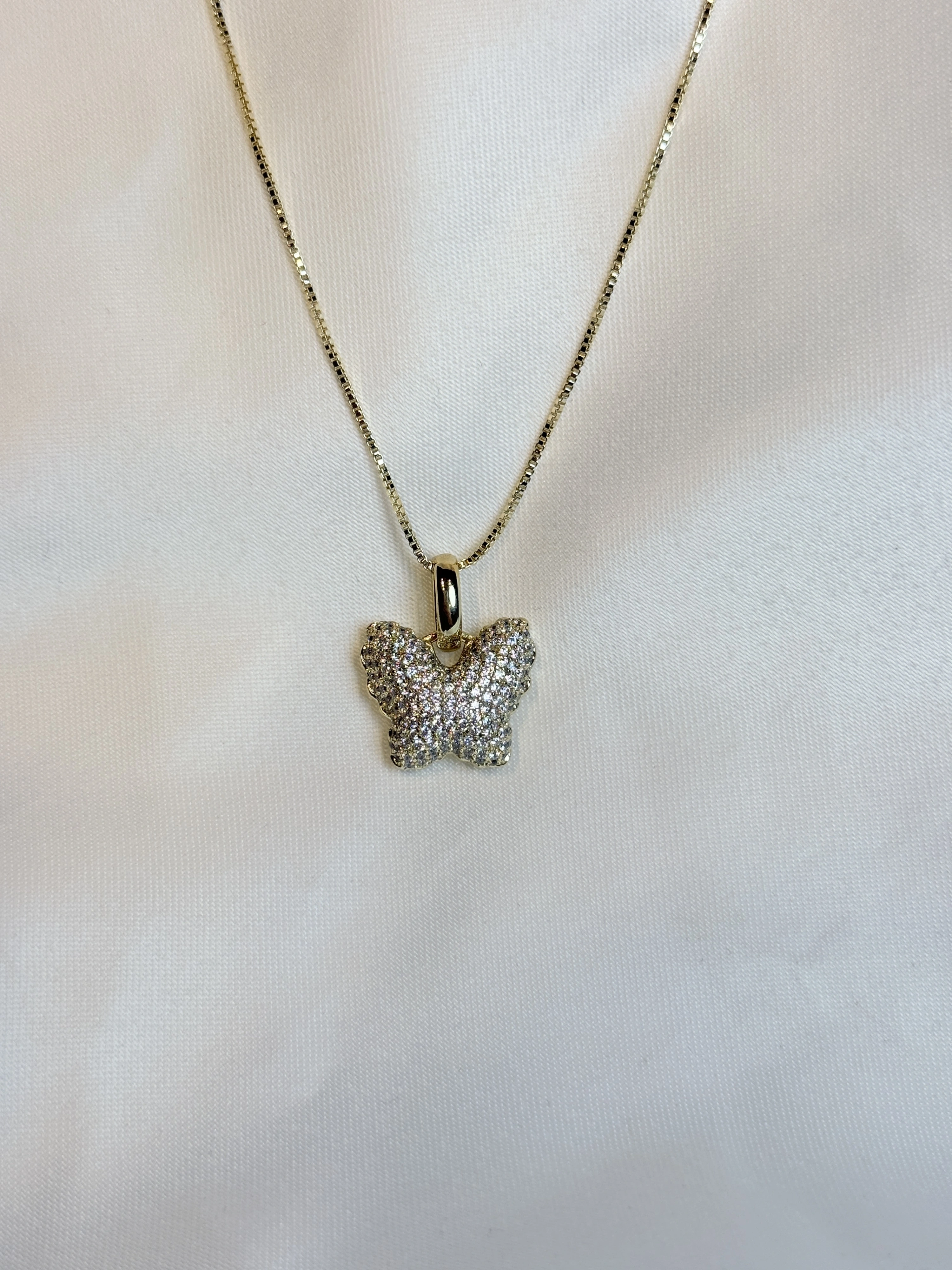Gold Rengi Pırlanta Taşlı Kelebek Figürlü XP Kadın Kolye