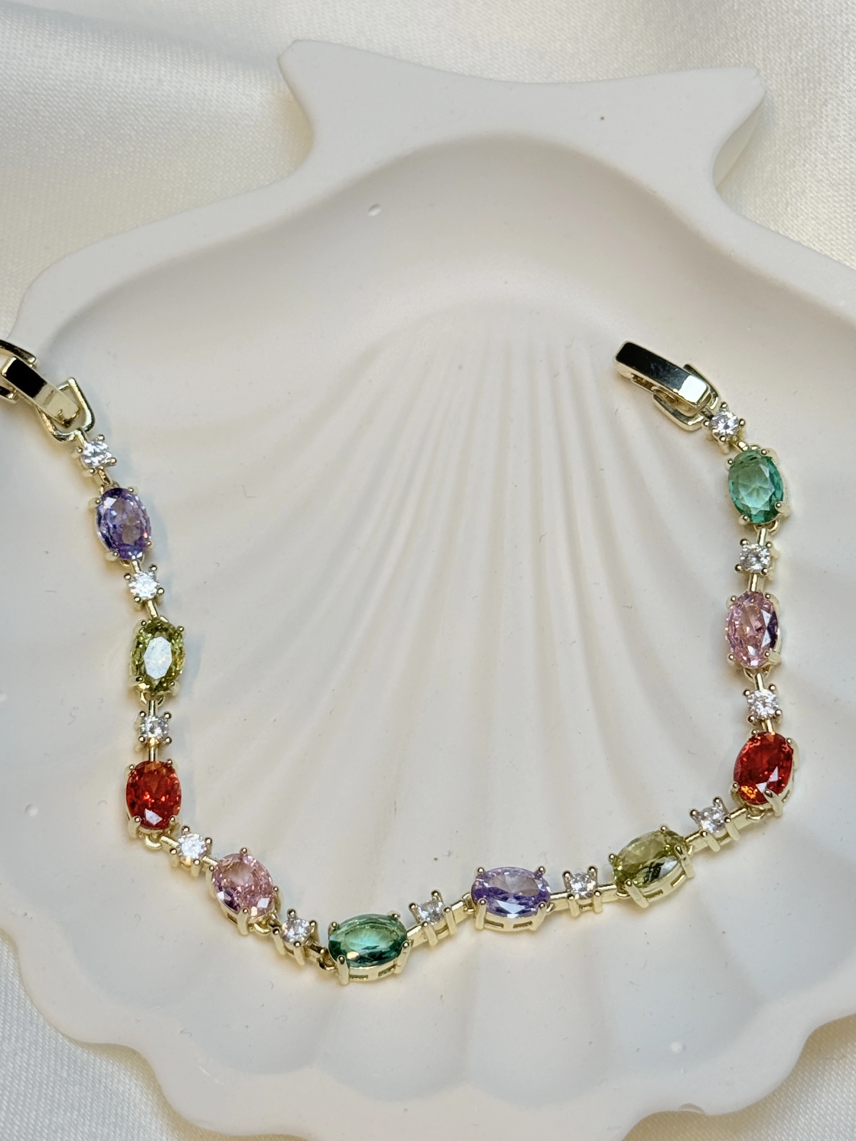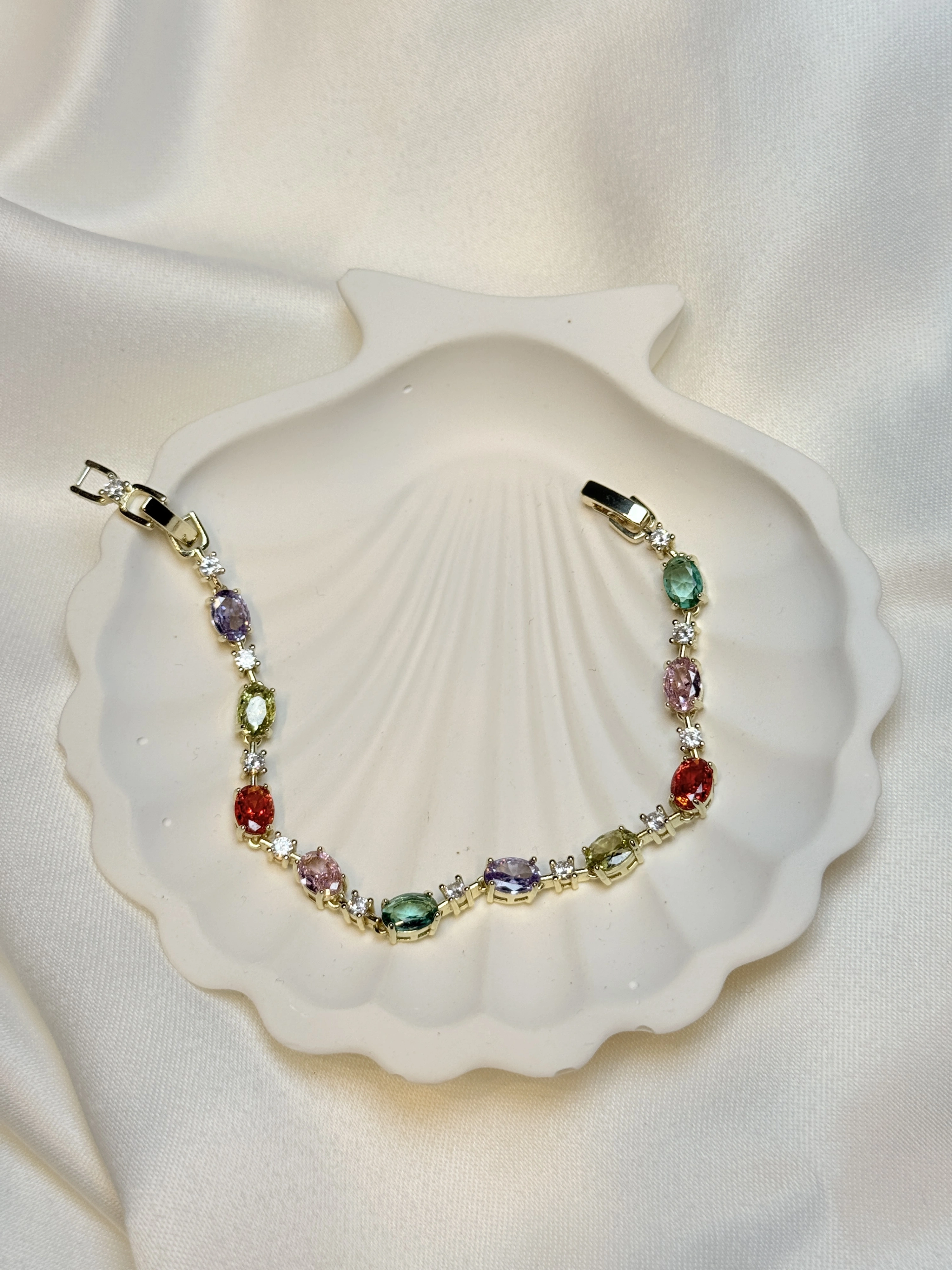 Gold Rengi Renkli Oval Zirkon Taşlı Kadın Bileklik