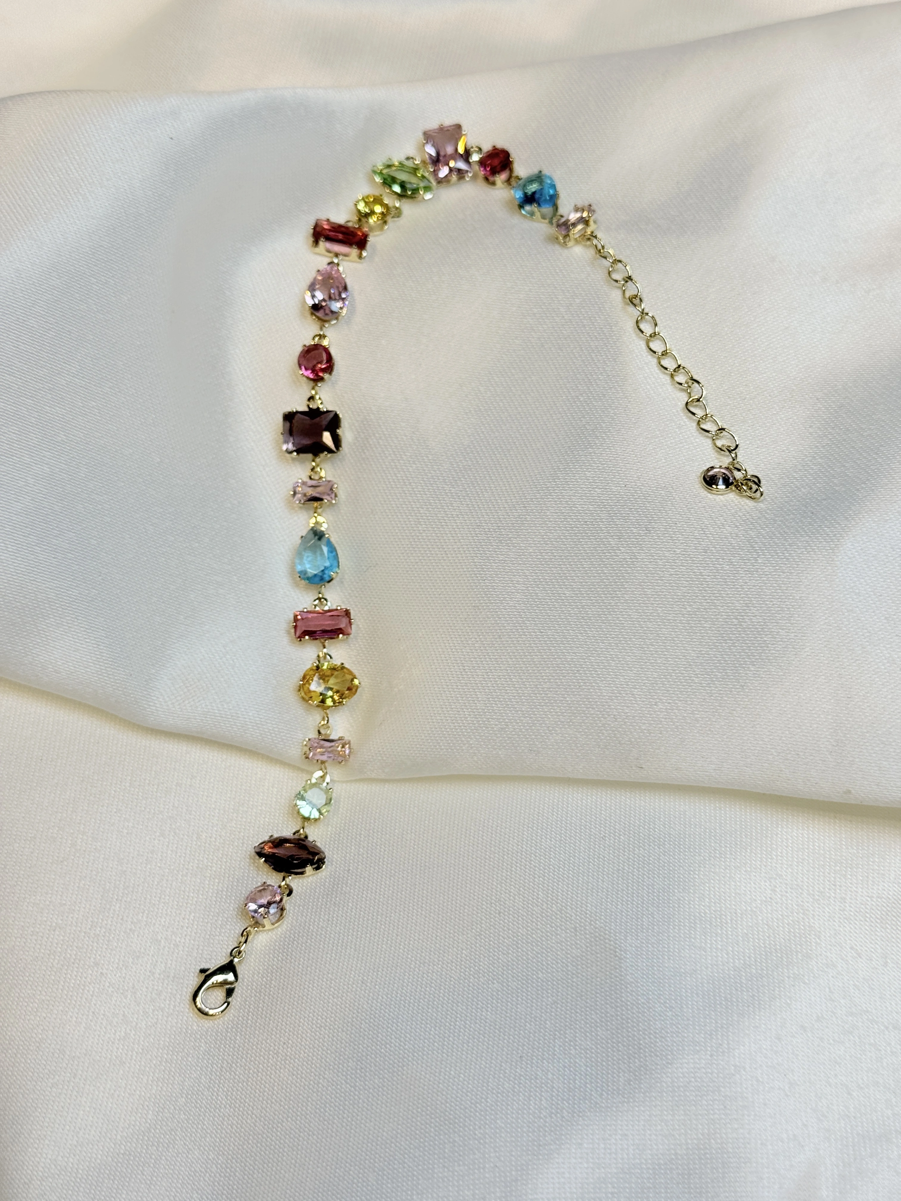 Gold Rengi Renkli Taş Detaylı Kadın Bileklik