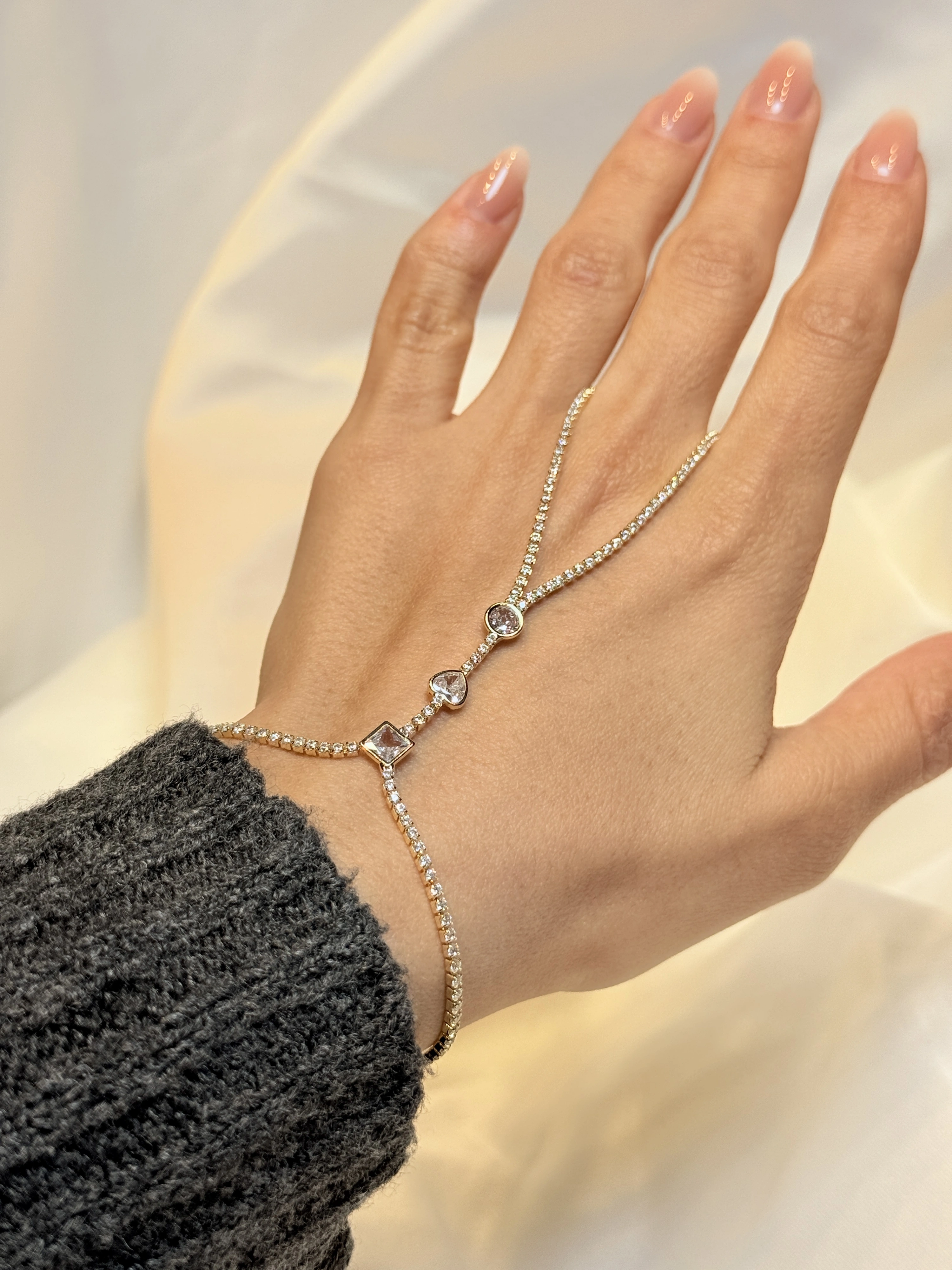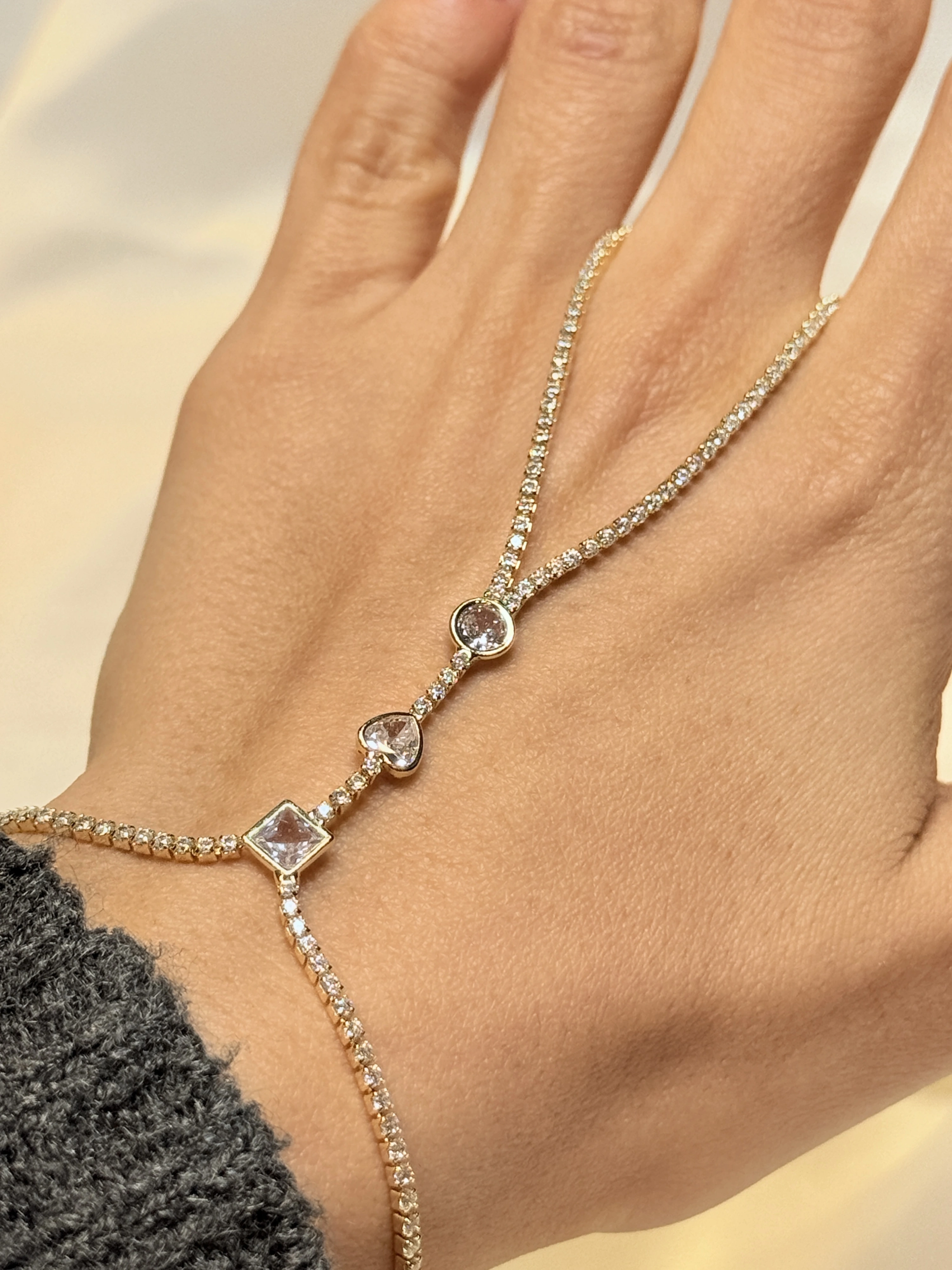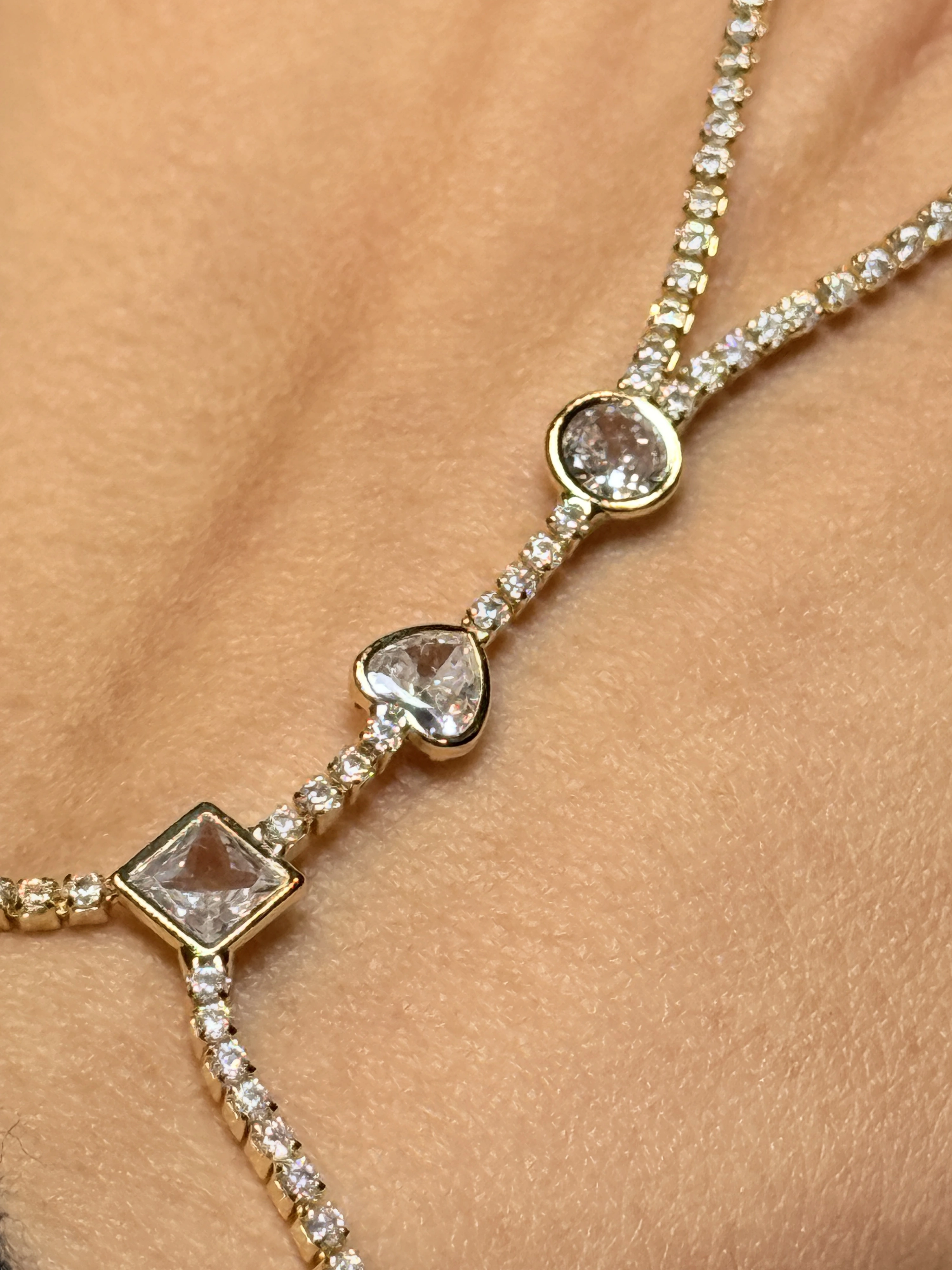 Gold Rengi Sıralı Geometrik Taşlı Kalp Figürlü Kadın Şahmeran