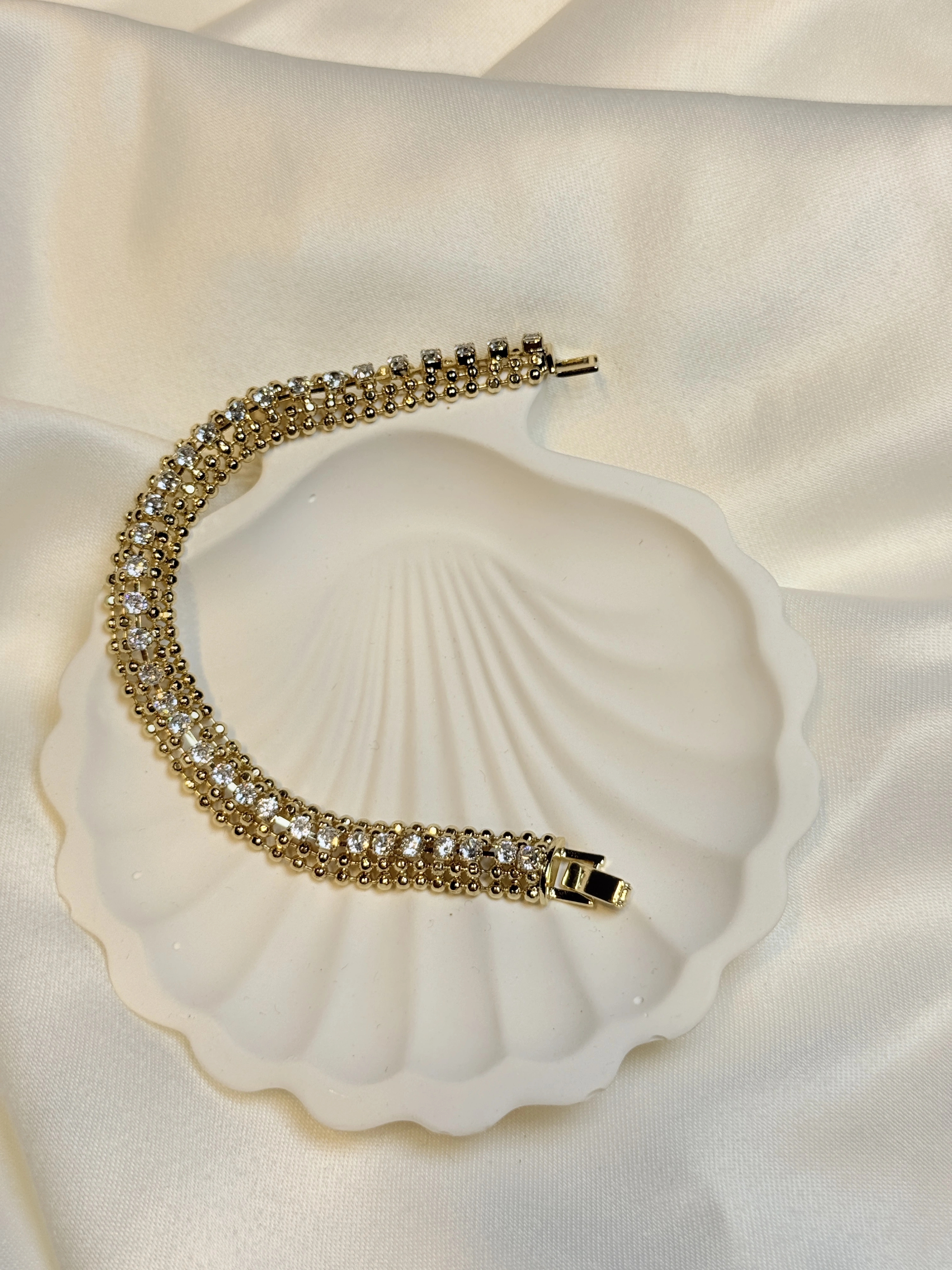 Gold Rengi Sıralı Taşlı Model XP Kadın Bileklik