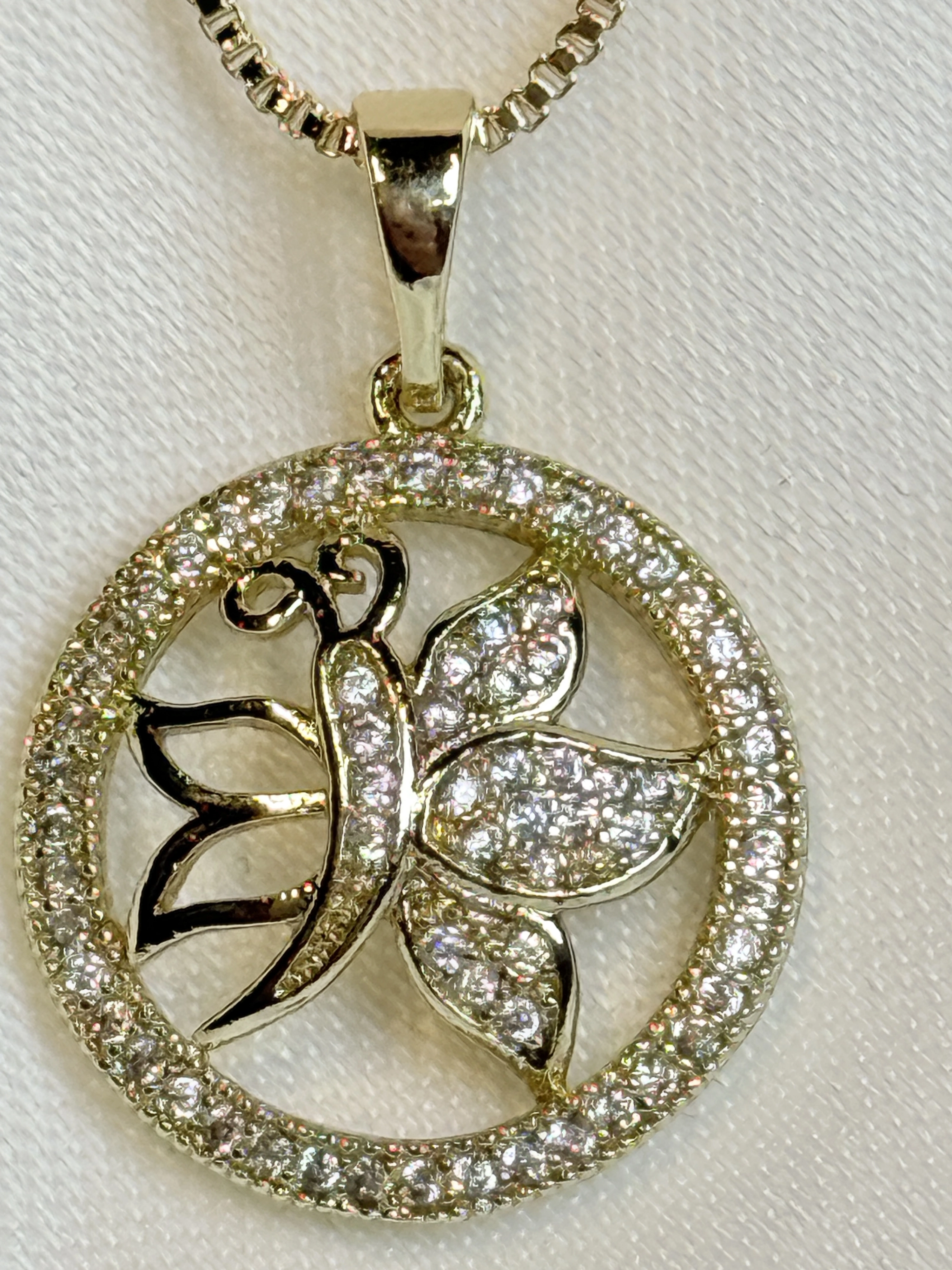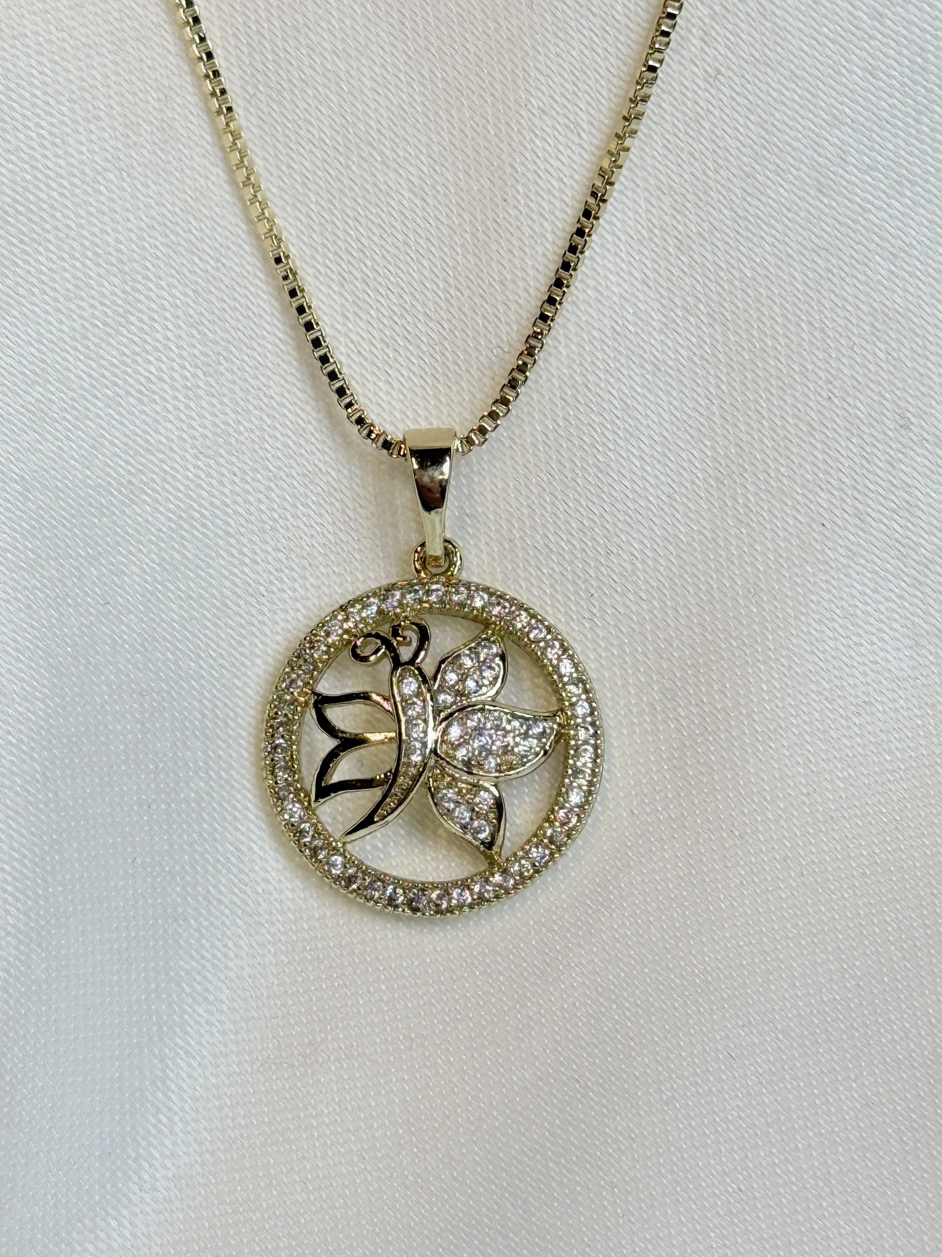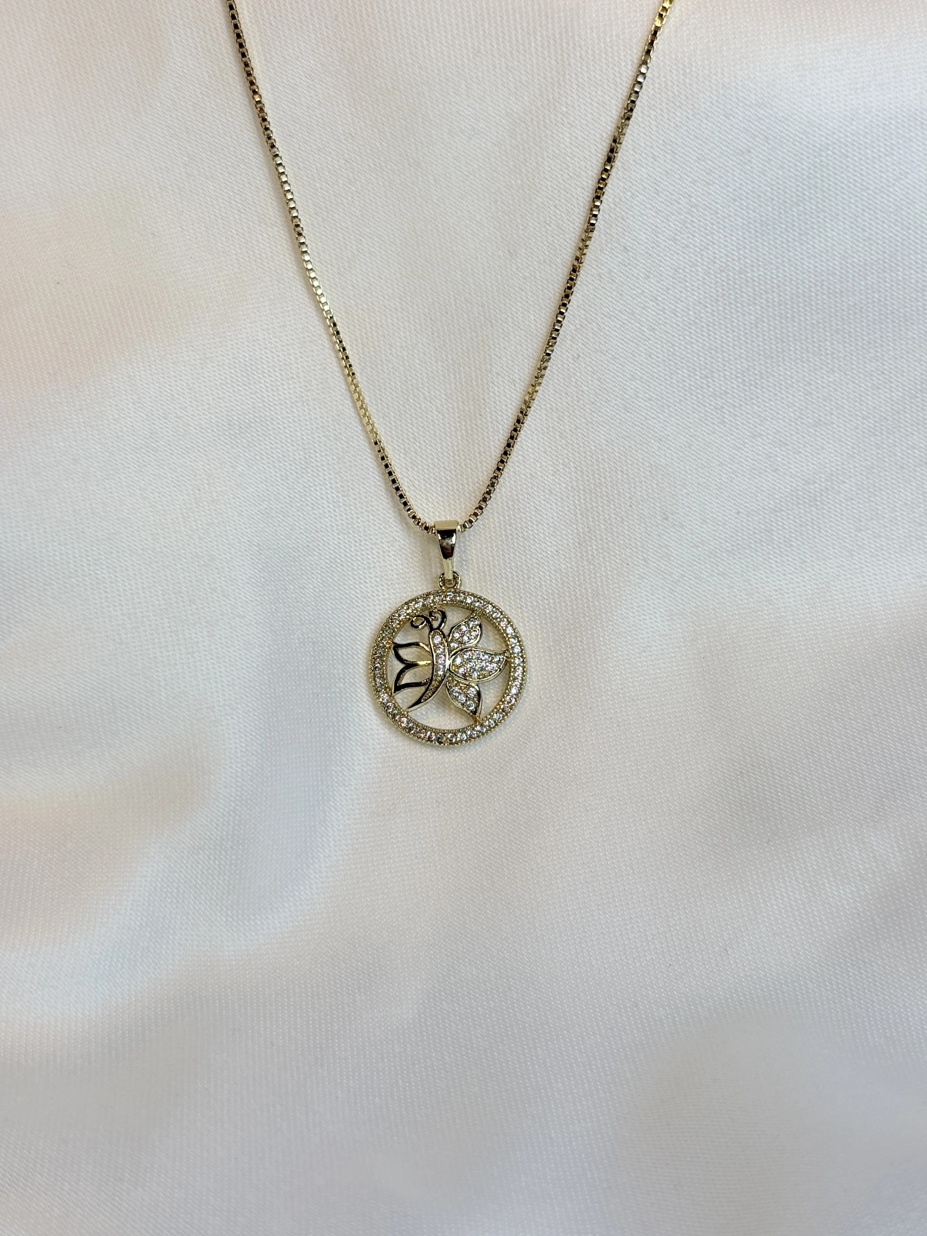 Gold Rengi Taşlı Çember İçinde Kelebek Figürlü XP Kadın Kolye