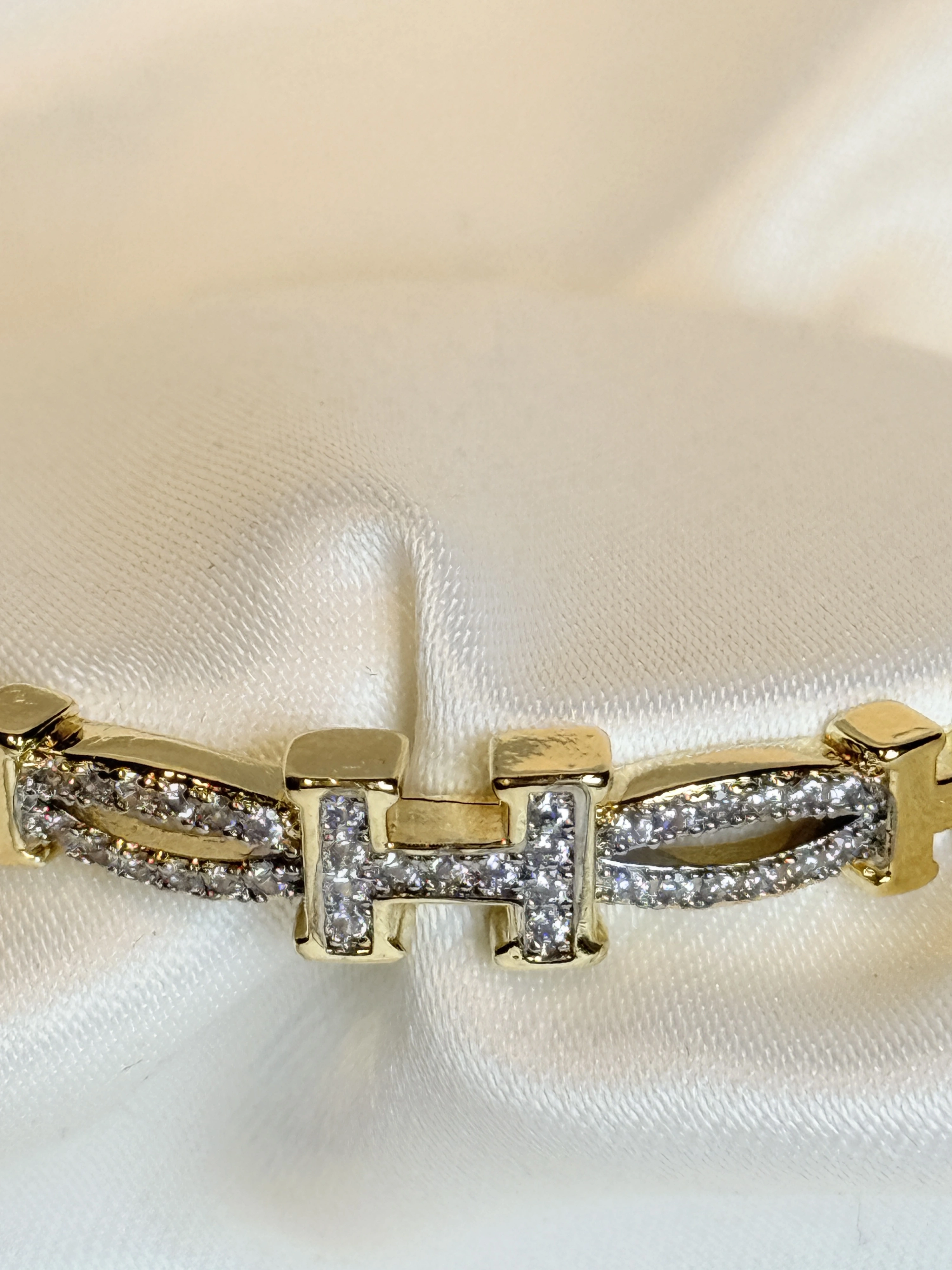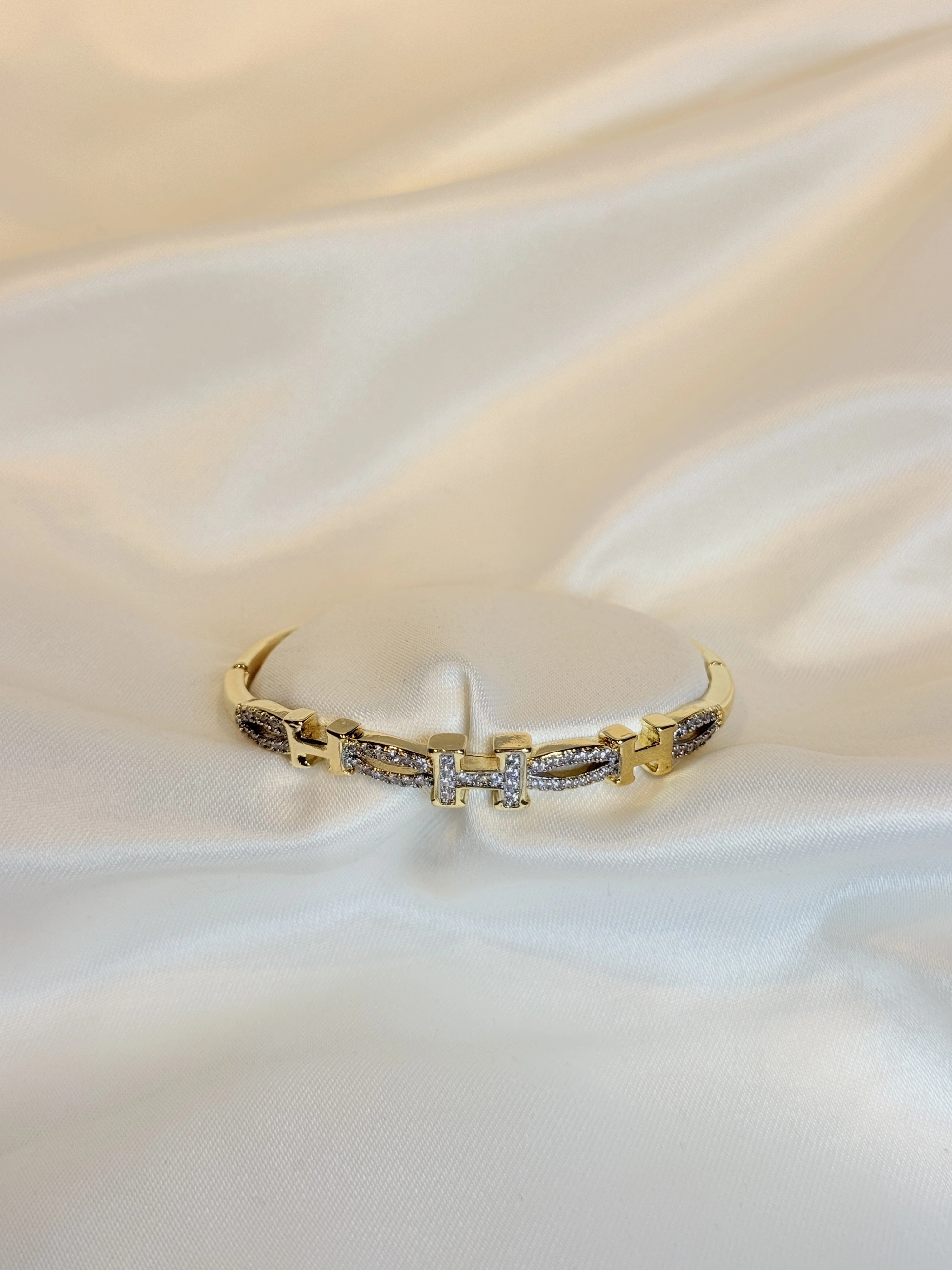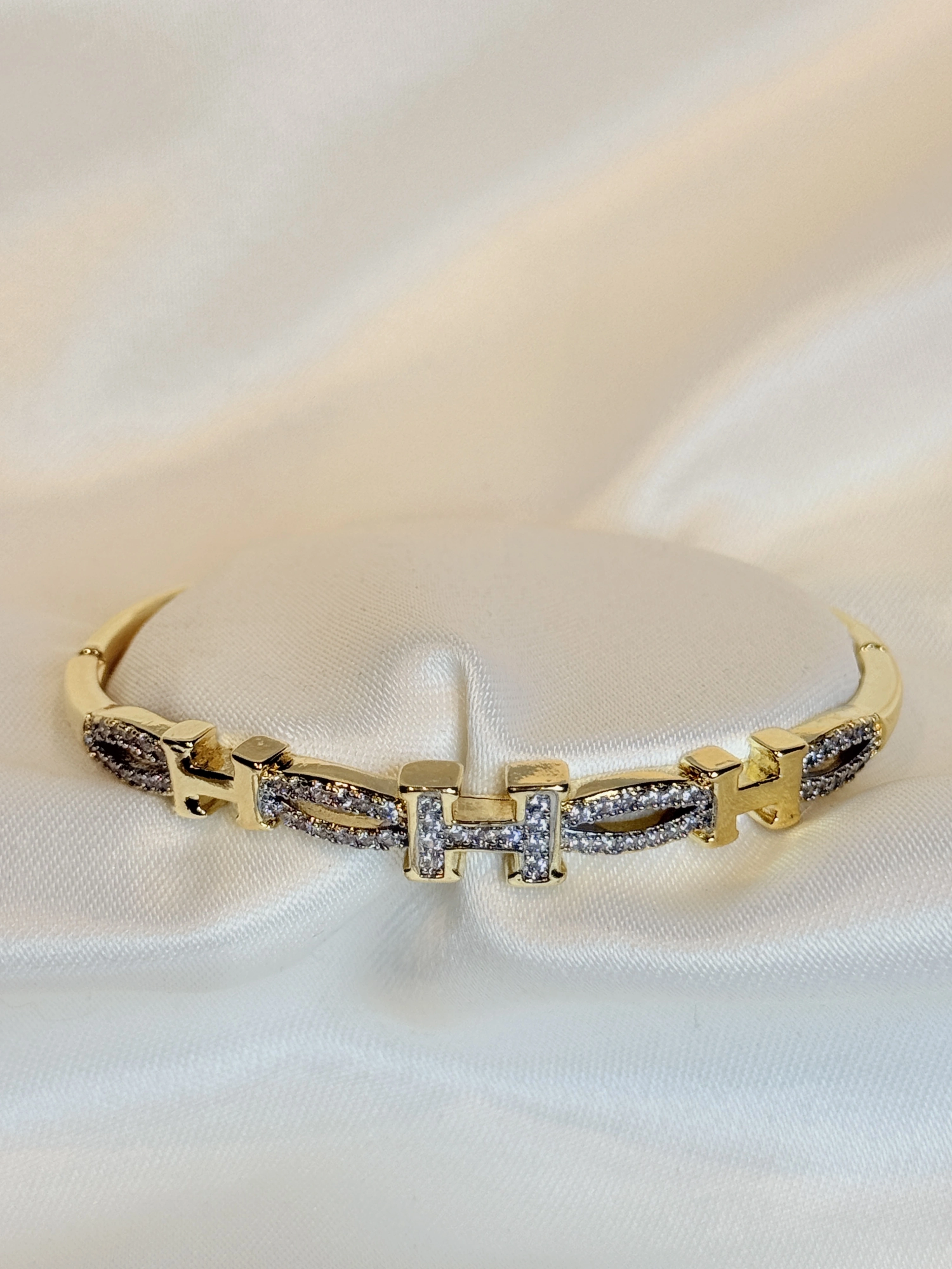 Gold Rengi Taşlı Harf Figürlü Kadın Kelepçe Bileklik