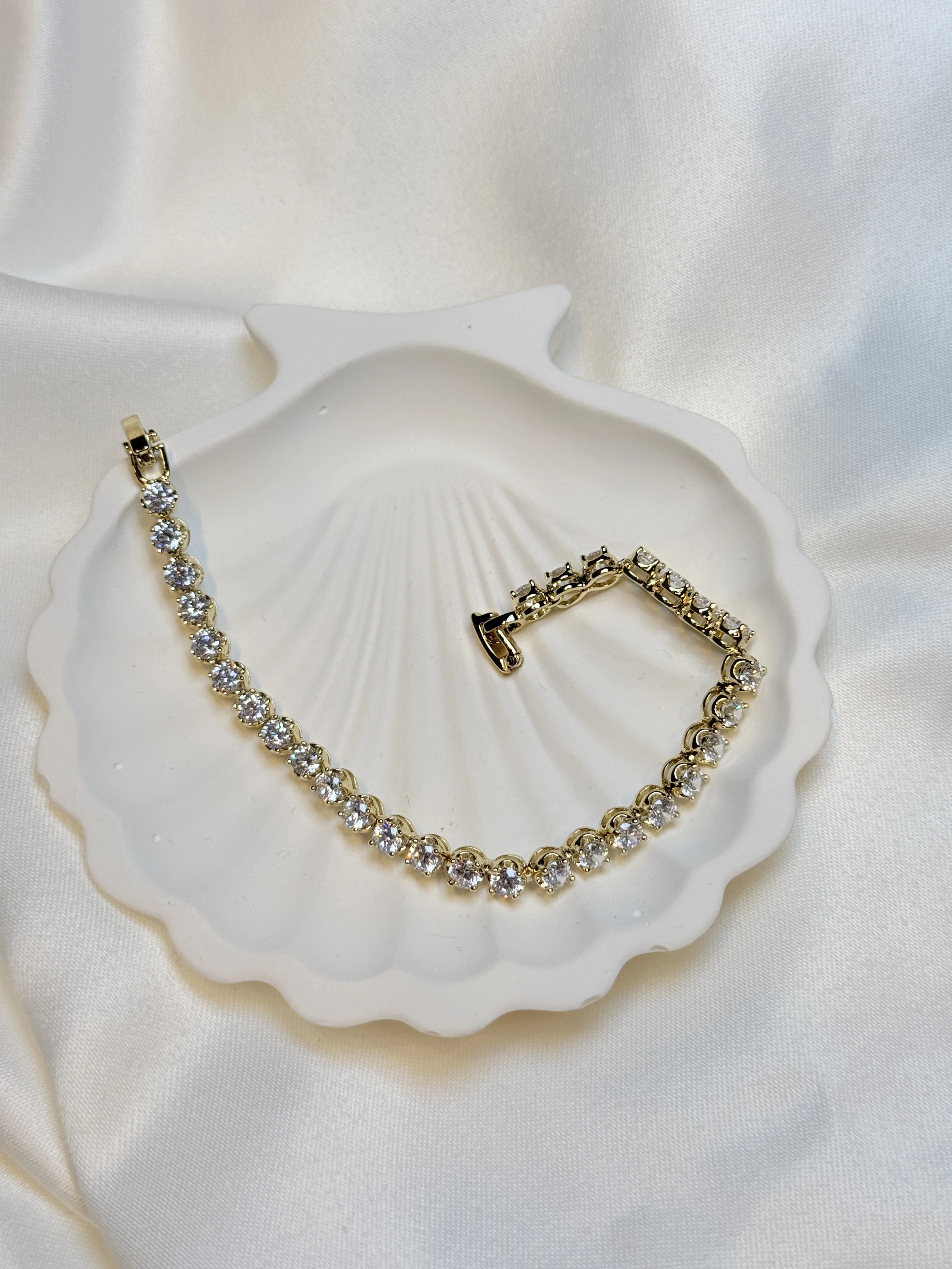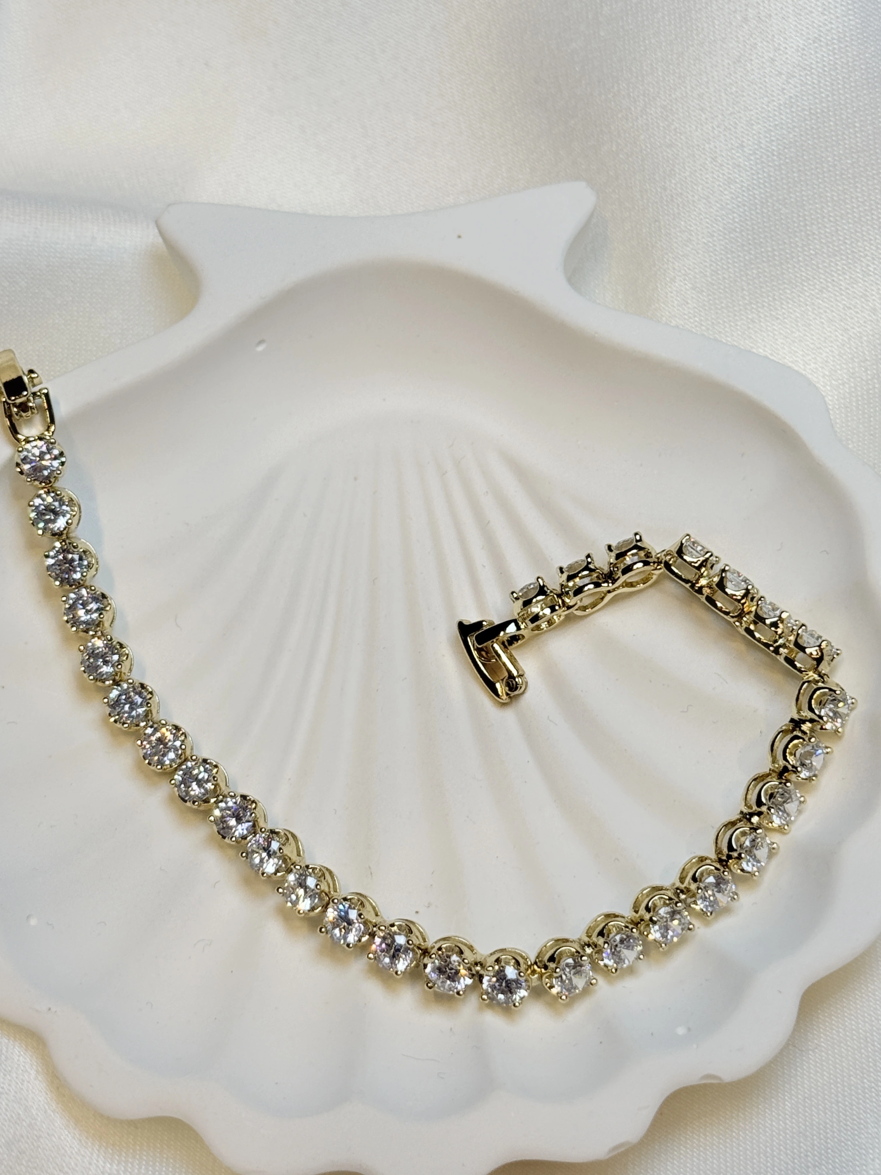 Gold Rengi Tek Sıra Zirkon Taşlı Su Yolu Kadın Bileklik