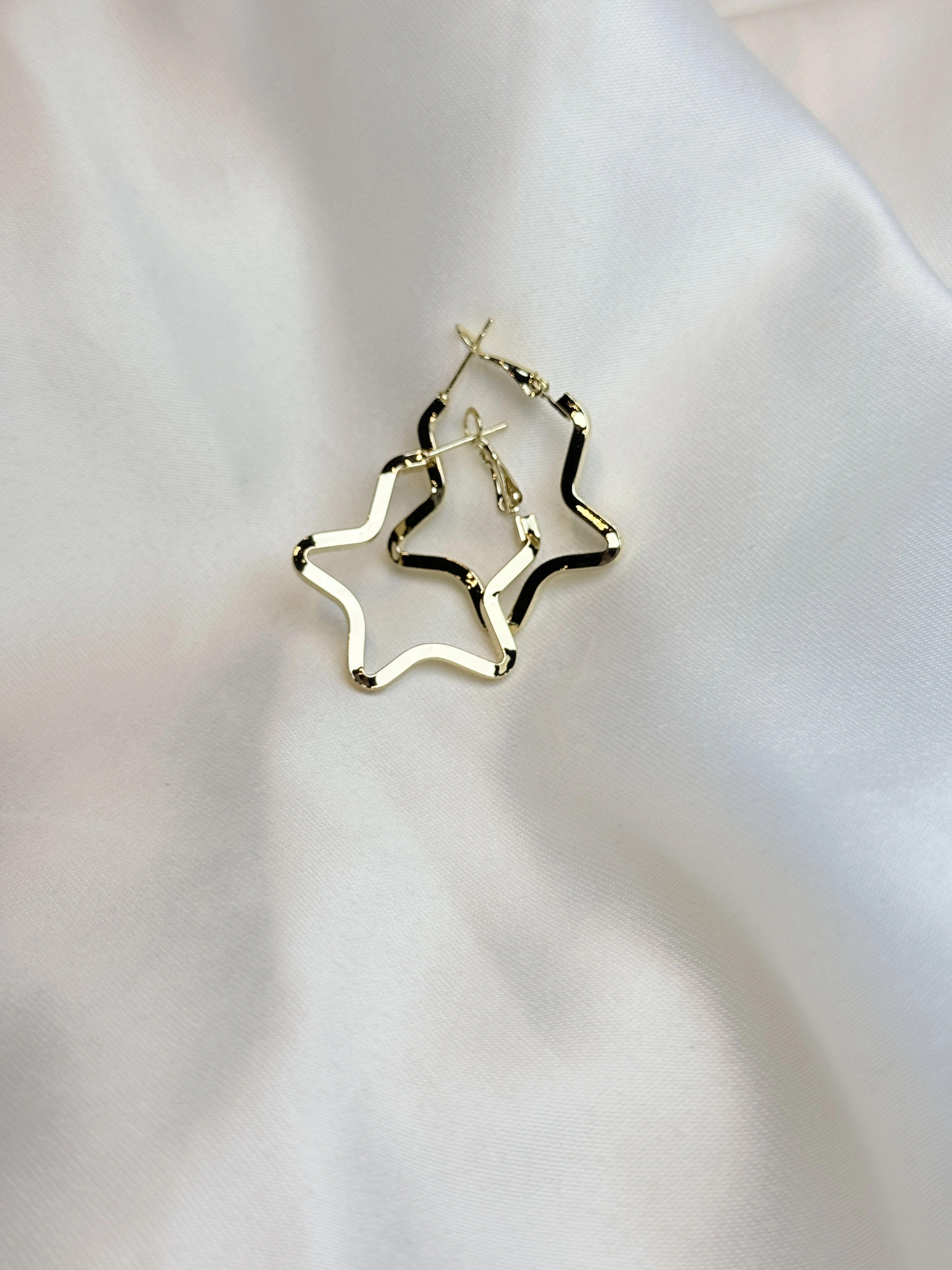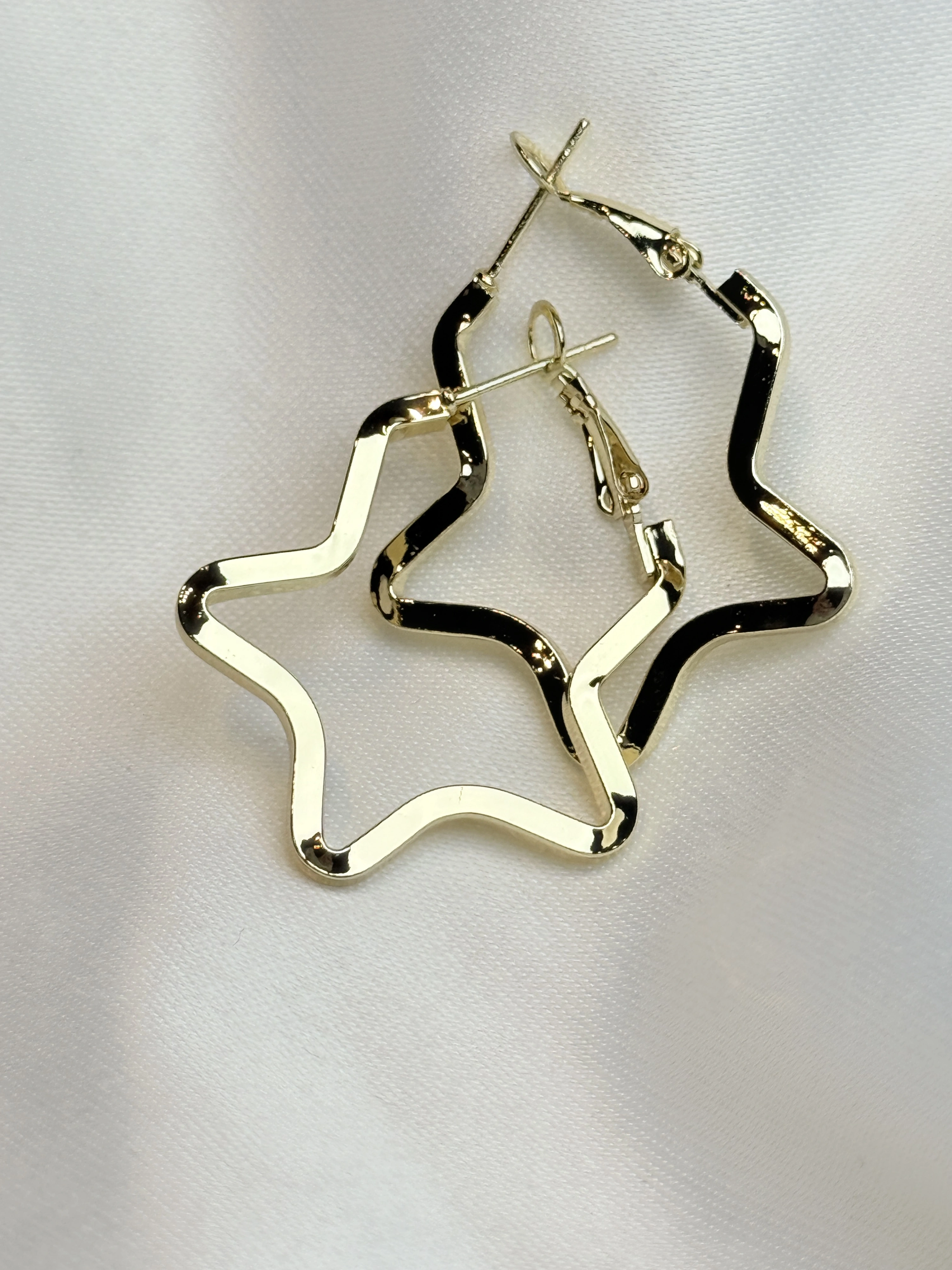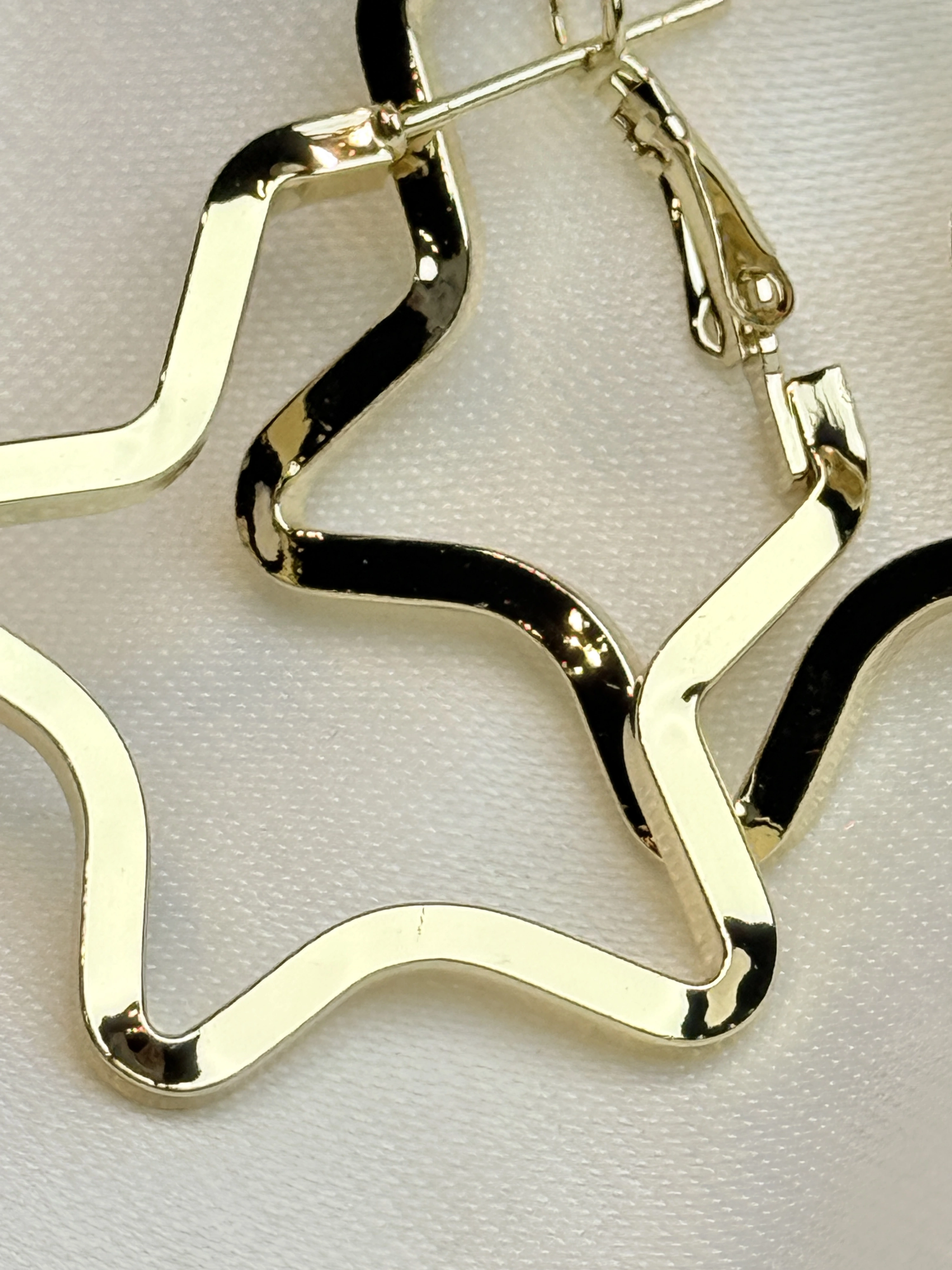 Gold Rengi Yıldız Desenli Kadın Halka Küpe