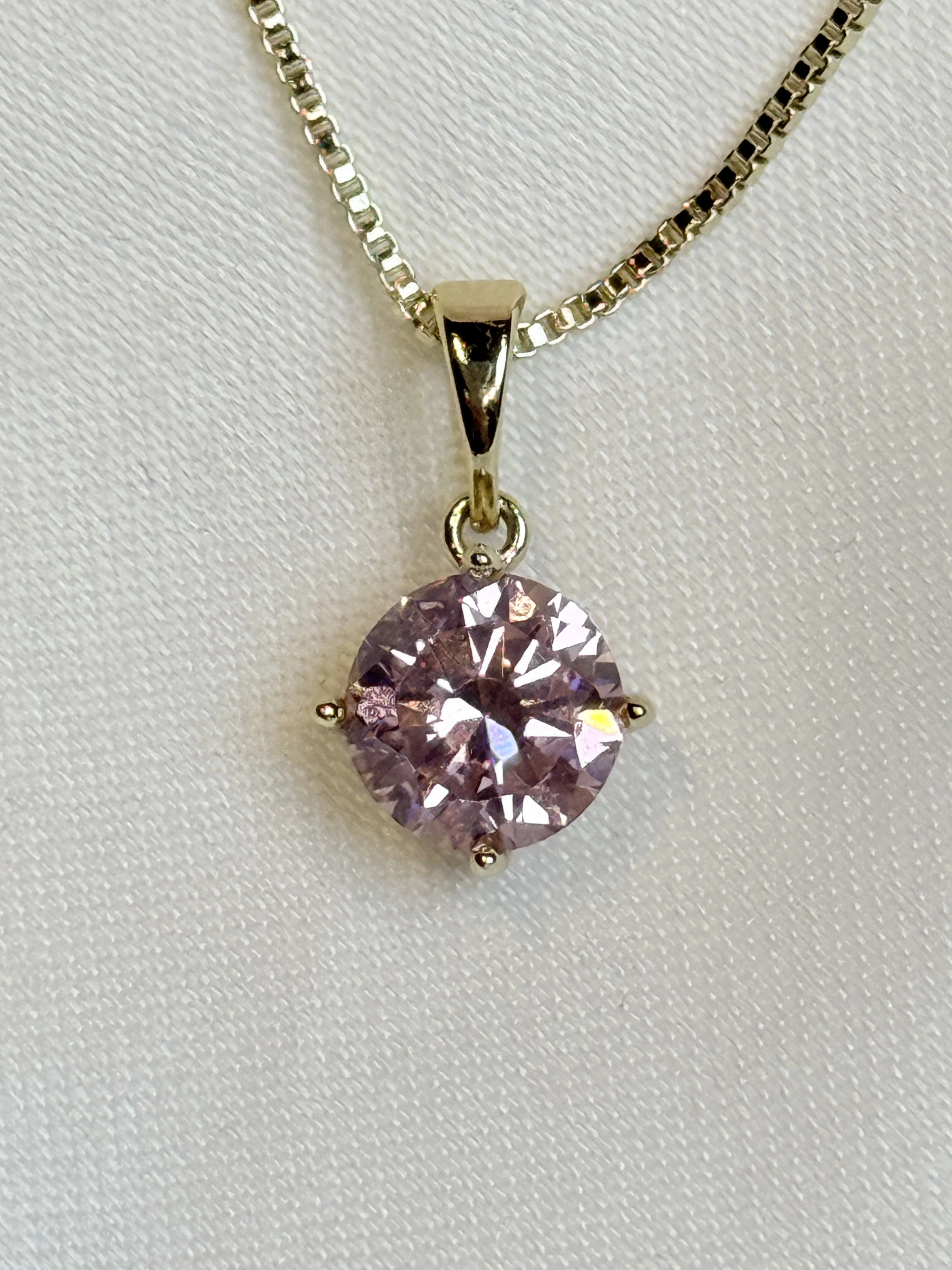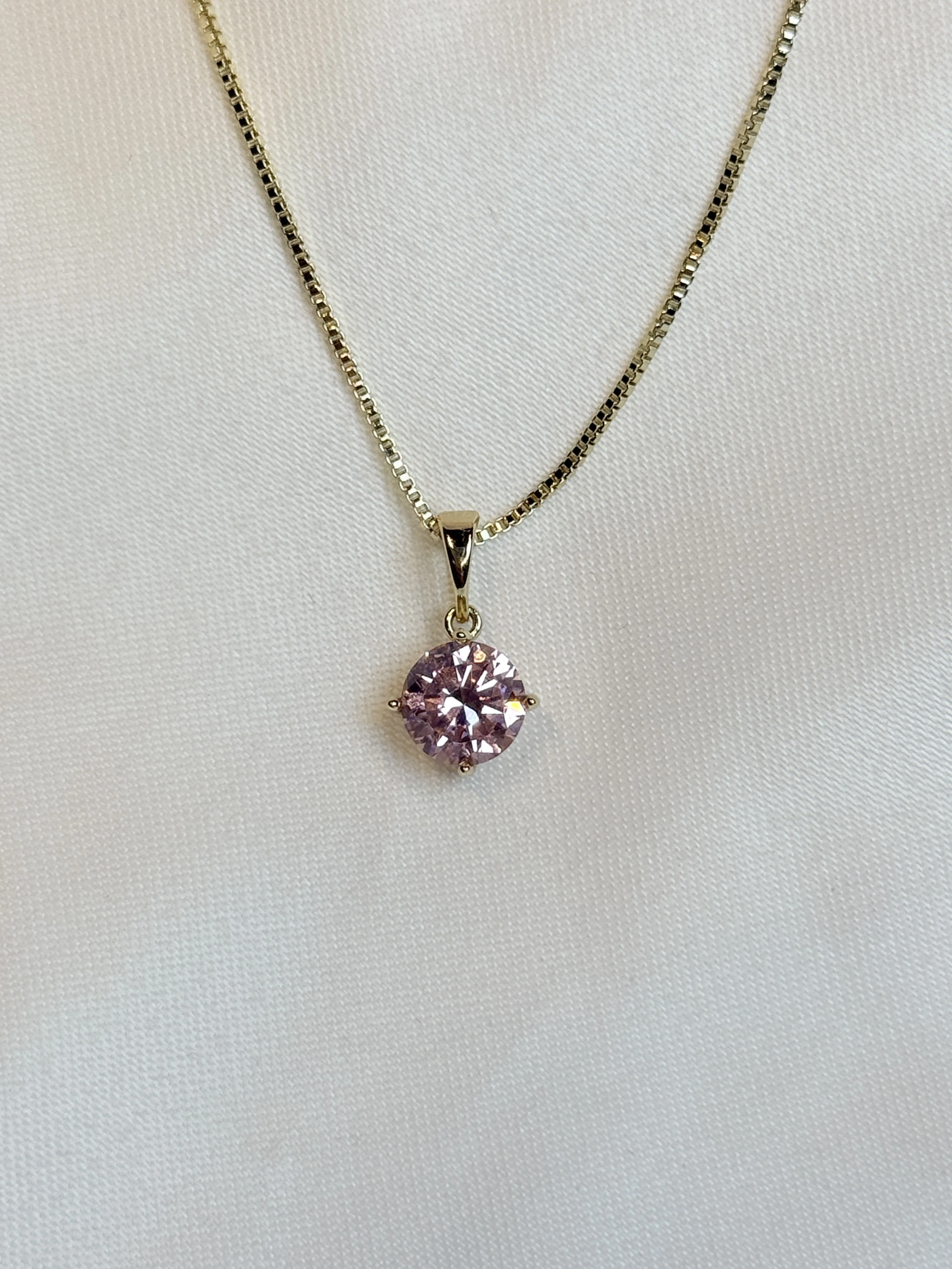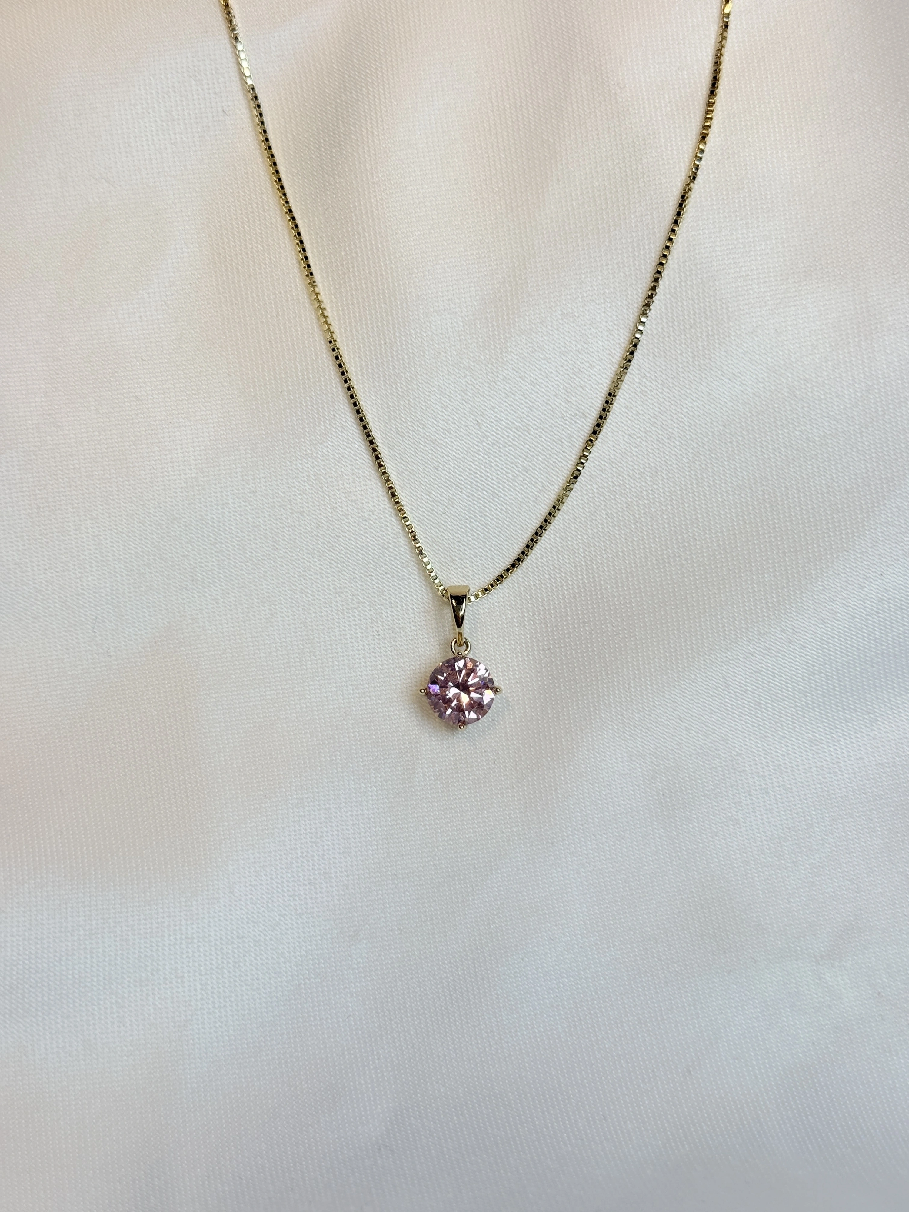 Gold Rengi Yuvarlak Kesim Pembe Taşlı XP Kadın Kolye