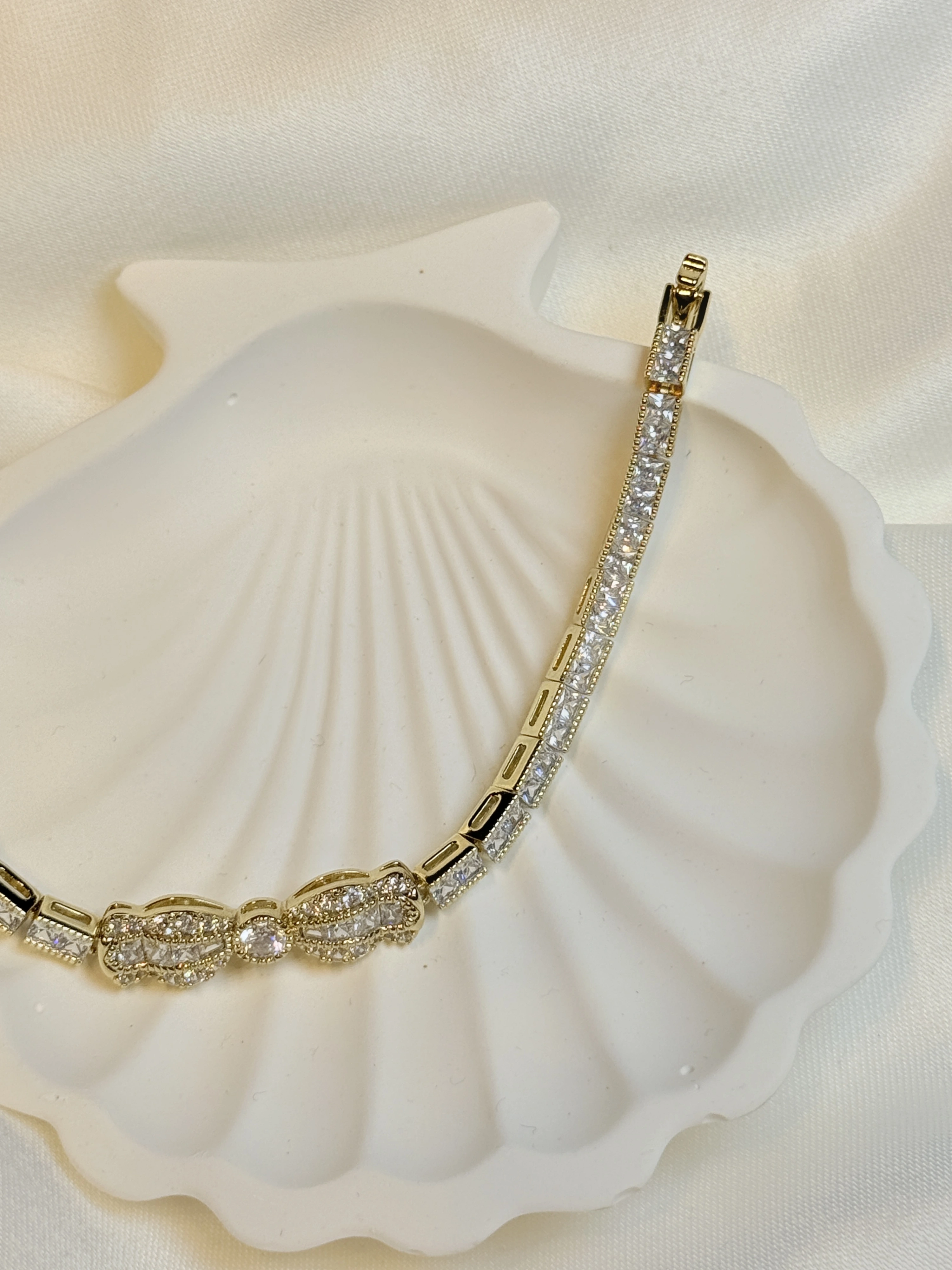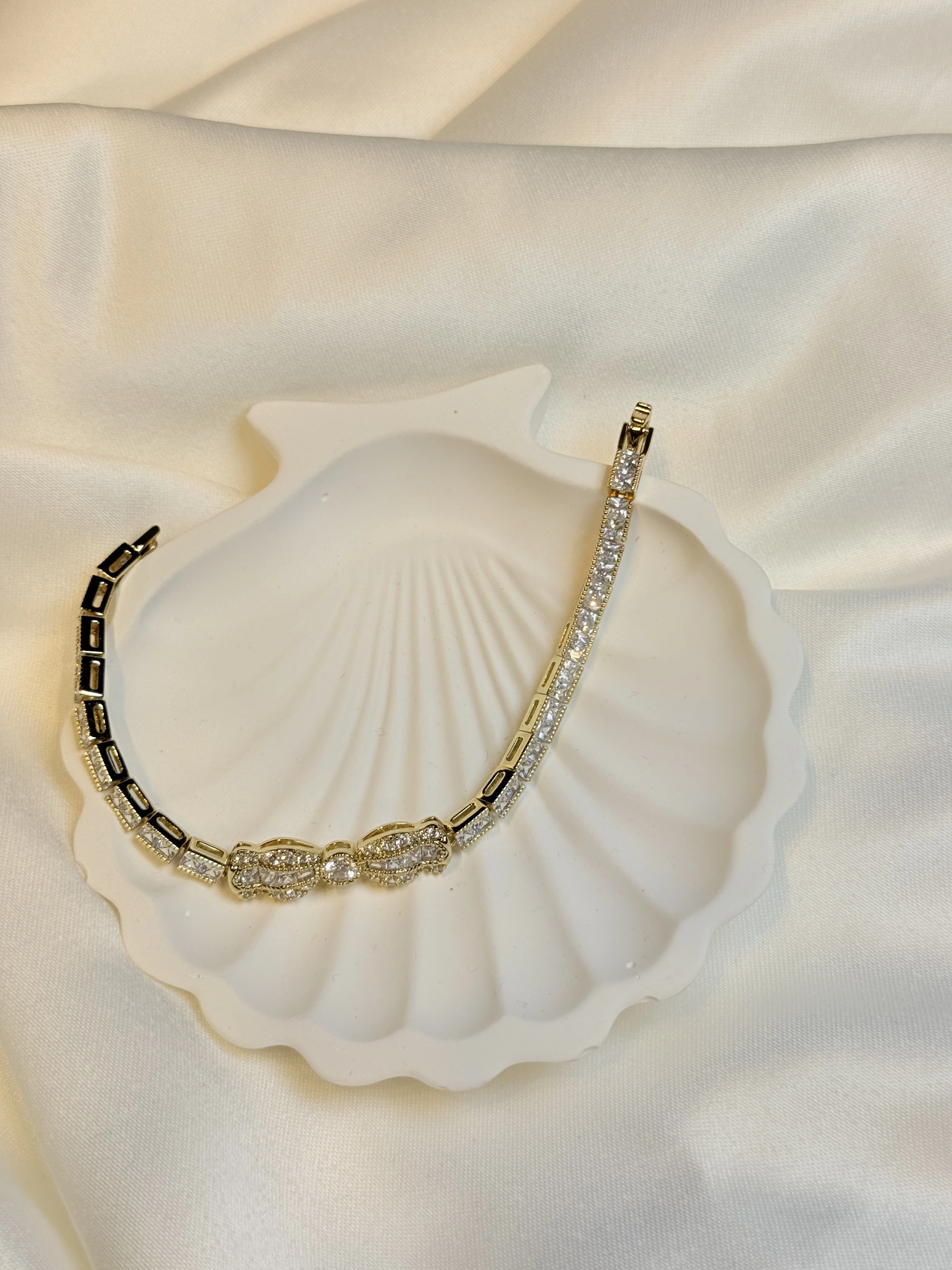 Gold Rengi Zirkon Taşlı Kurdele Model XP Kadın Bileklik