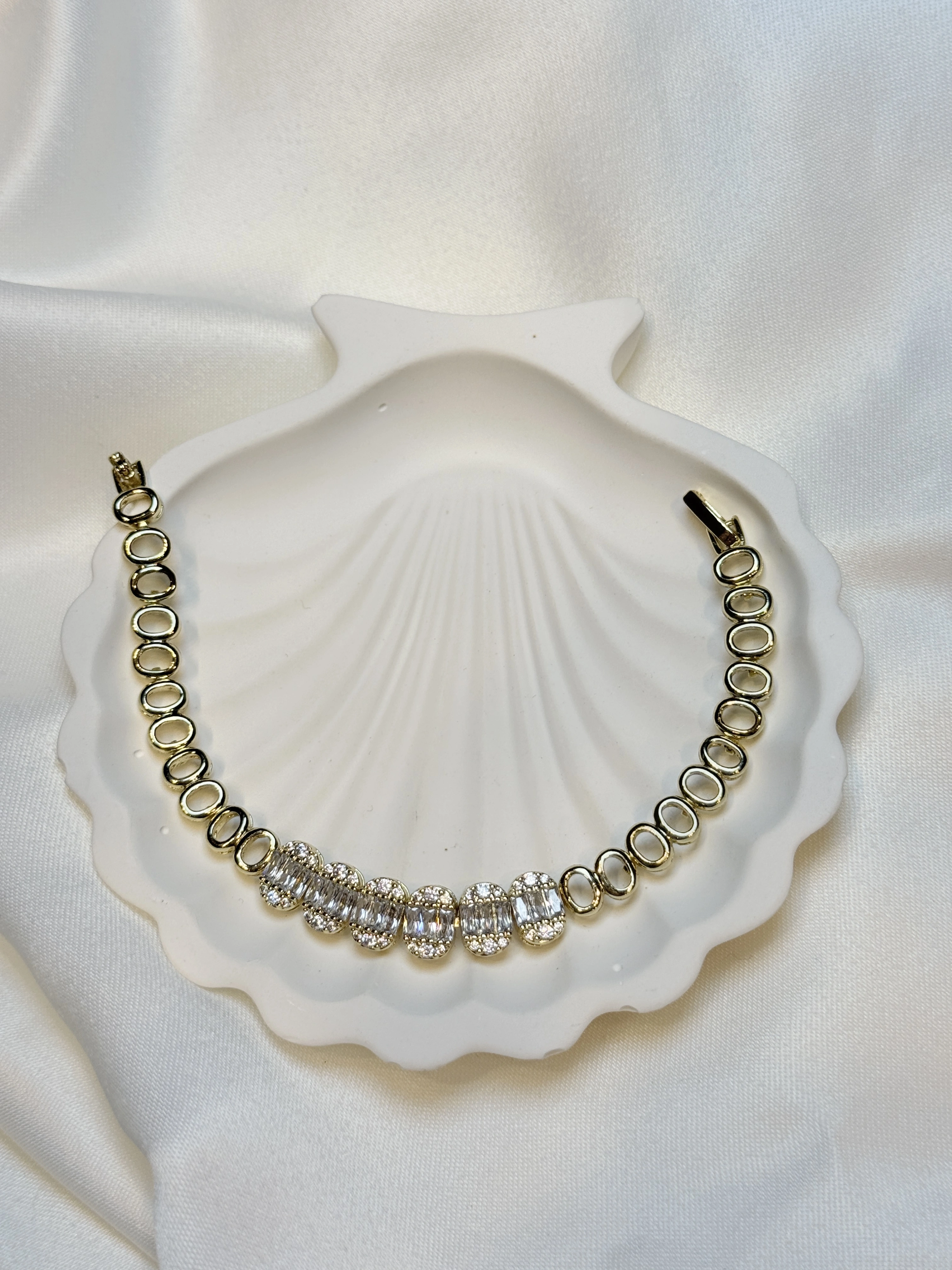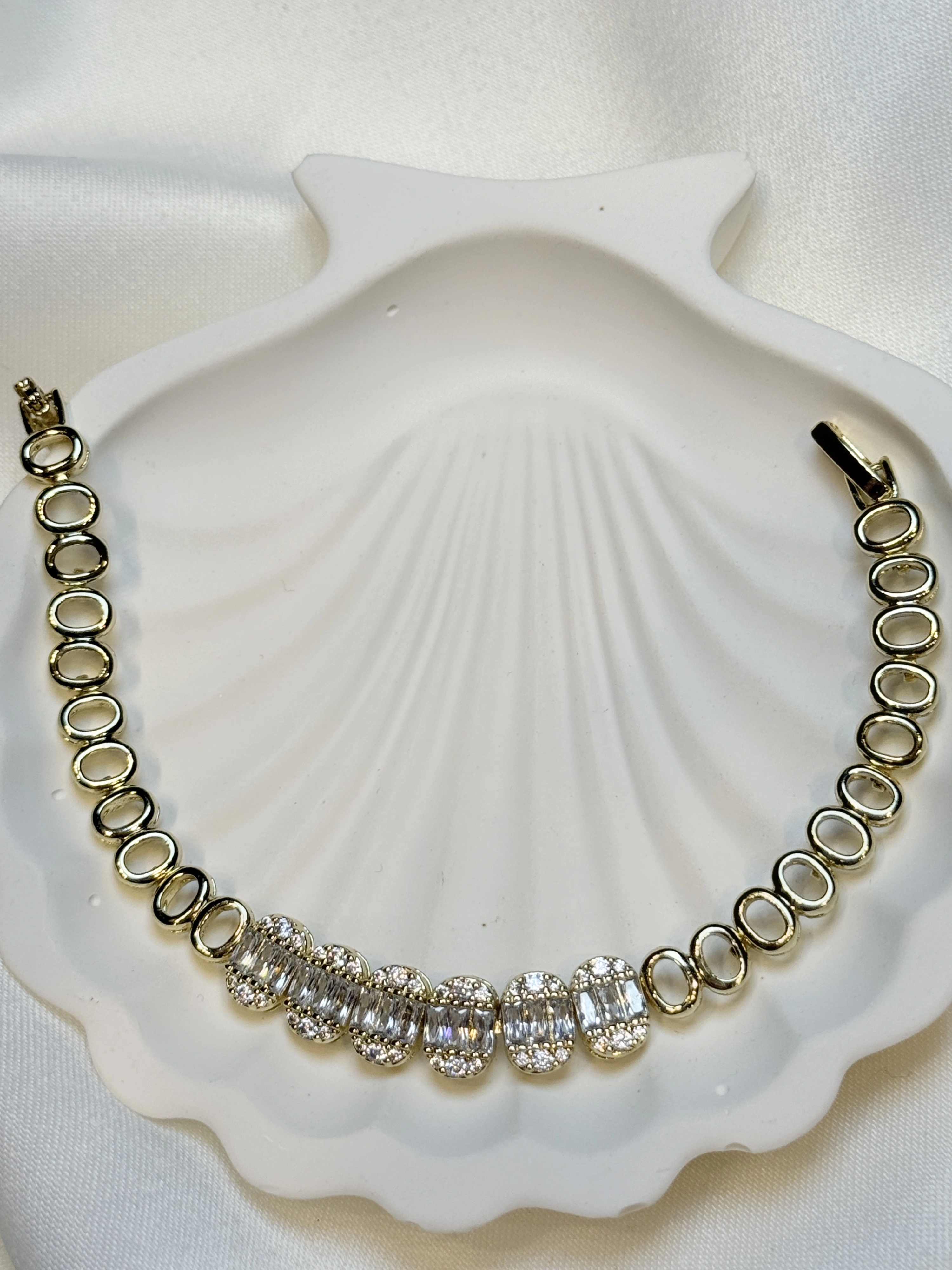 Gold Zirkon Baget Taşlı Oval Kadın Bileklik