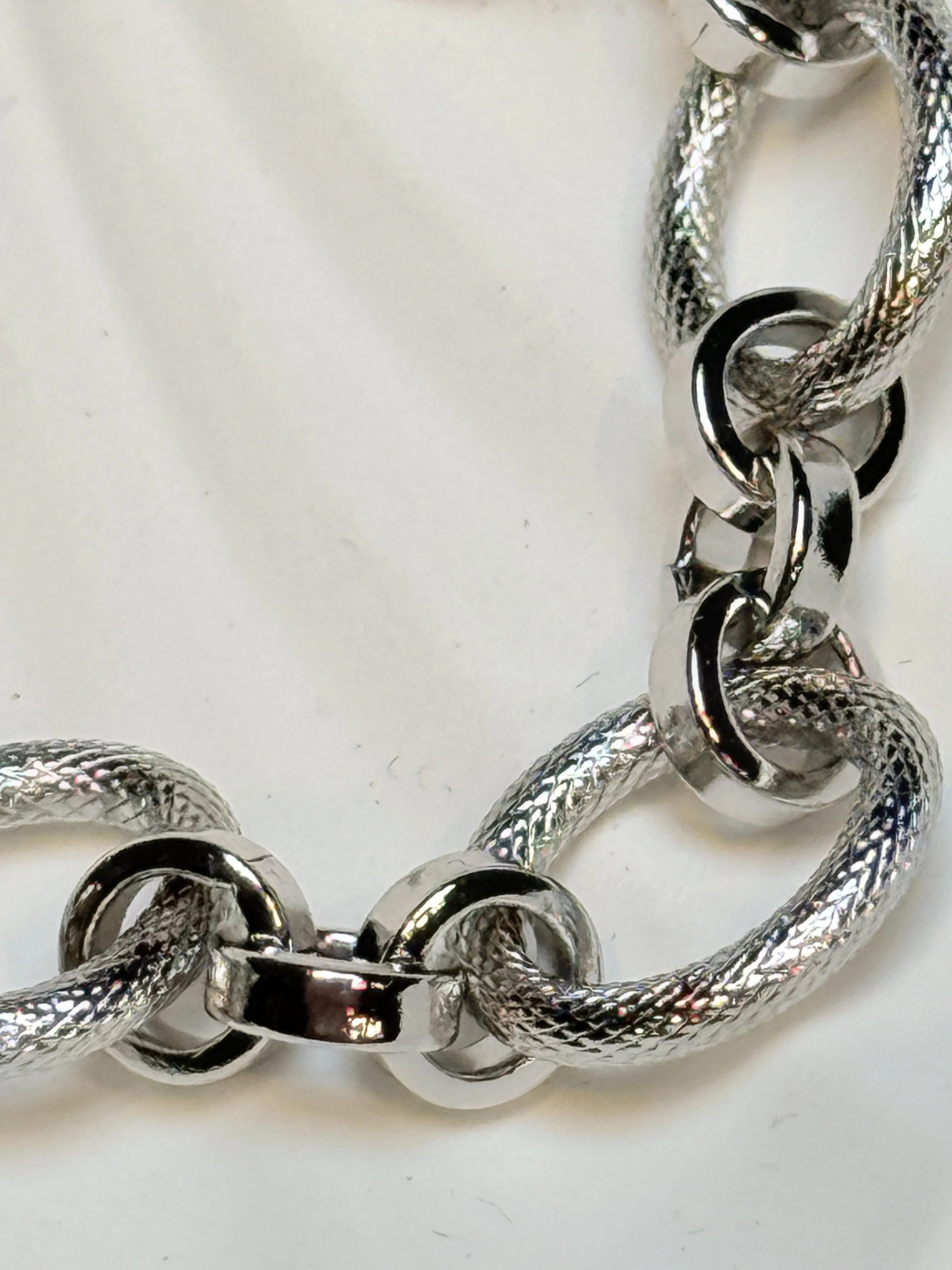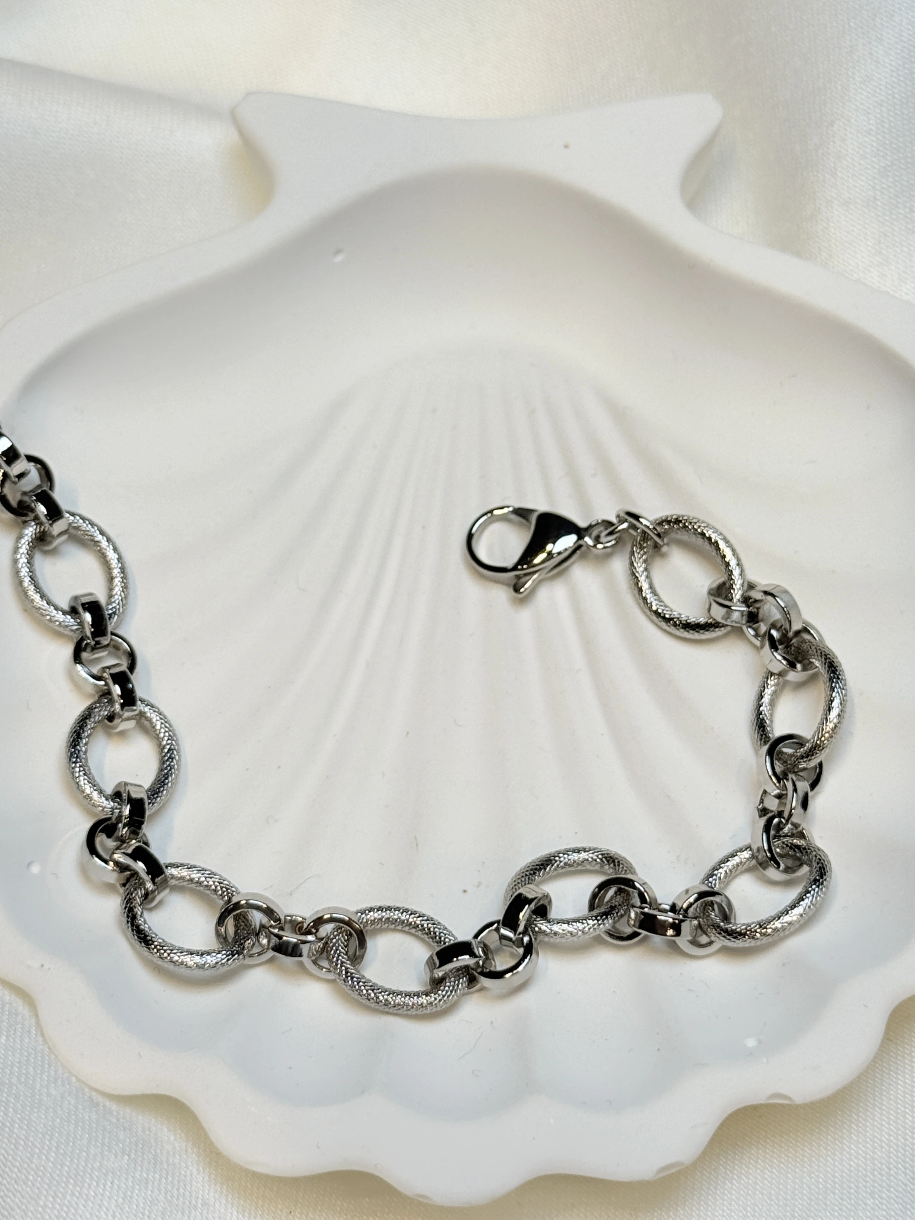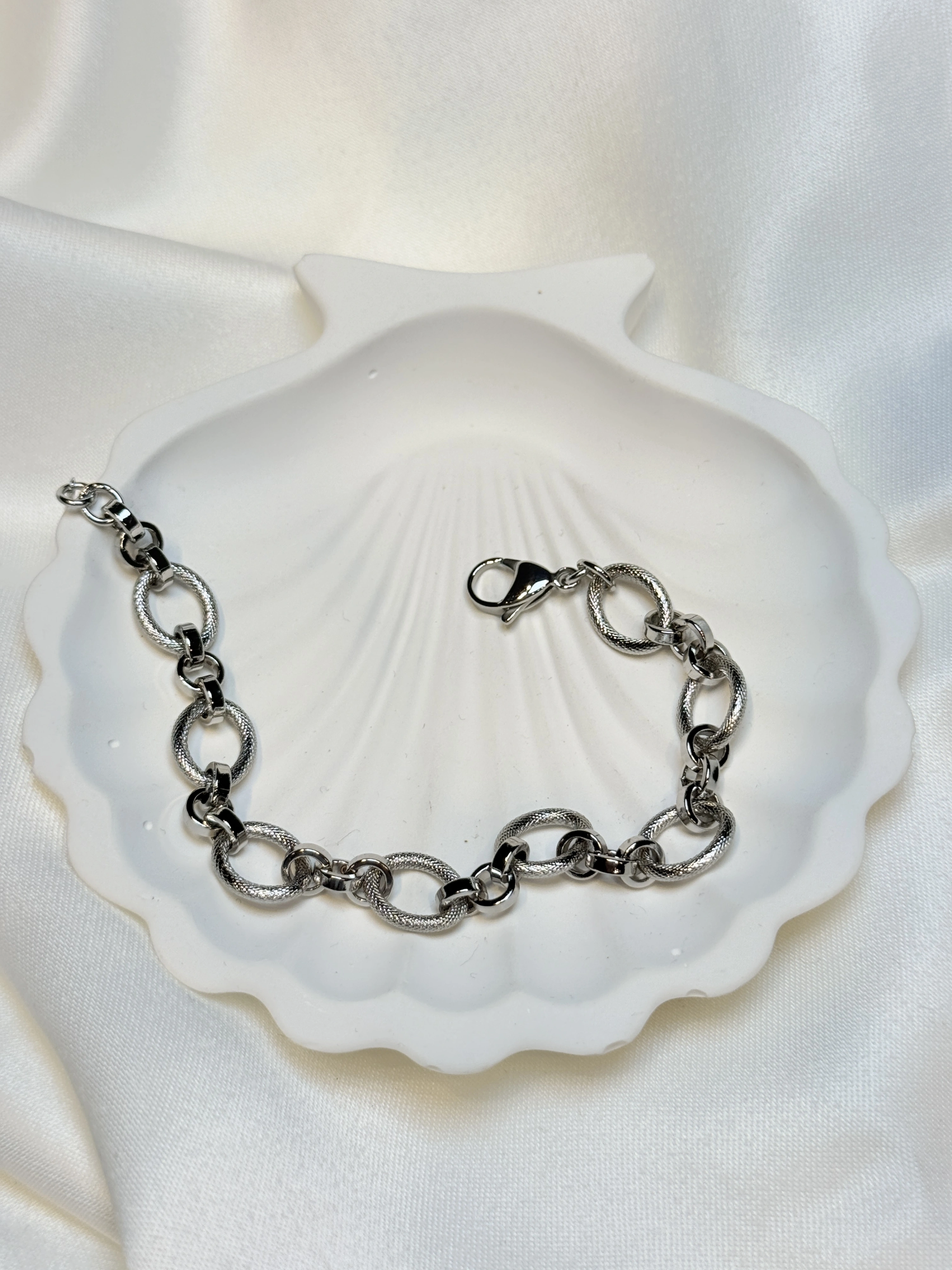 Gümüş Rengi Ezme Dokulu Halkalı Kadın Bileklik