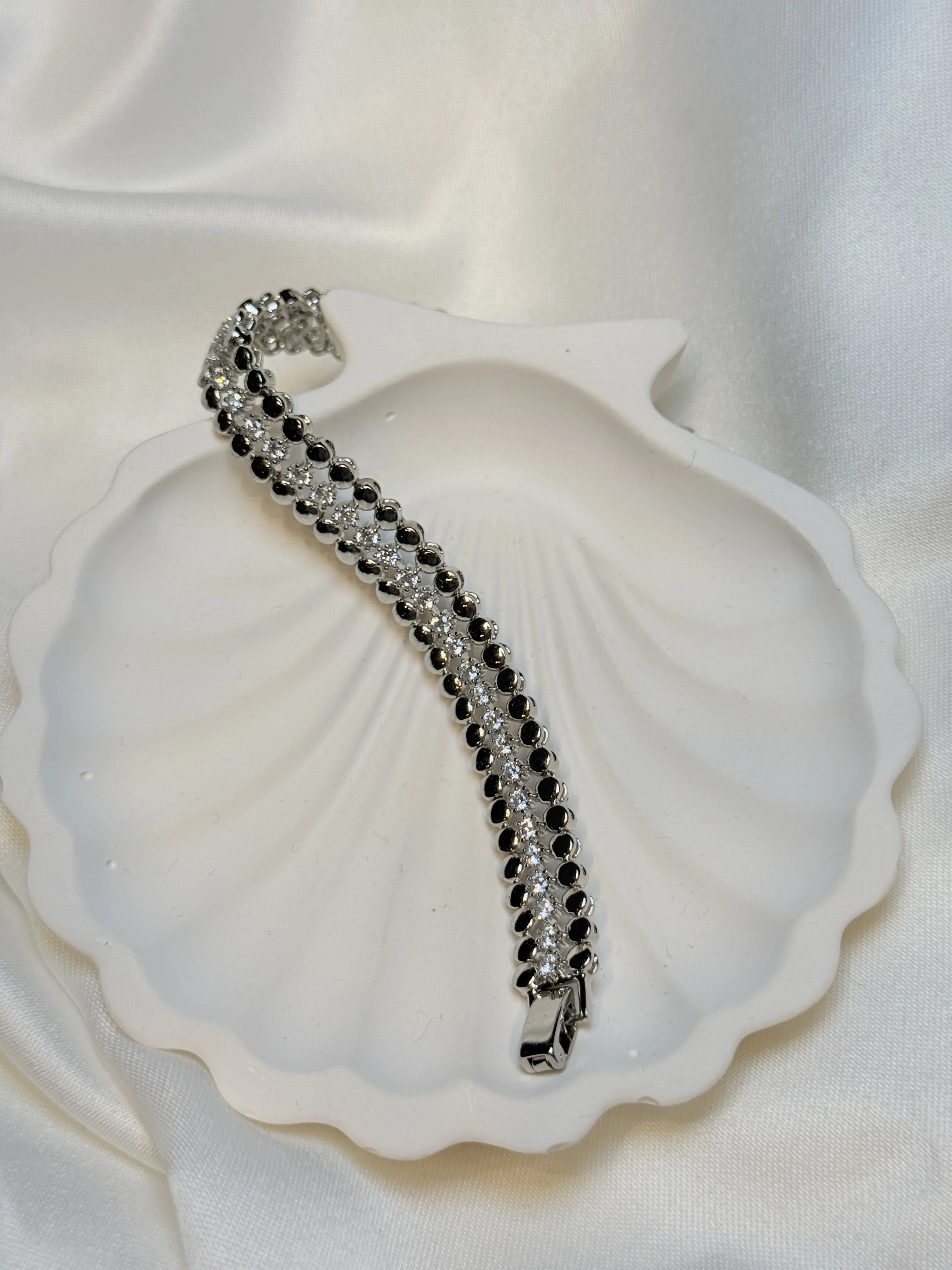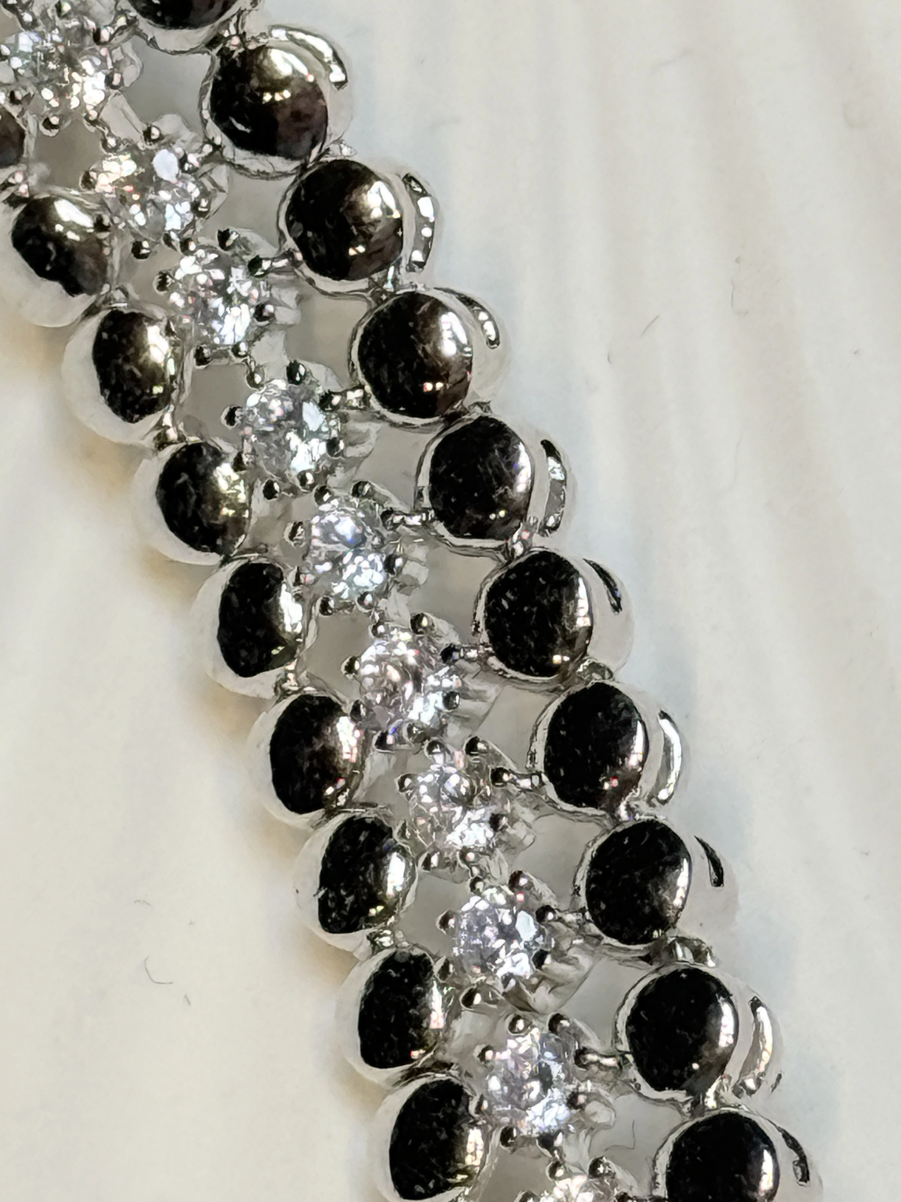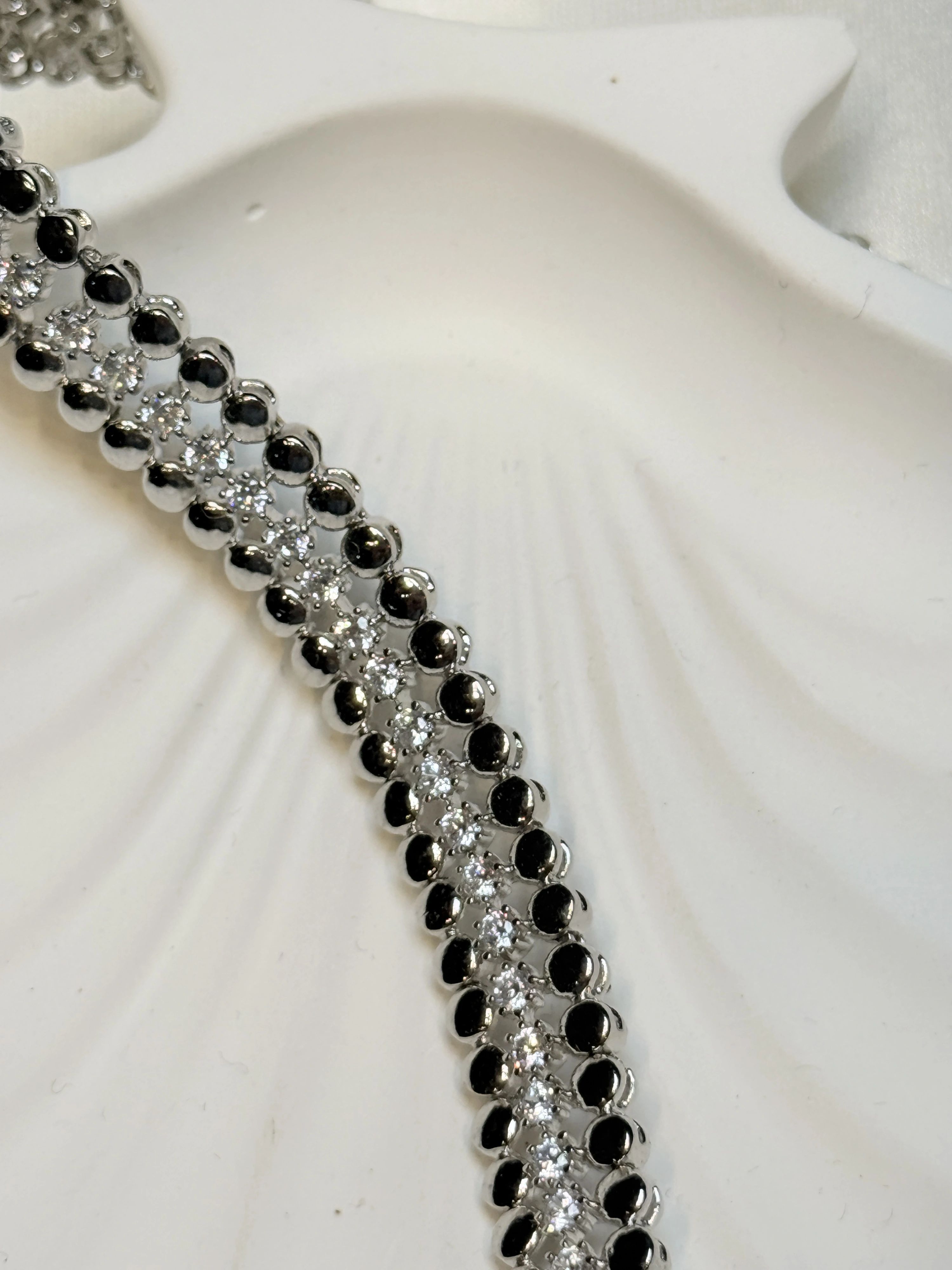 Gümüş Rengi Sıralı Taşlı Ezme Model Kadın Bileklik
