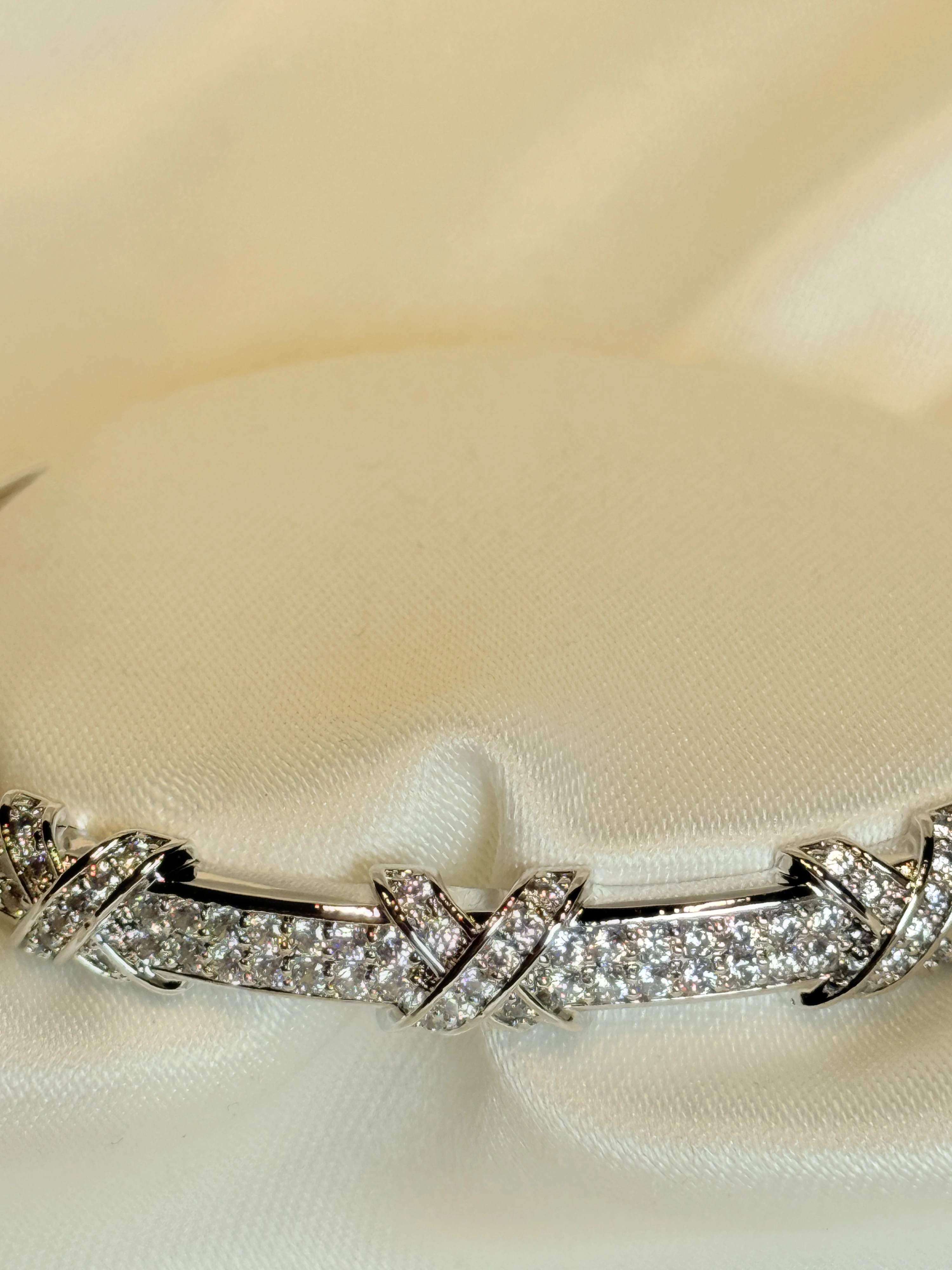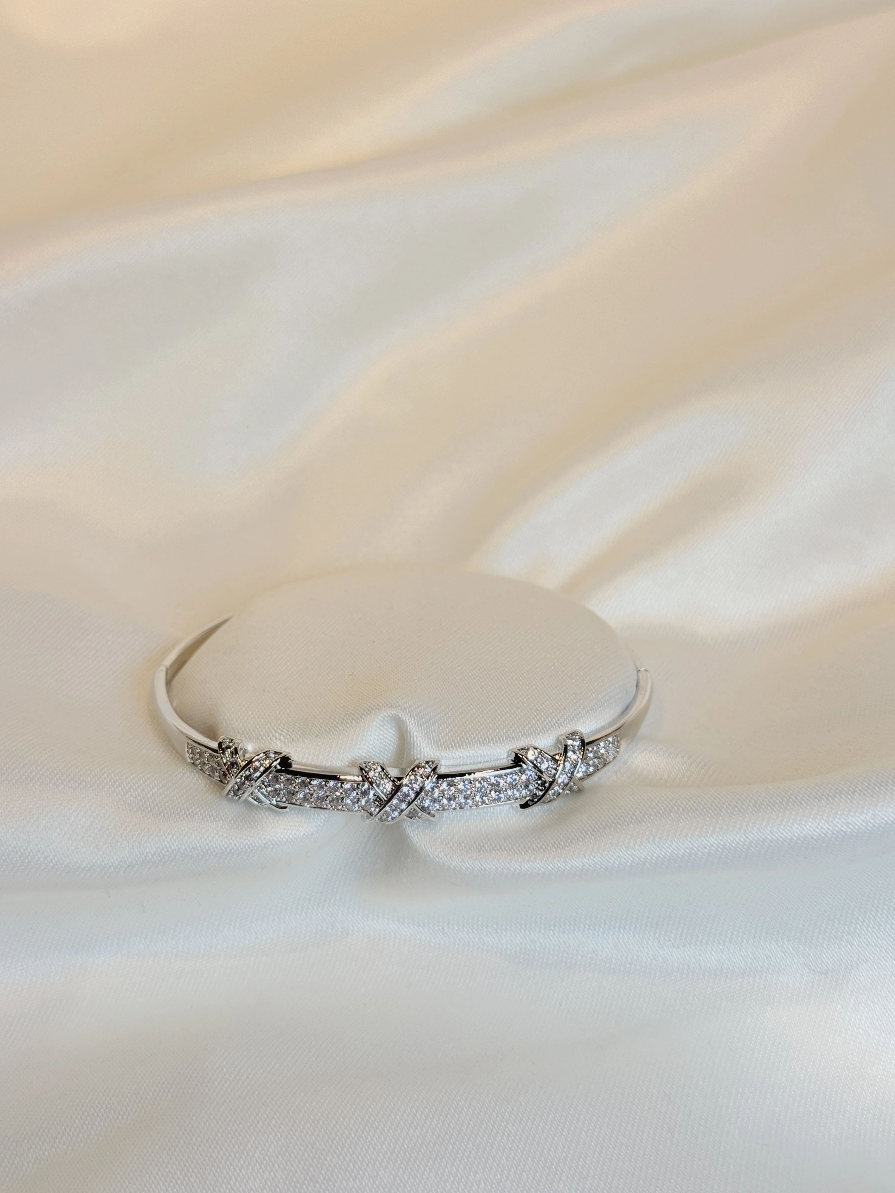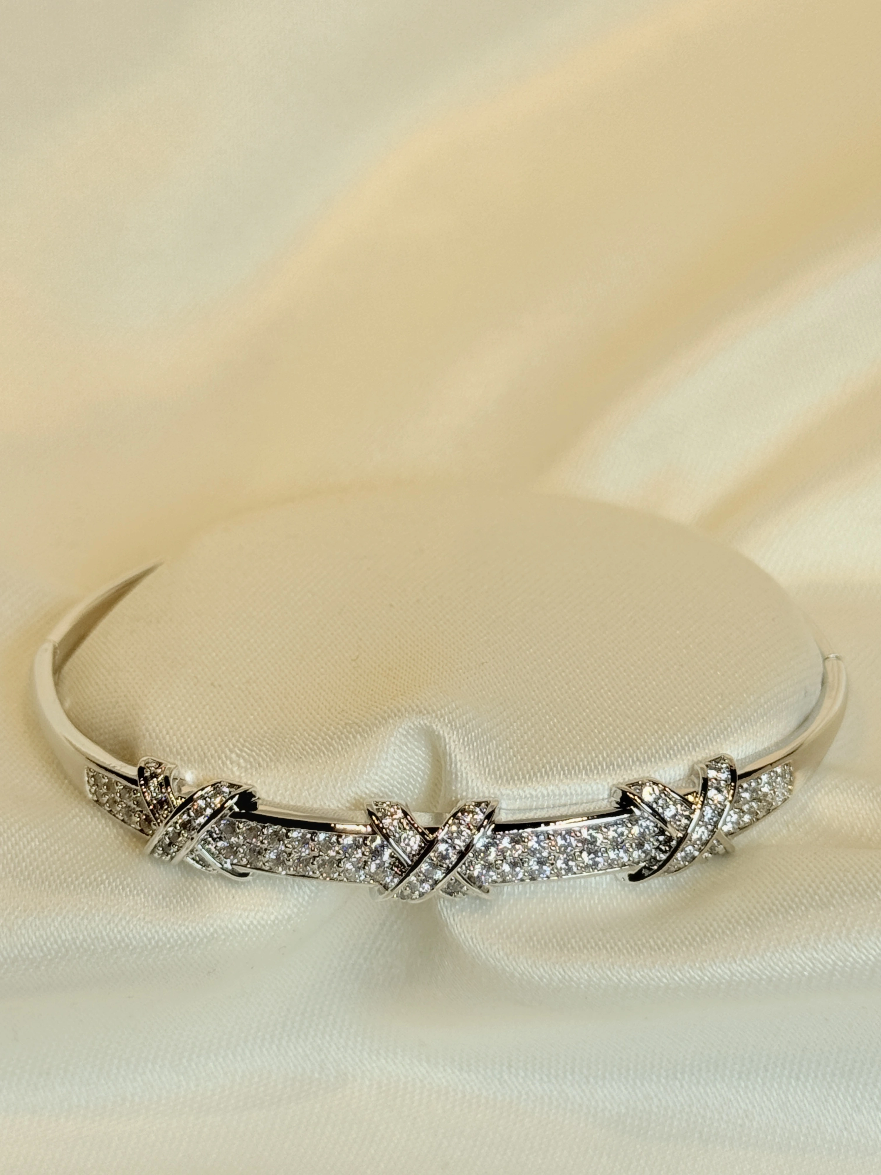 Gümüş Renk Çapraz Taş Şeritli Kadın Kelepçe Bileklik
