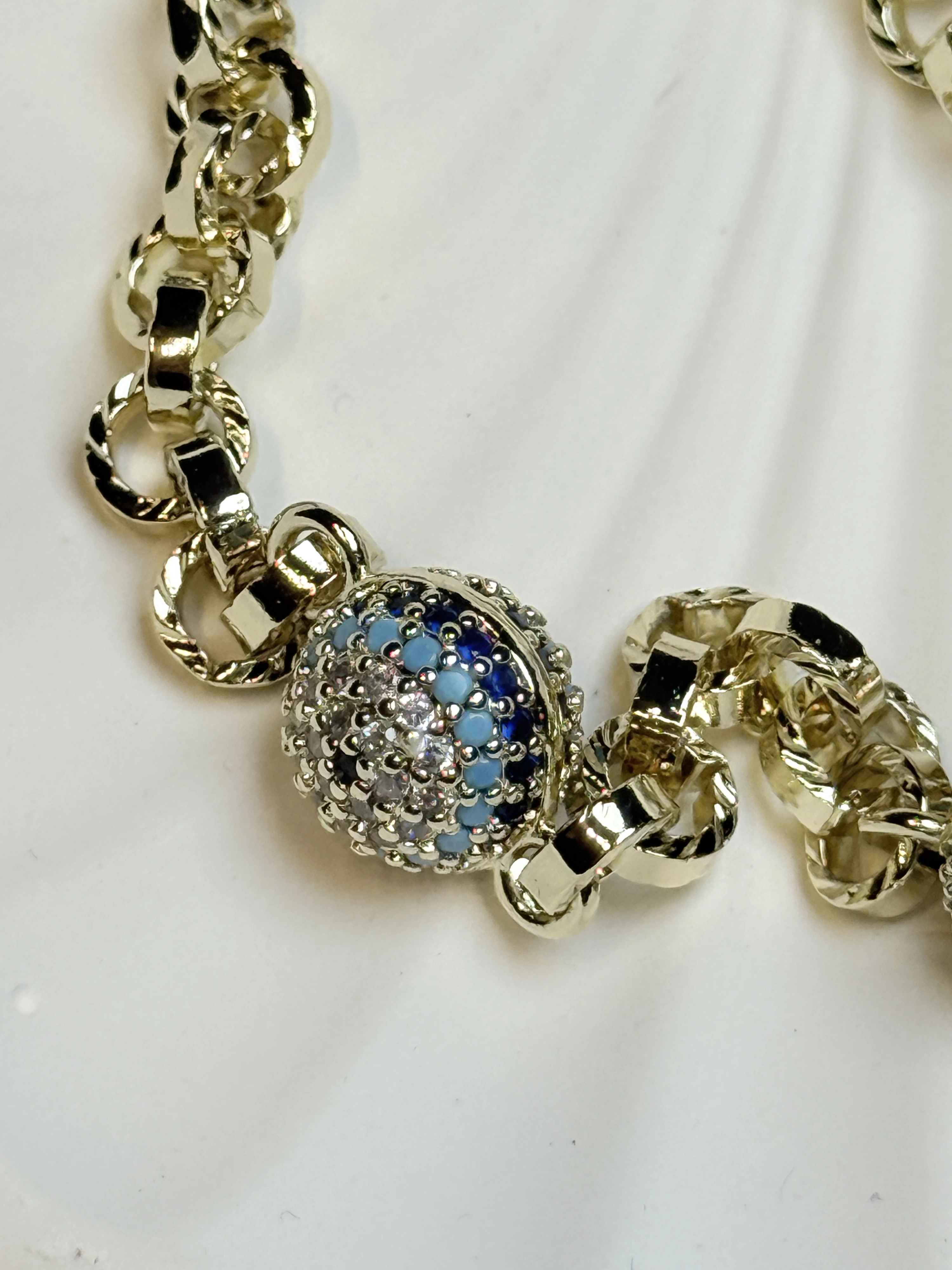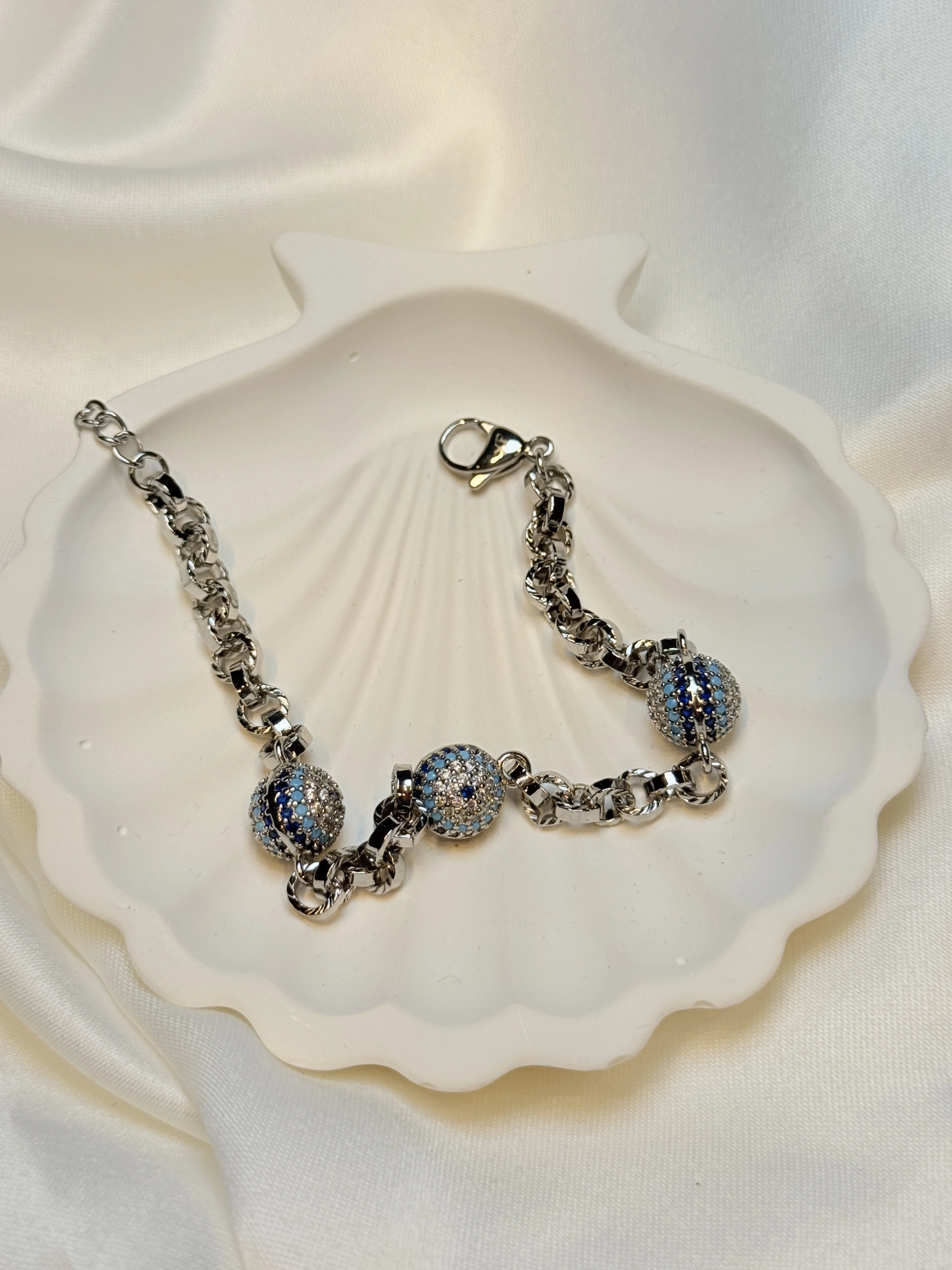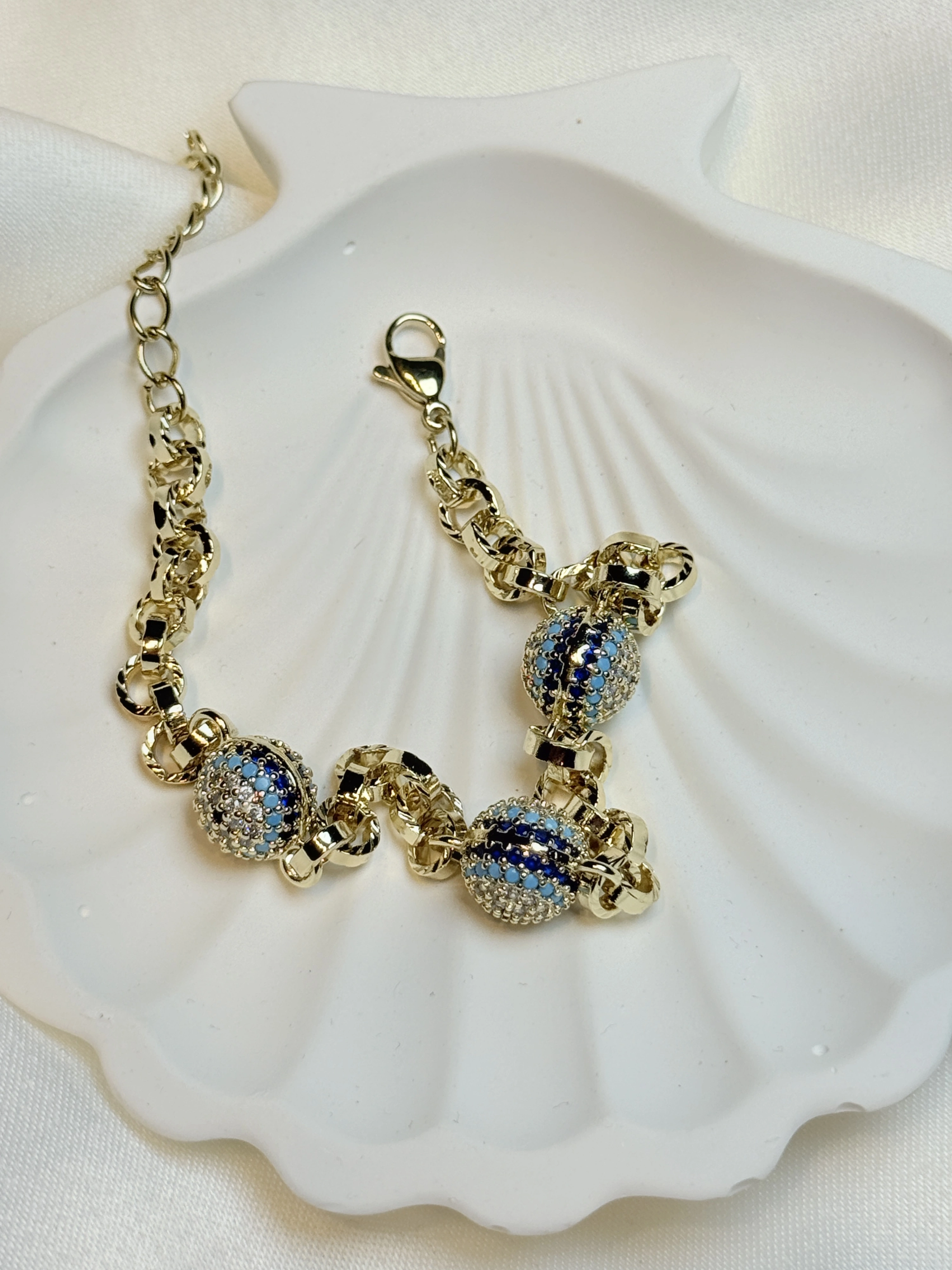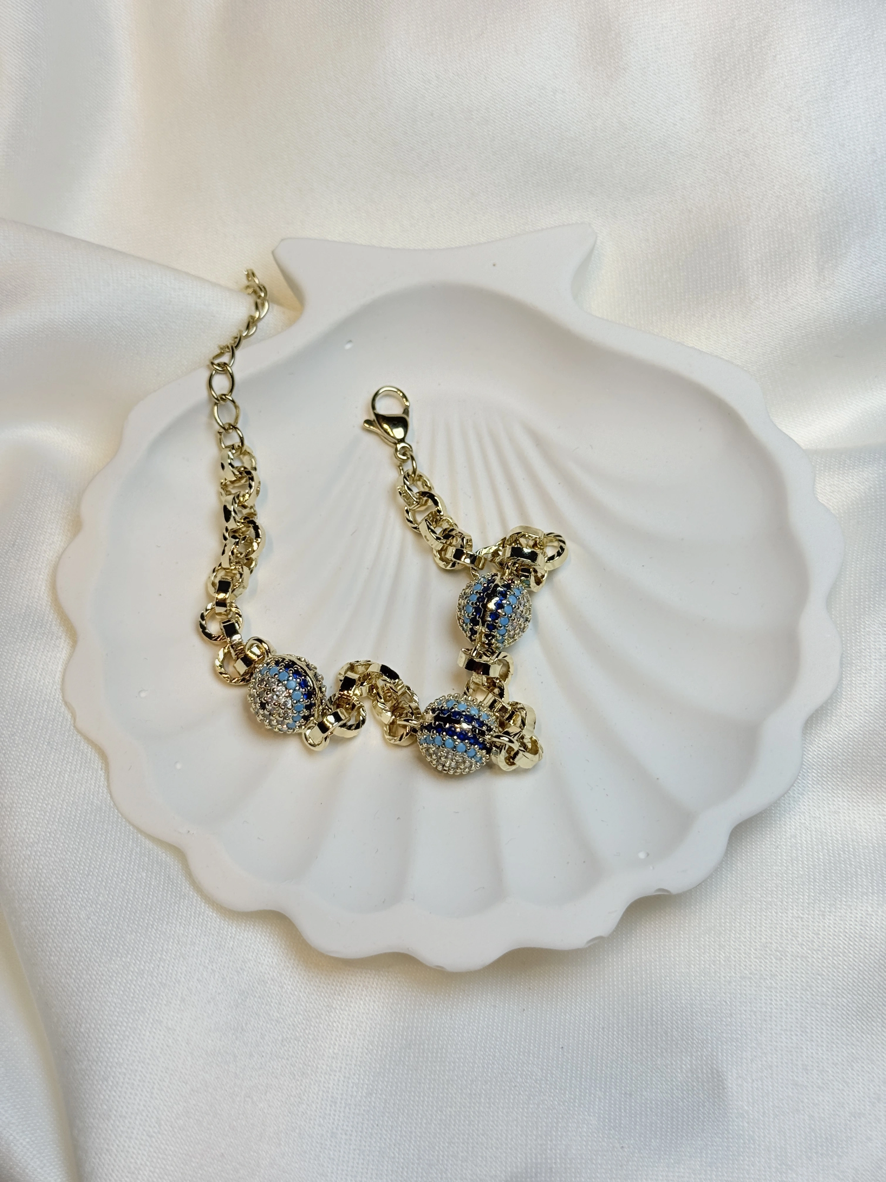 Zirkon Taş Detaylı Üç Göz Figürlü Halkalı Zincir Kadın Bileklik