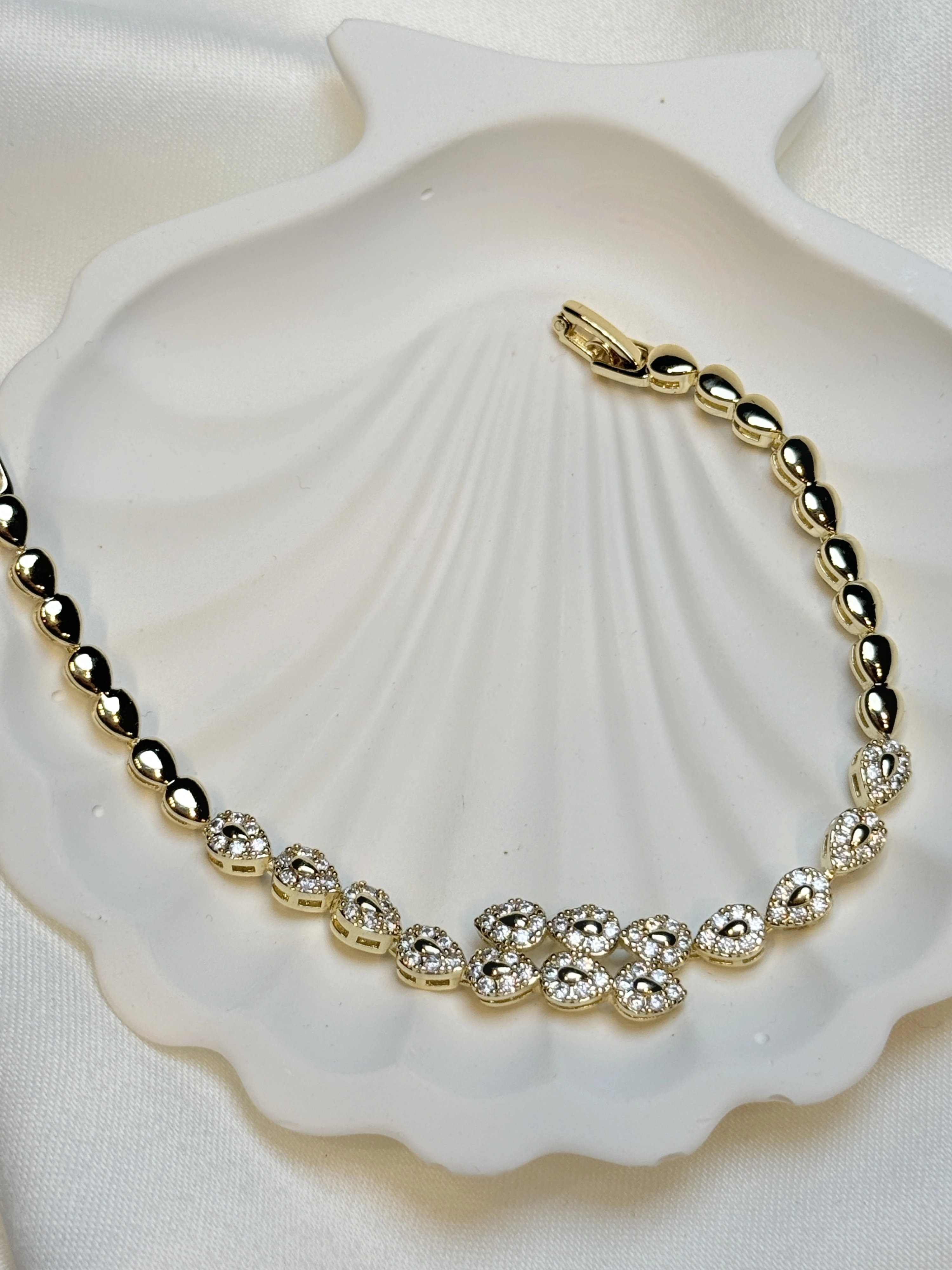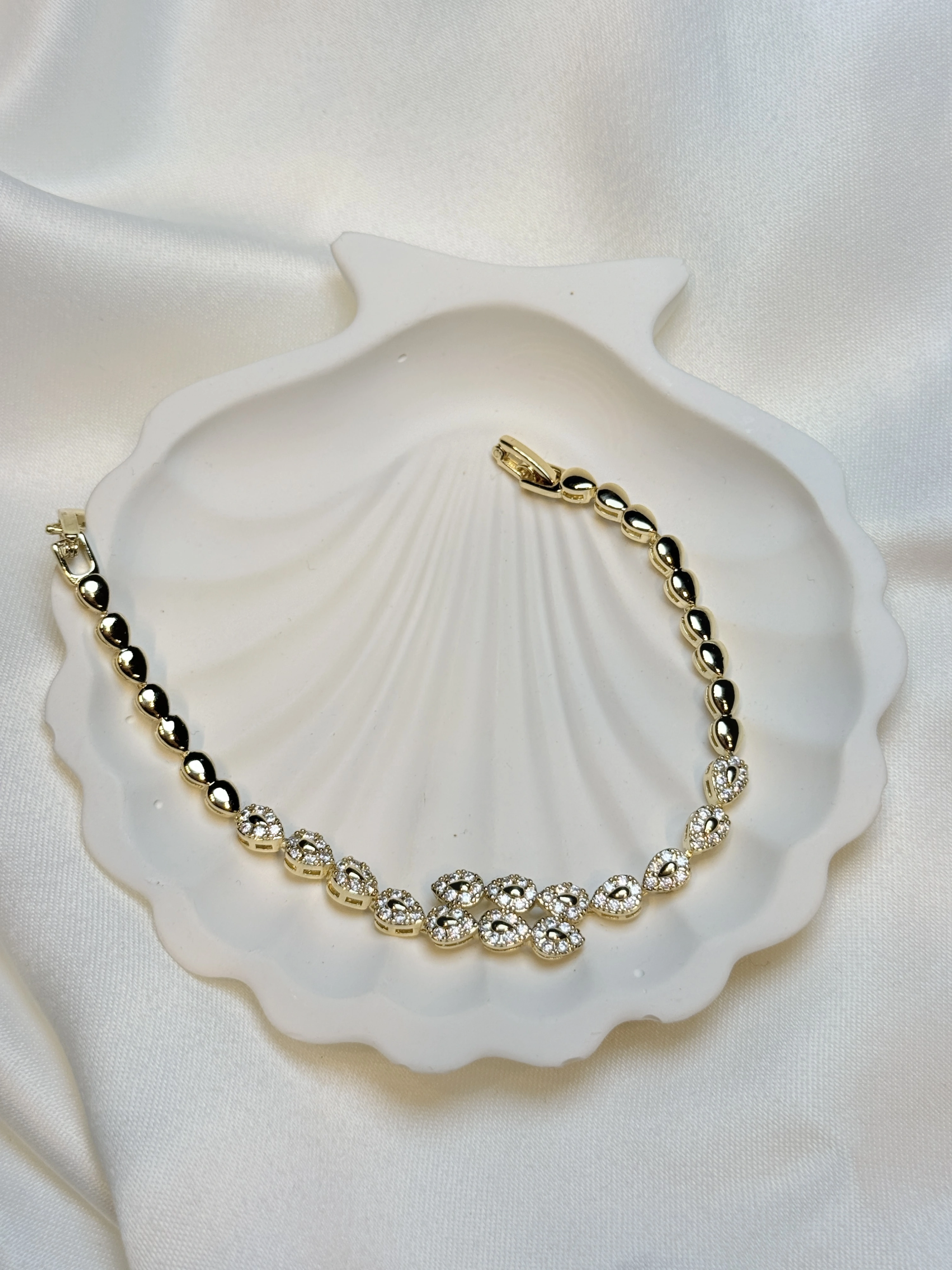 Zirkon Taşlı Sıralı Damla Model Gold Renk Kadın Bileklik