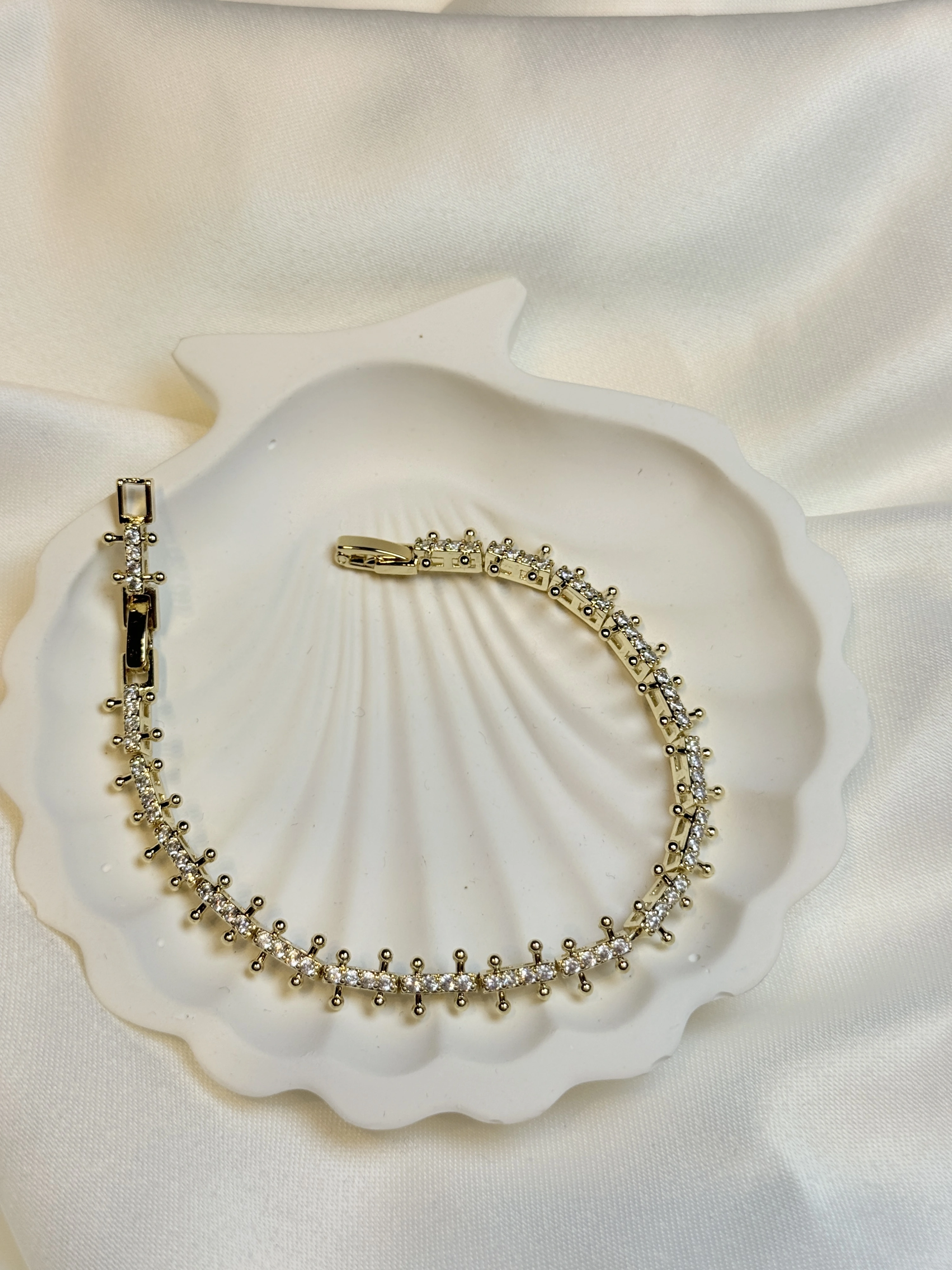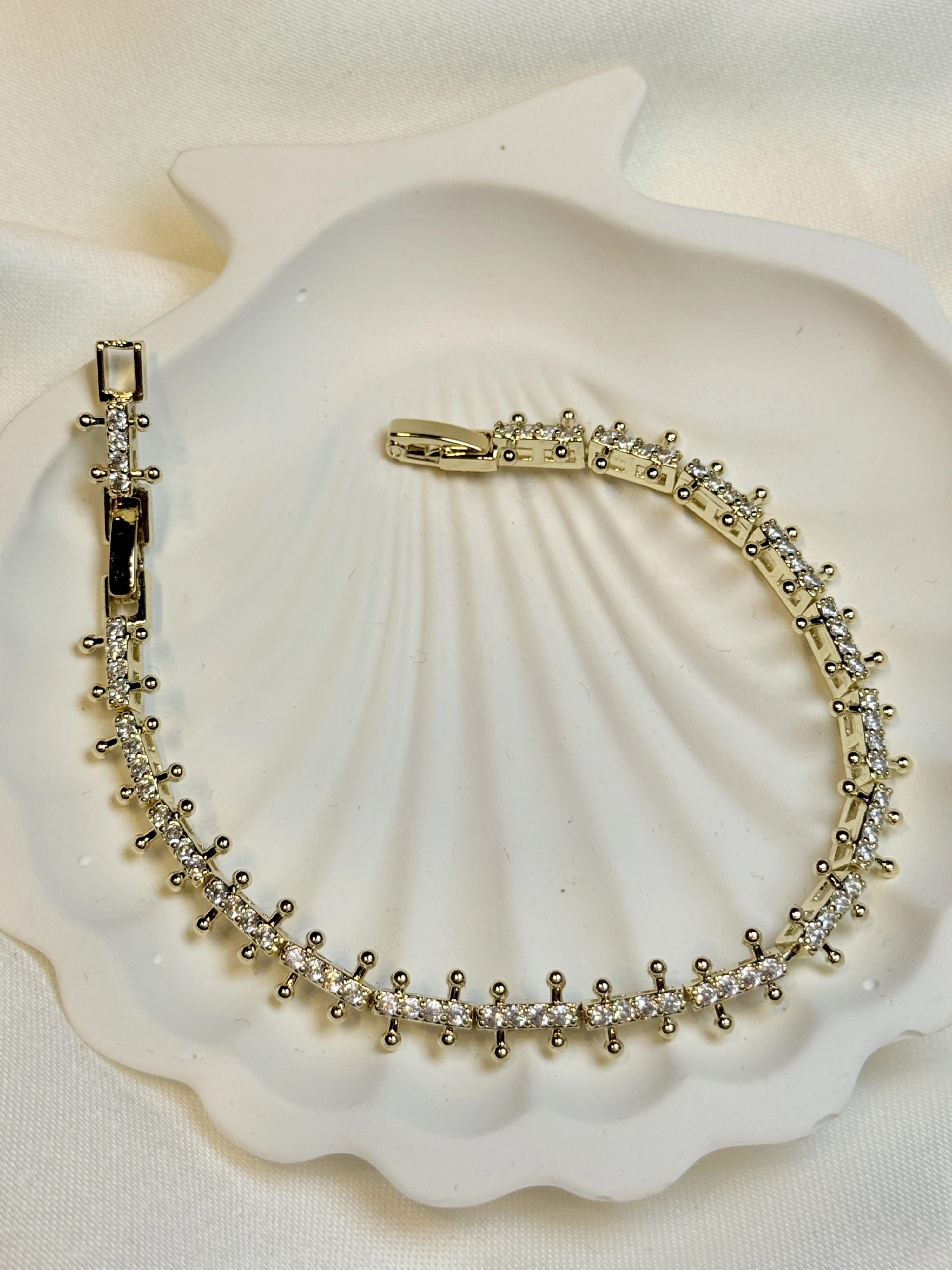 Gold Rengi Sıralı Zirkon Taşlı CM Kadın Bileklik