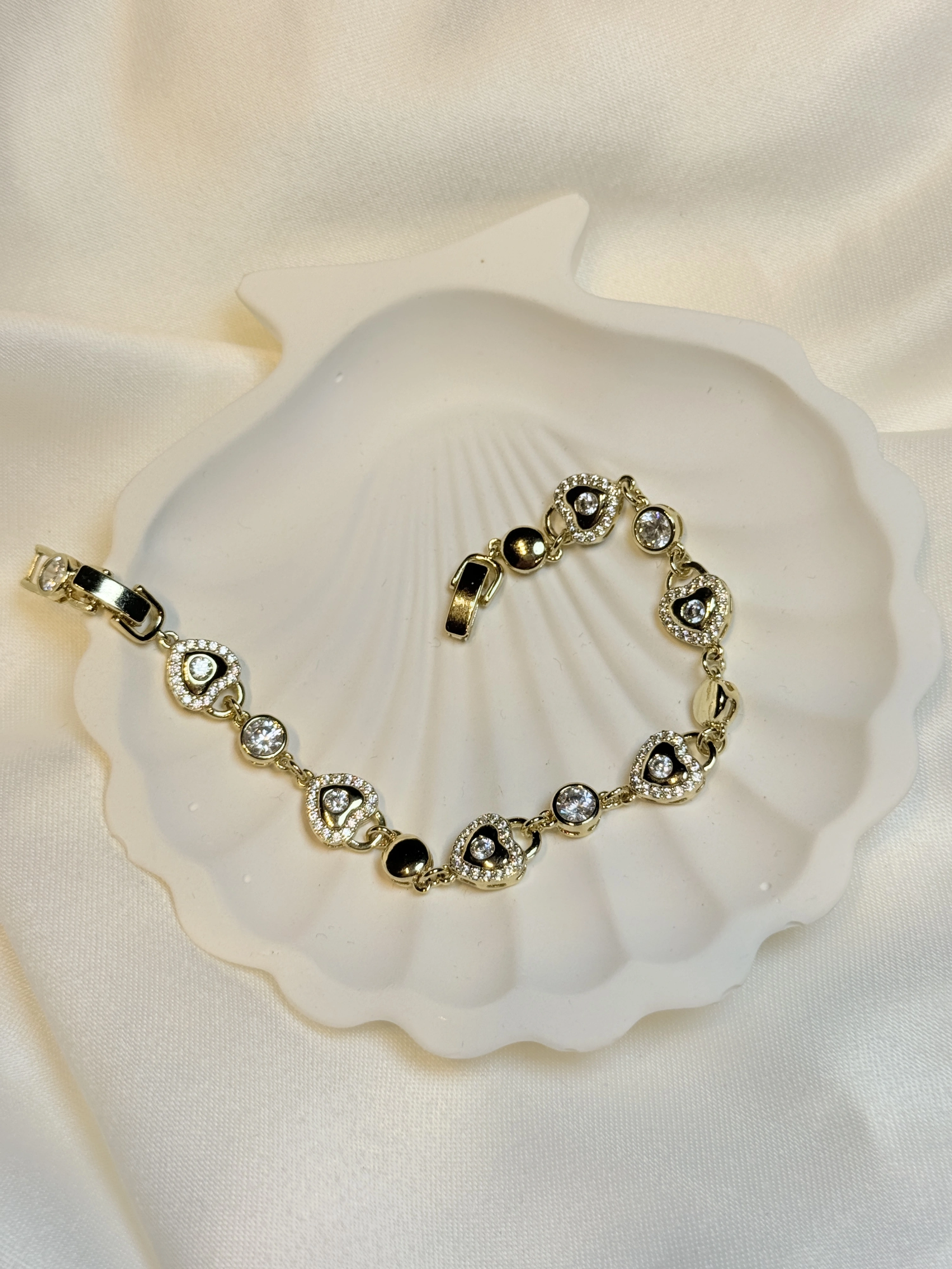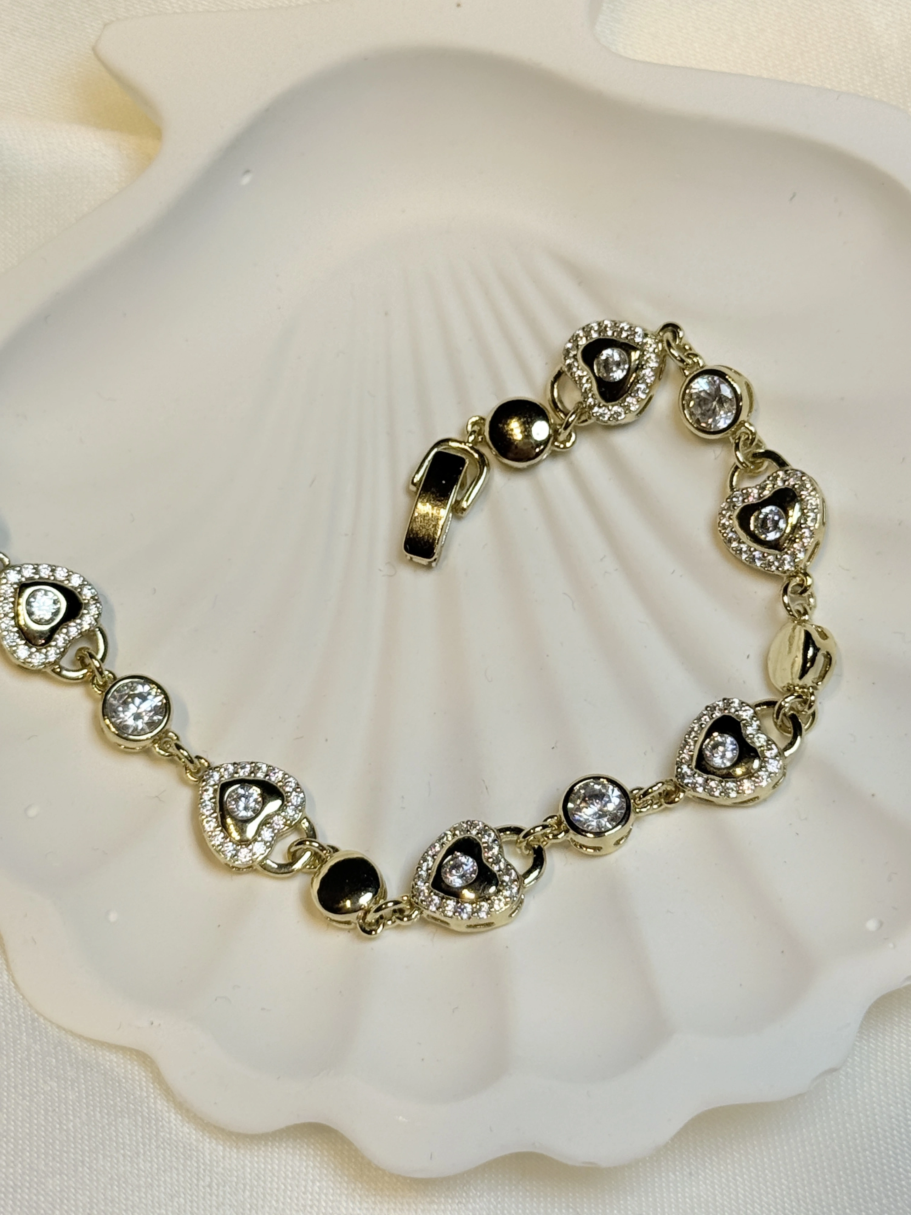 Gold Rengi Kalp Model Zirkon Taşlı XP Kadın Bileklik