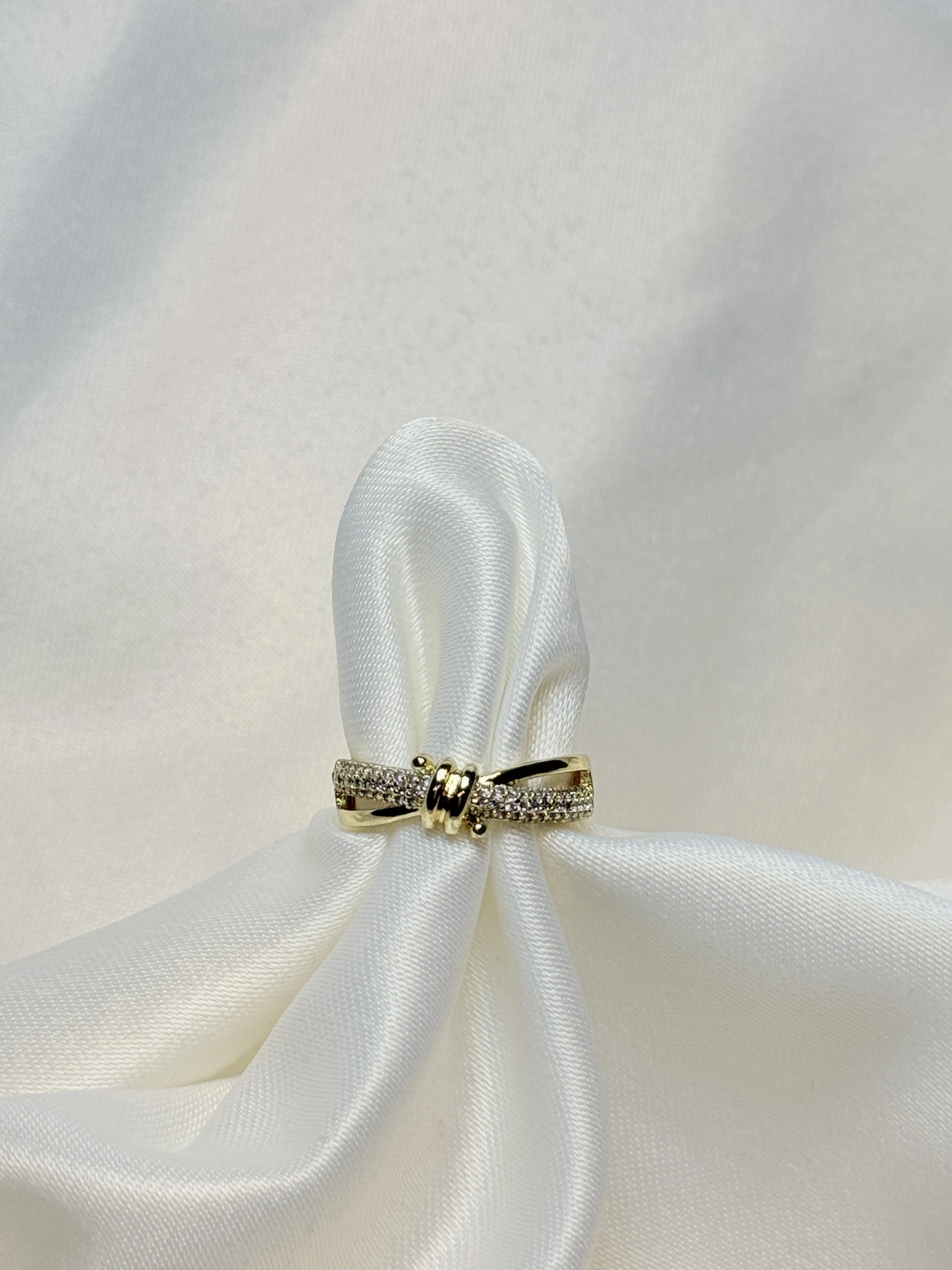 Gold Rengi Gemici Düğüm Zirkon Taşlı XP Kadın Yüzük