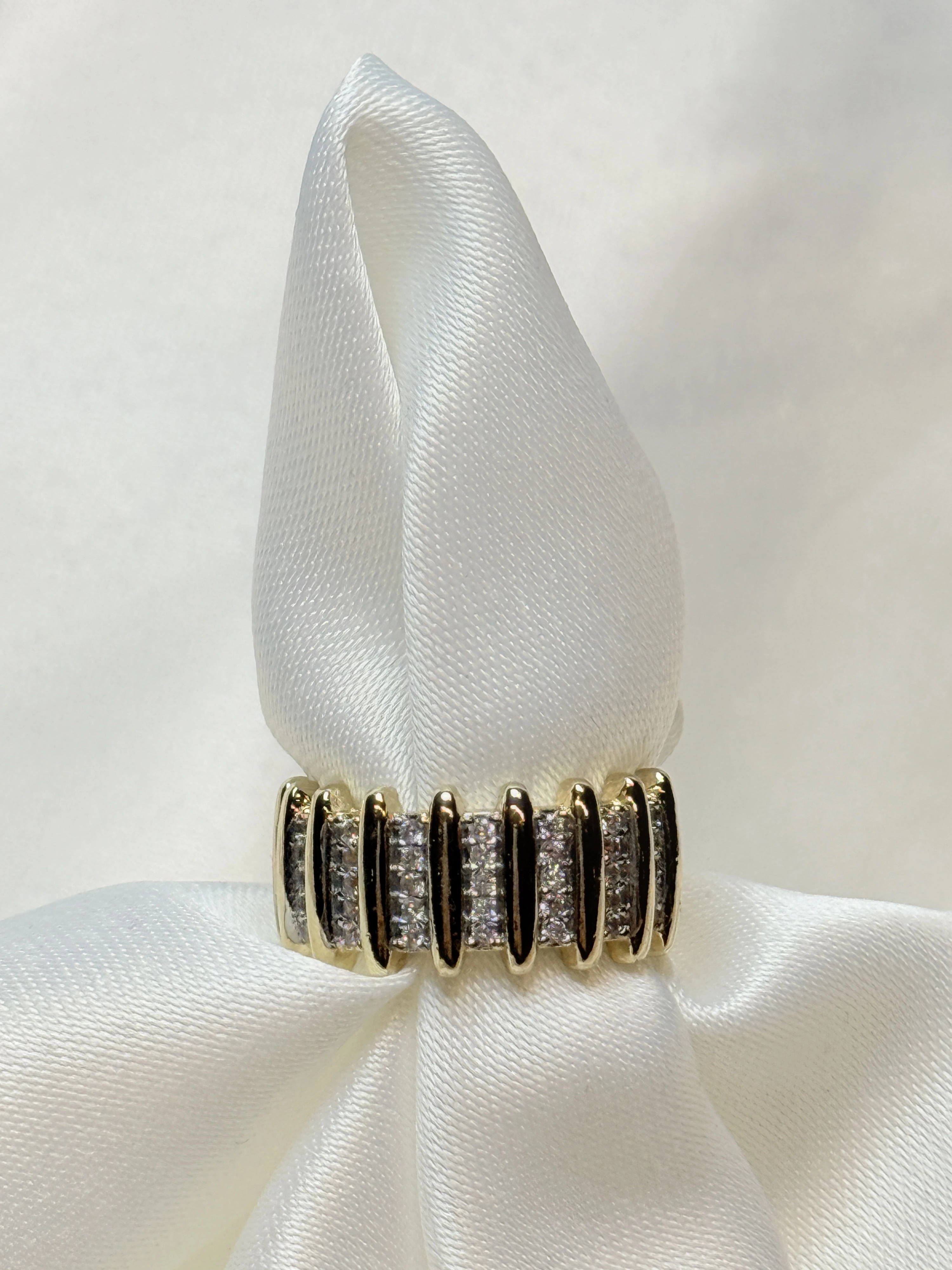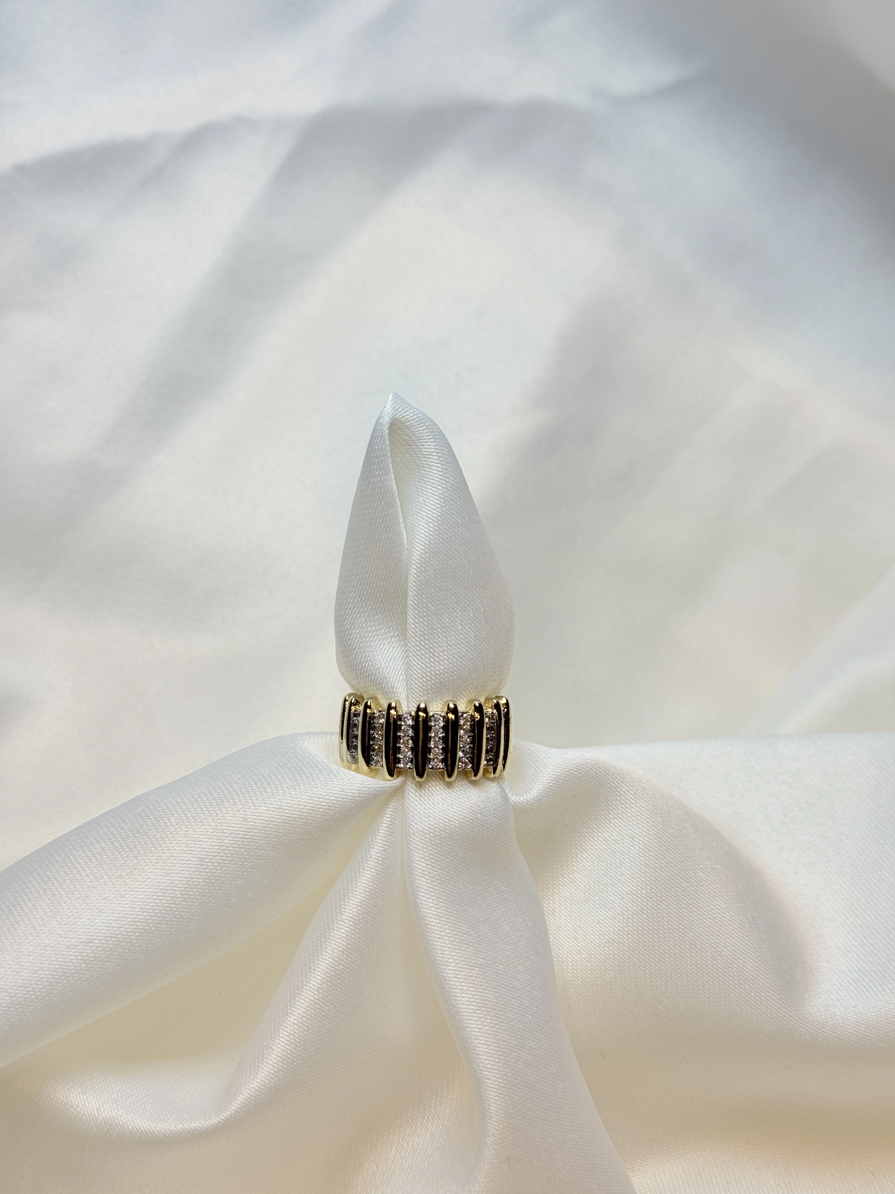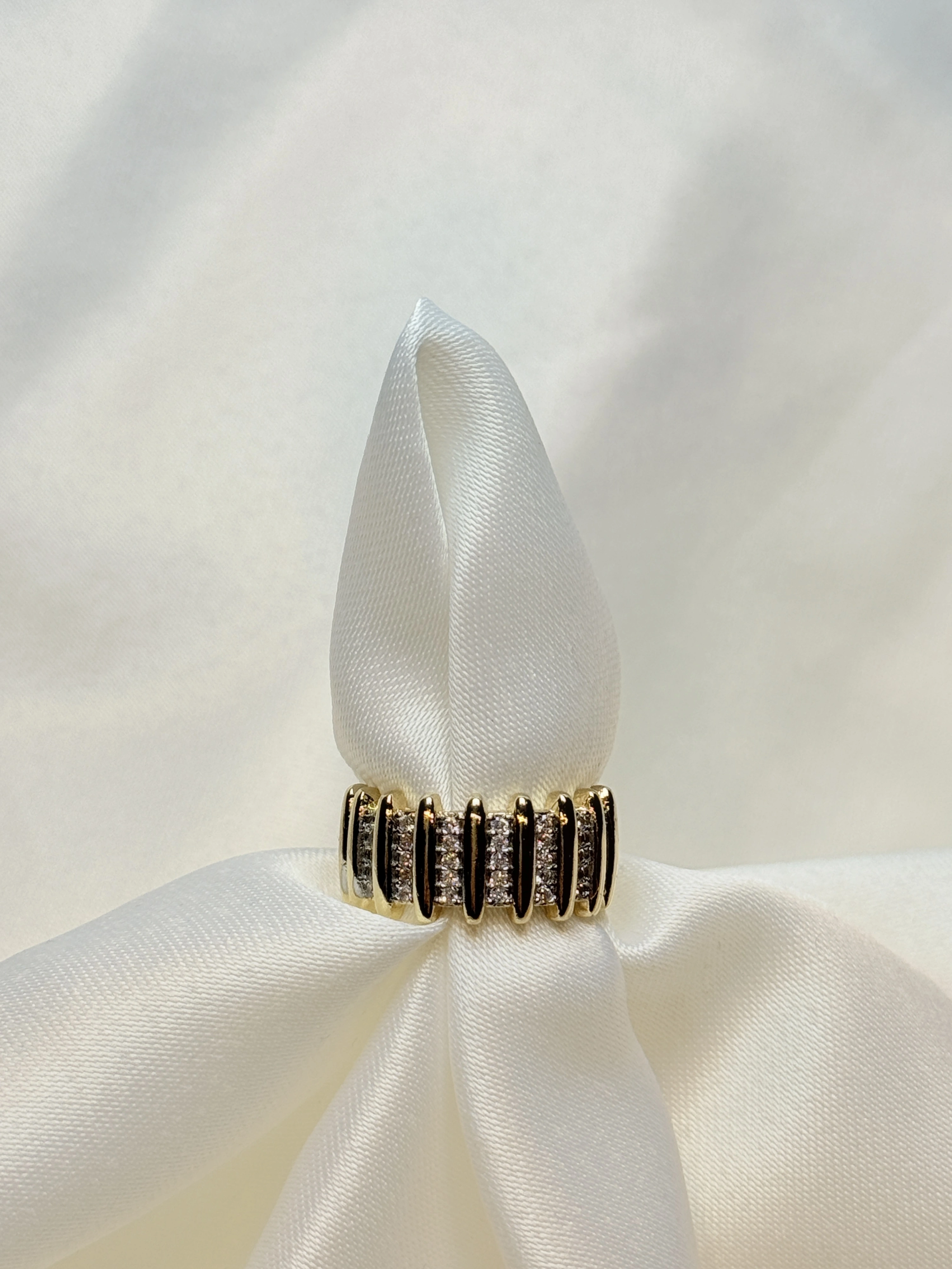 Gold Rengi Sıra Çizgili Zirkon Taşlı Ayarlanabilir Kadın Yüzük
