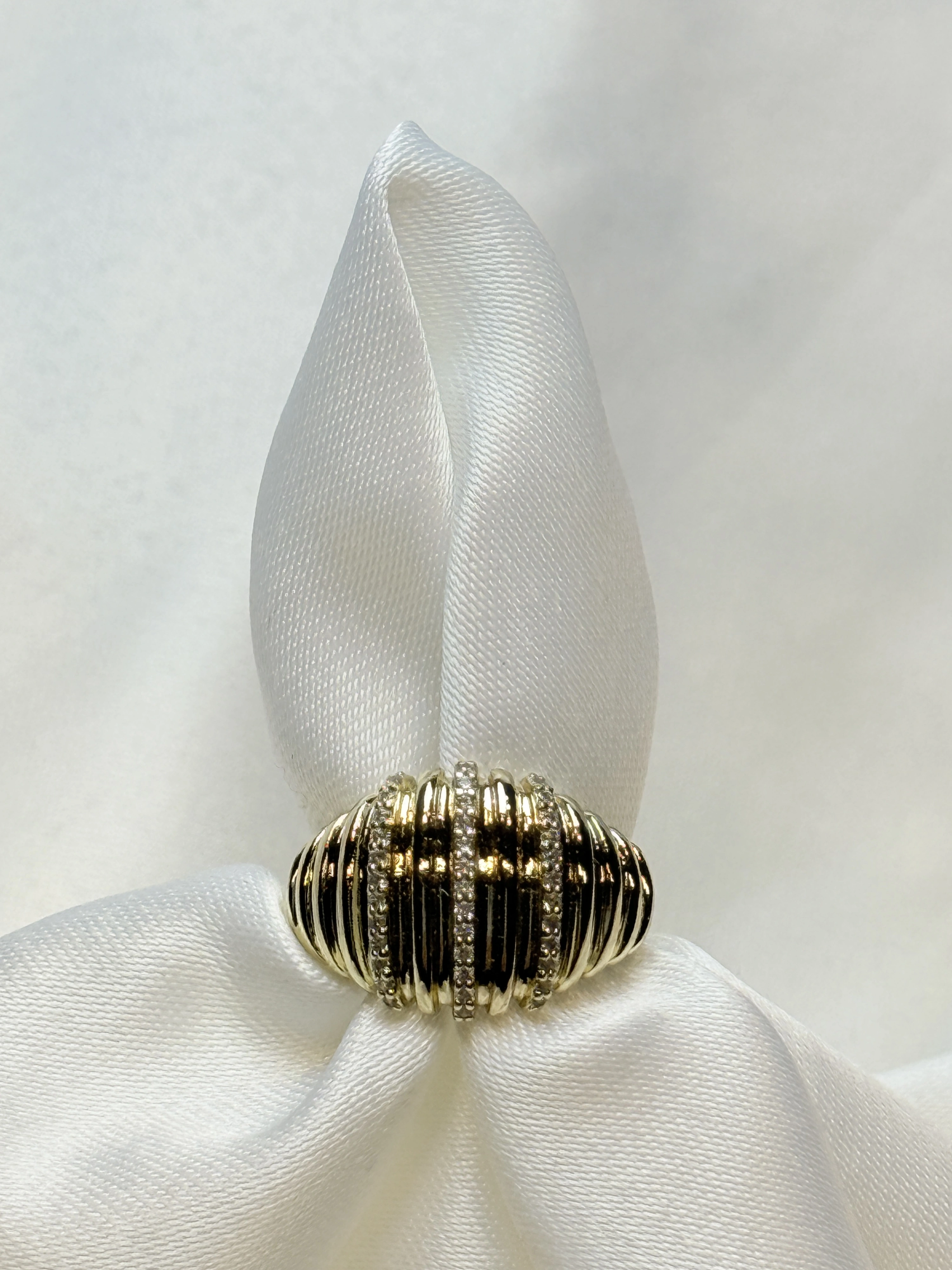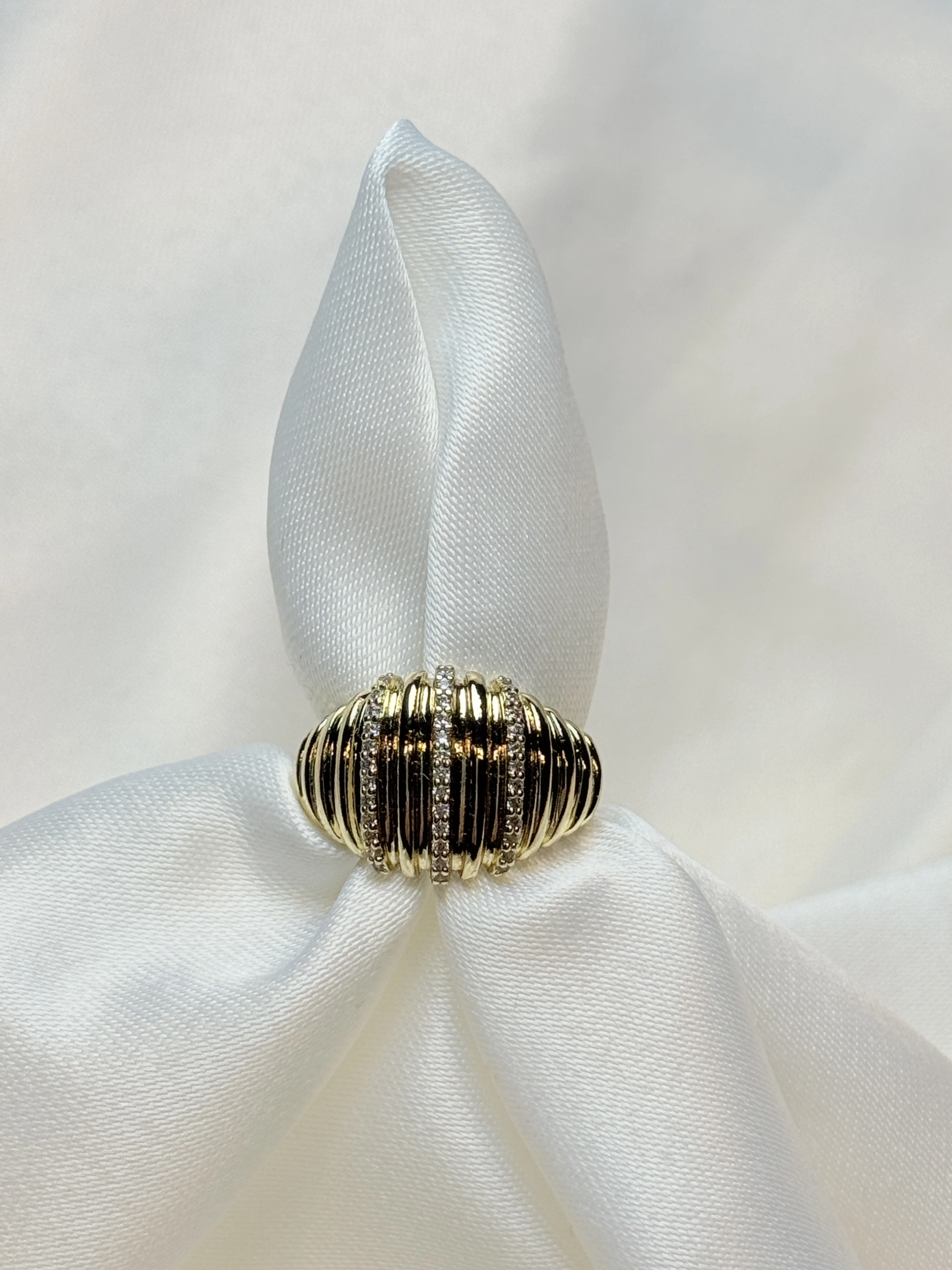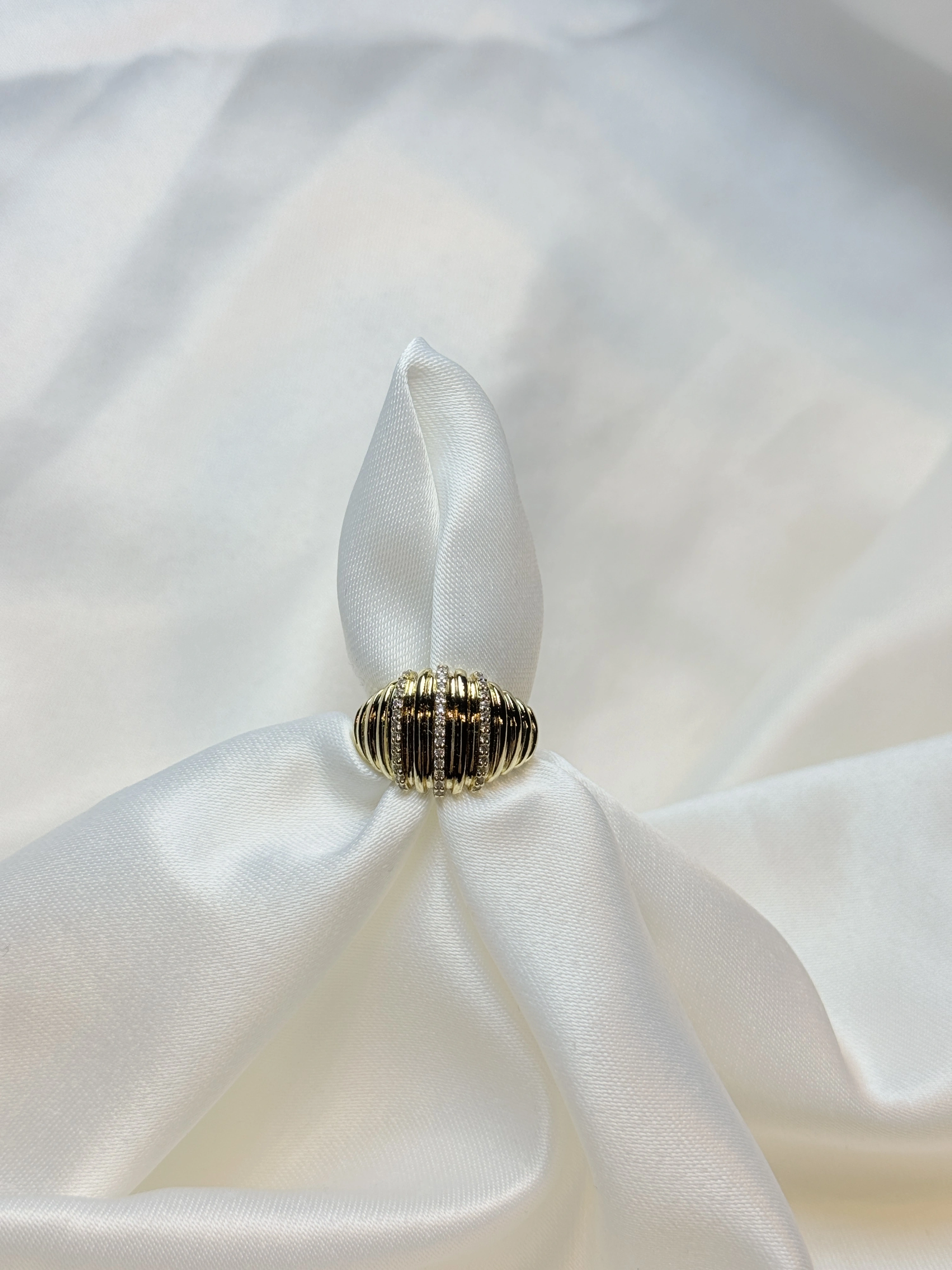 Gold Rengi Çizgili Balon Model Zirkon Taşlı XP Kadın Yüzük