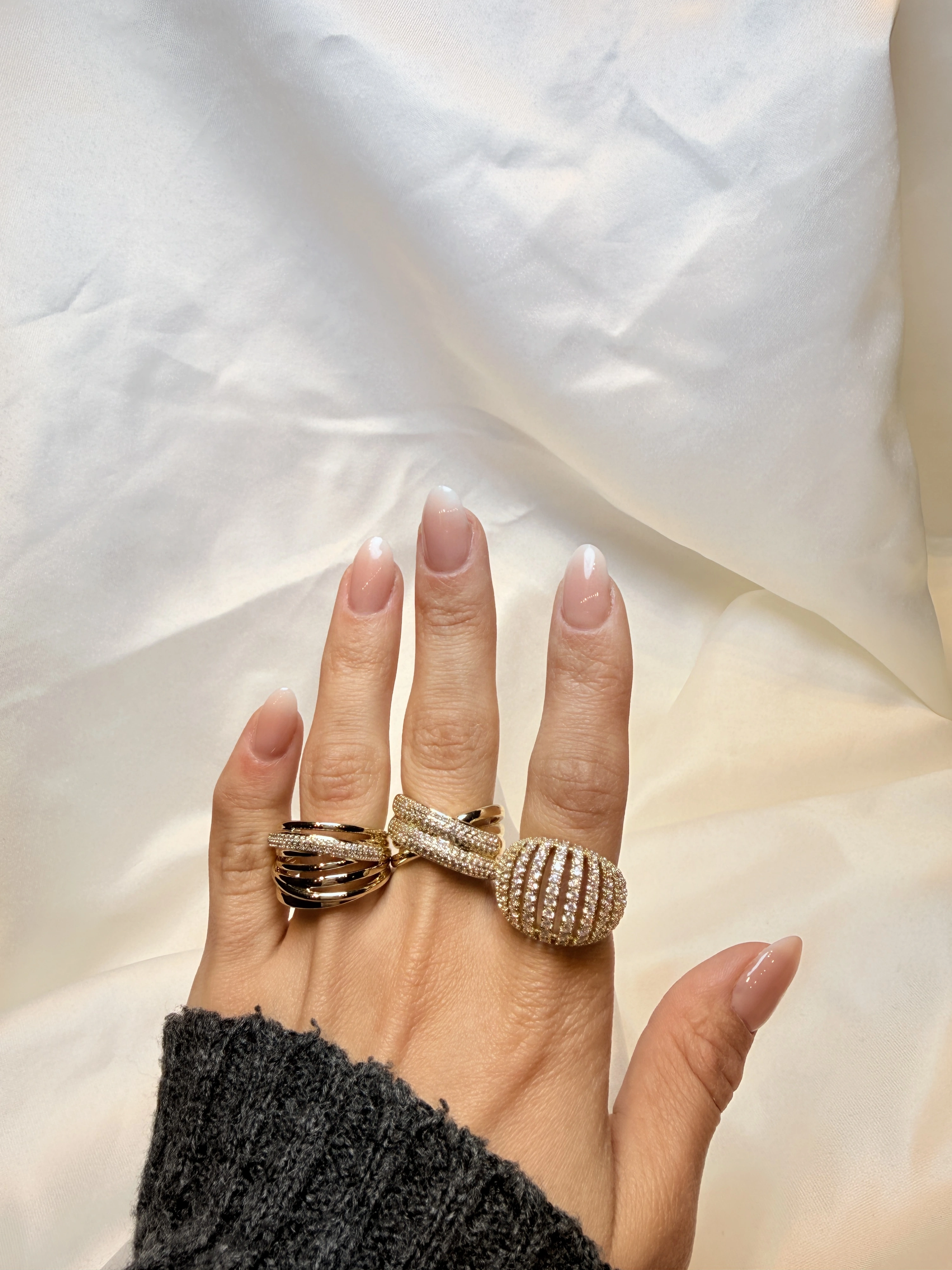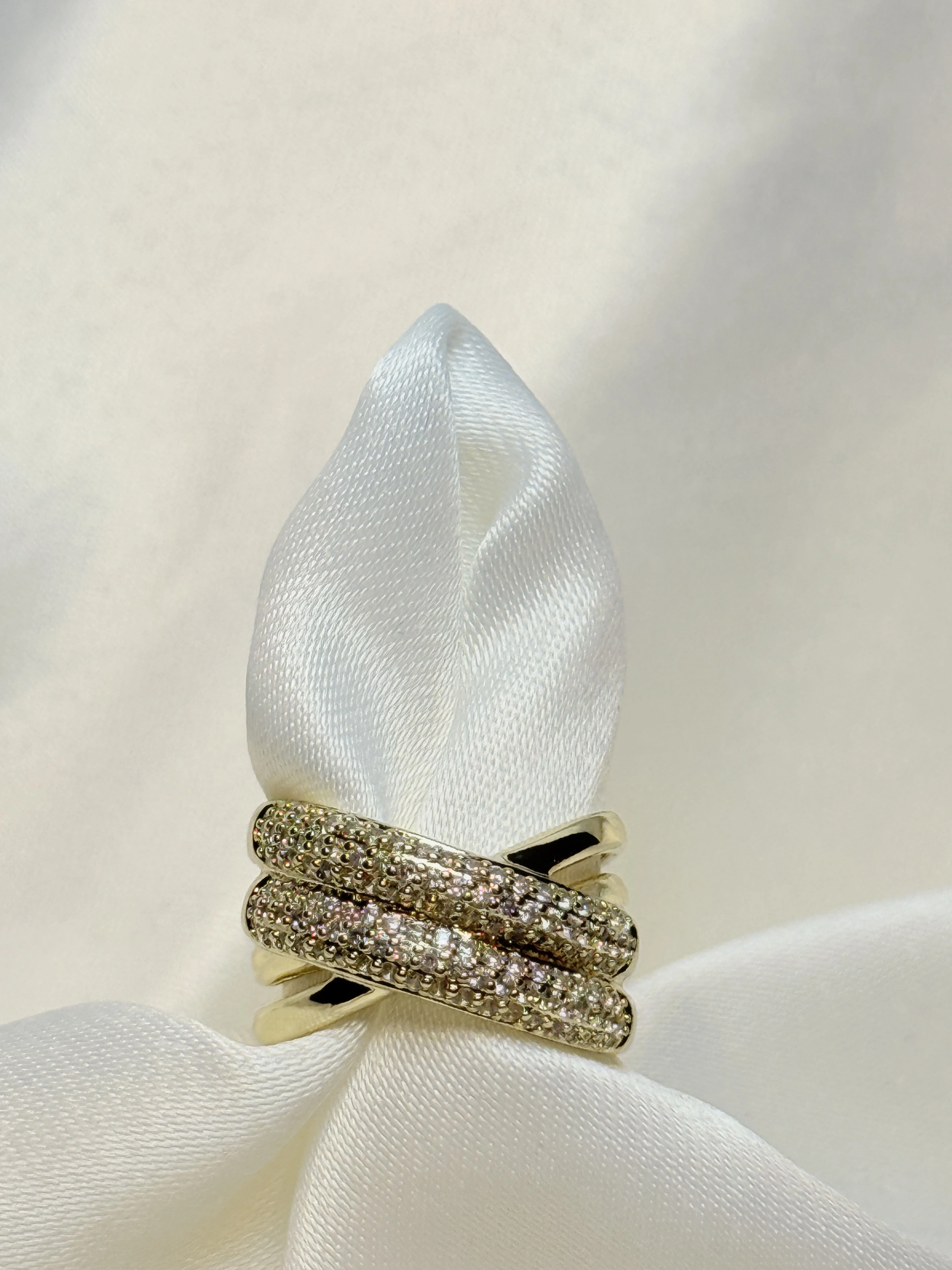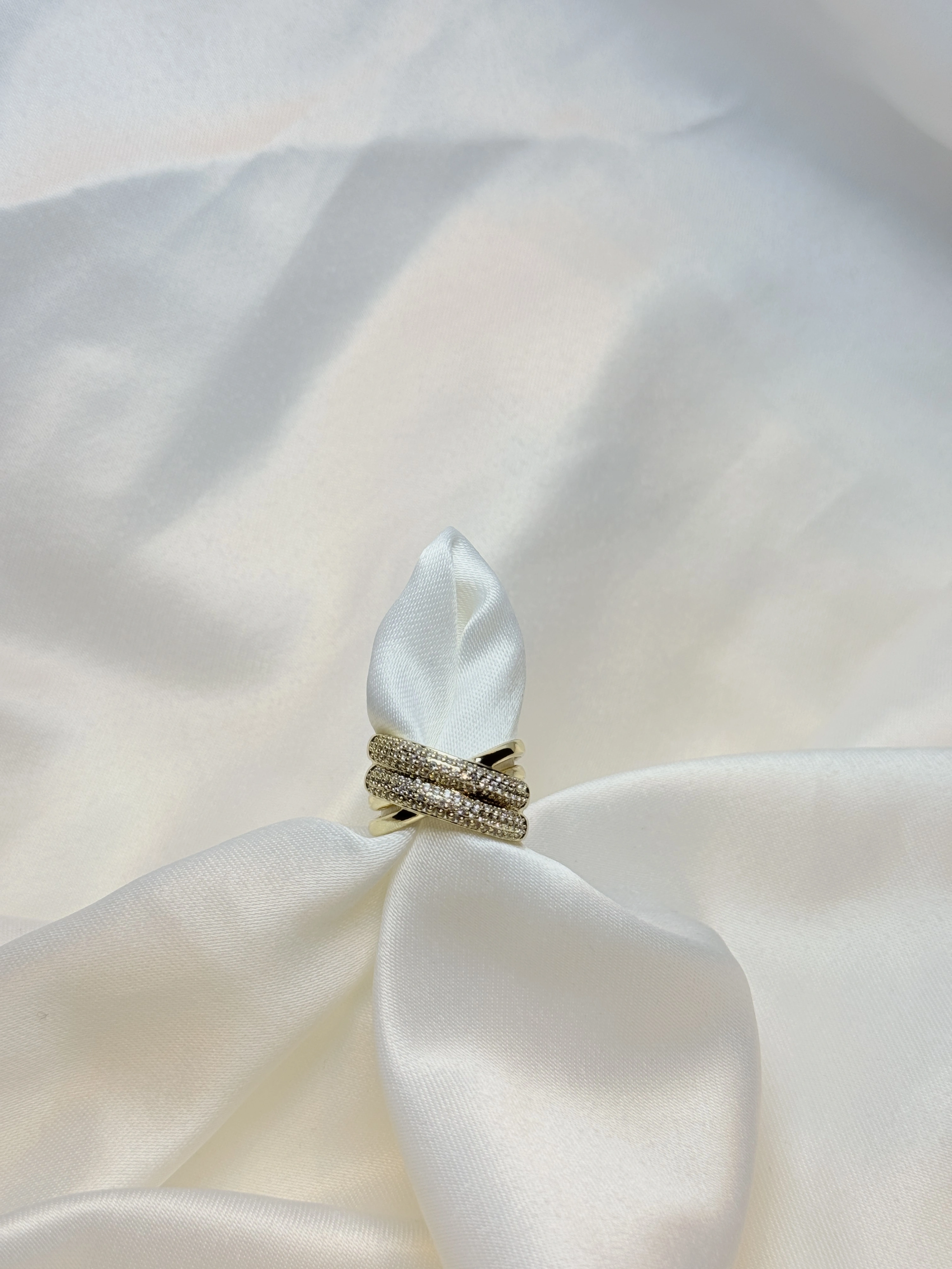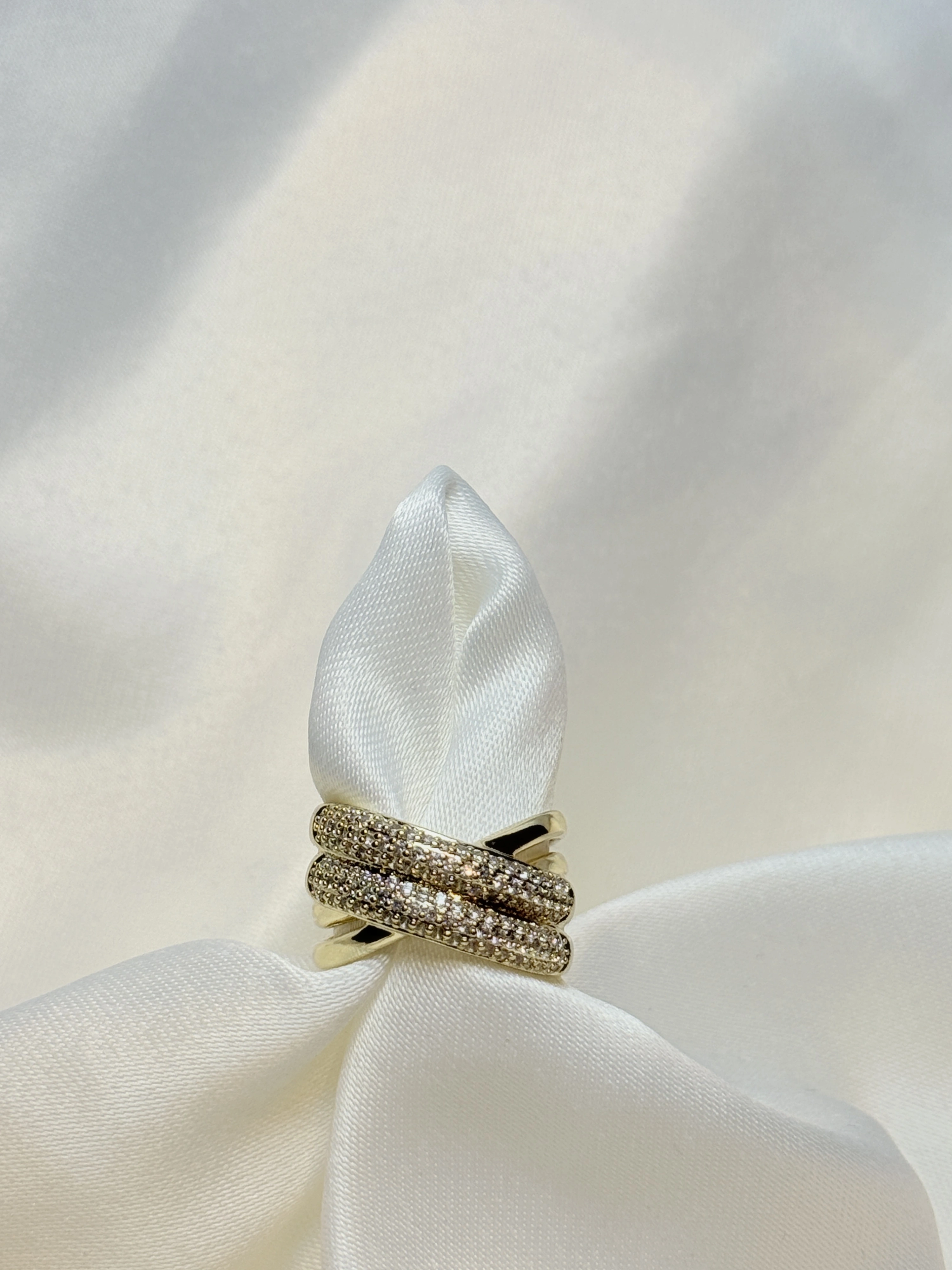 Gold Rengi Örgü Model Zirkon Taşlı XP Kadın Yüzük