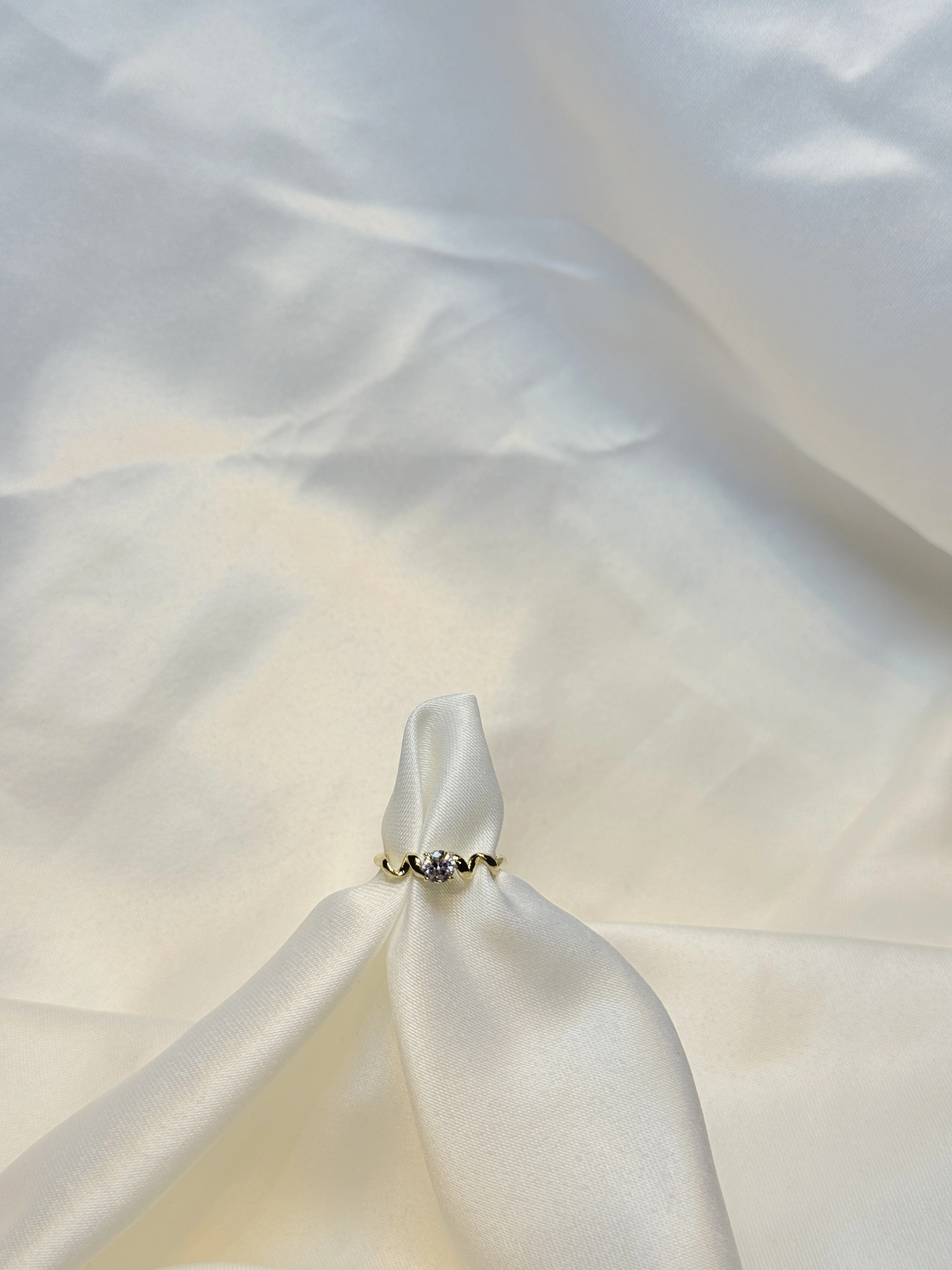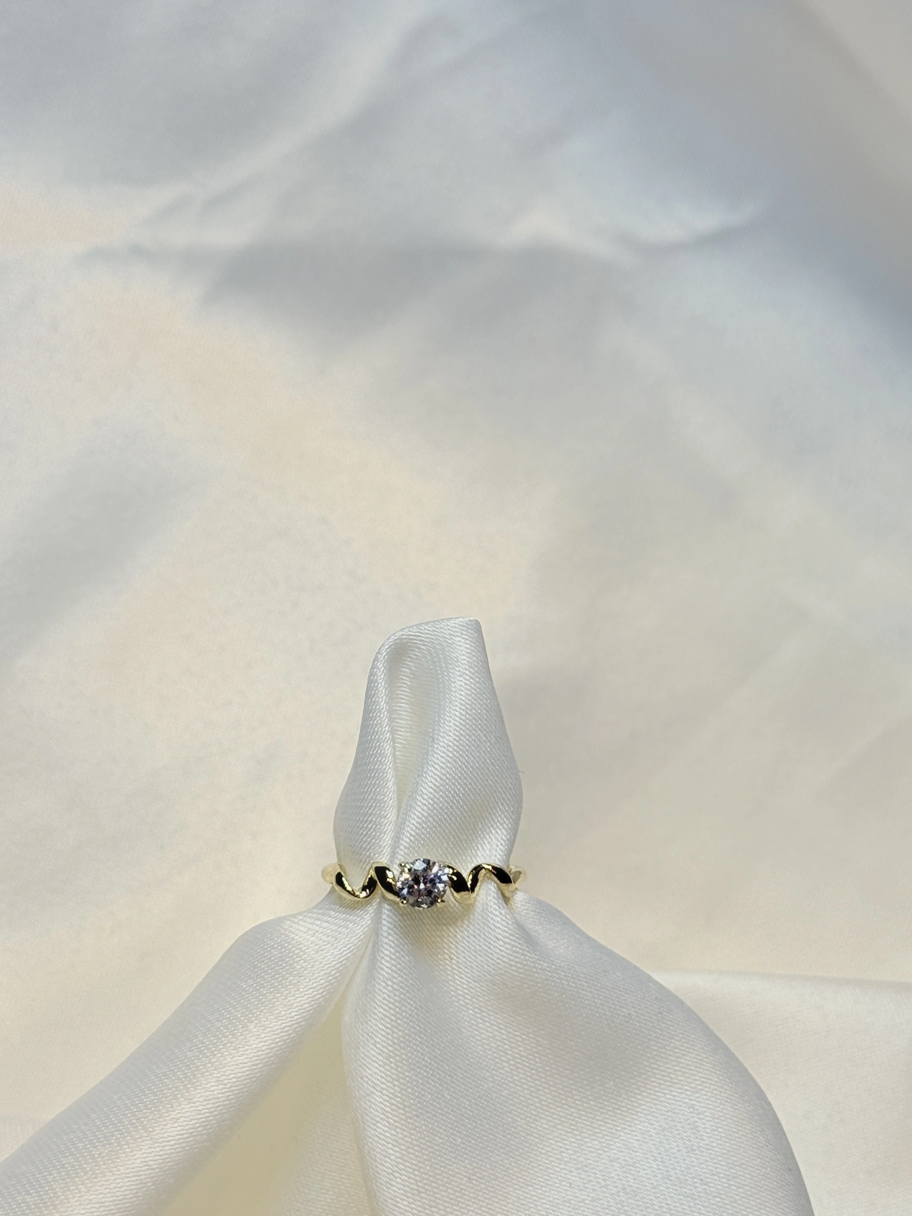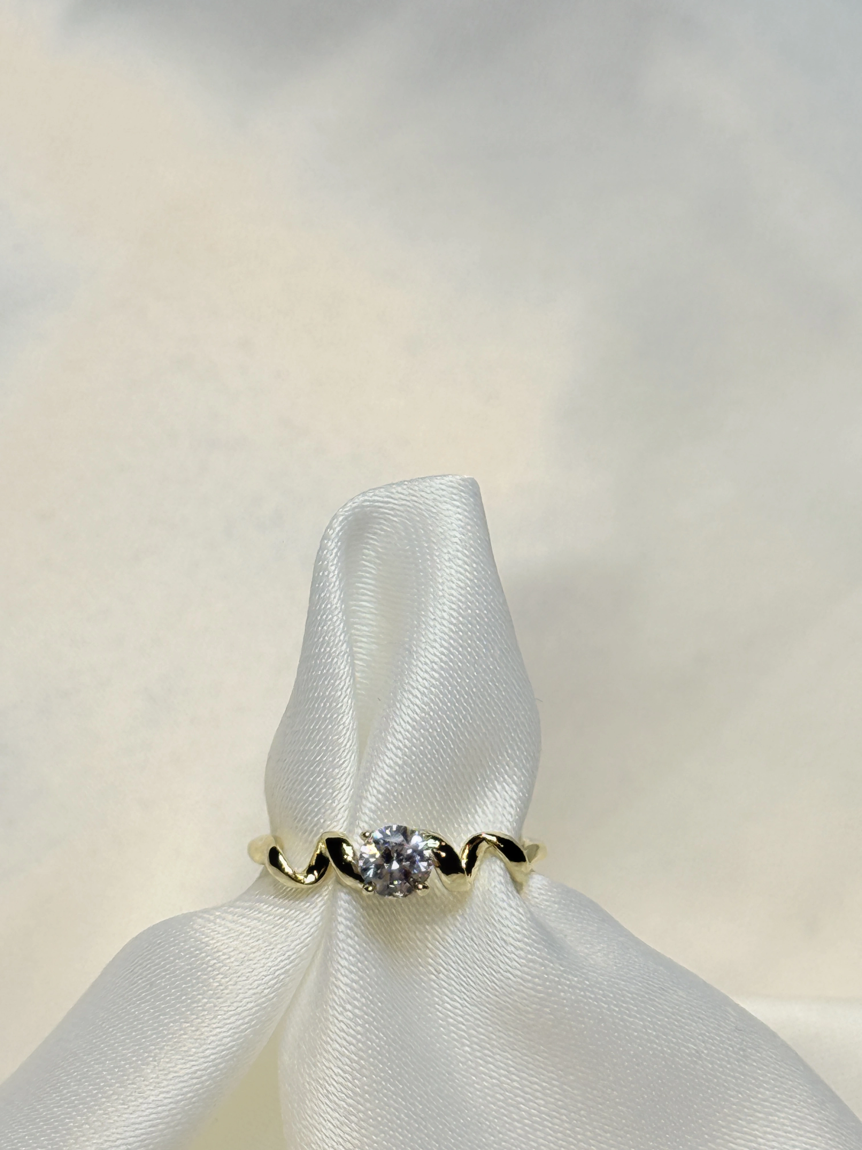Gold Rengi Zigzag Desenli Tek Taş XP Kadın Yüzük
