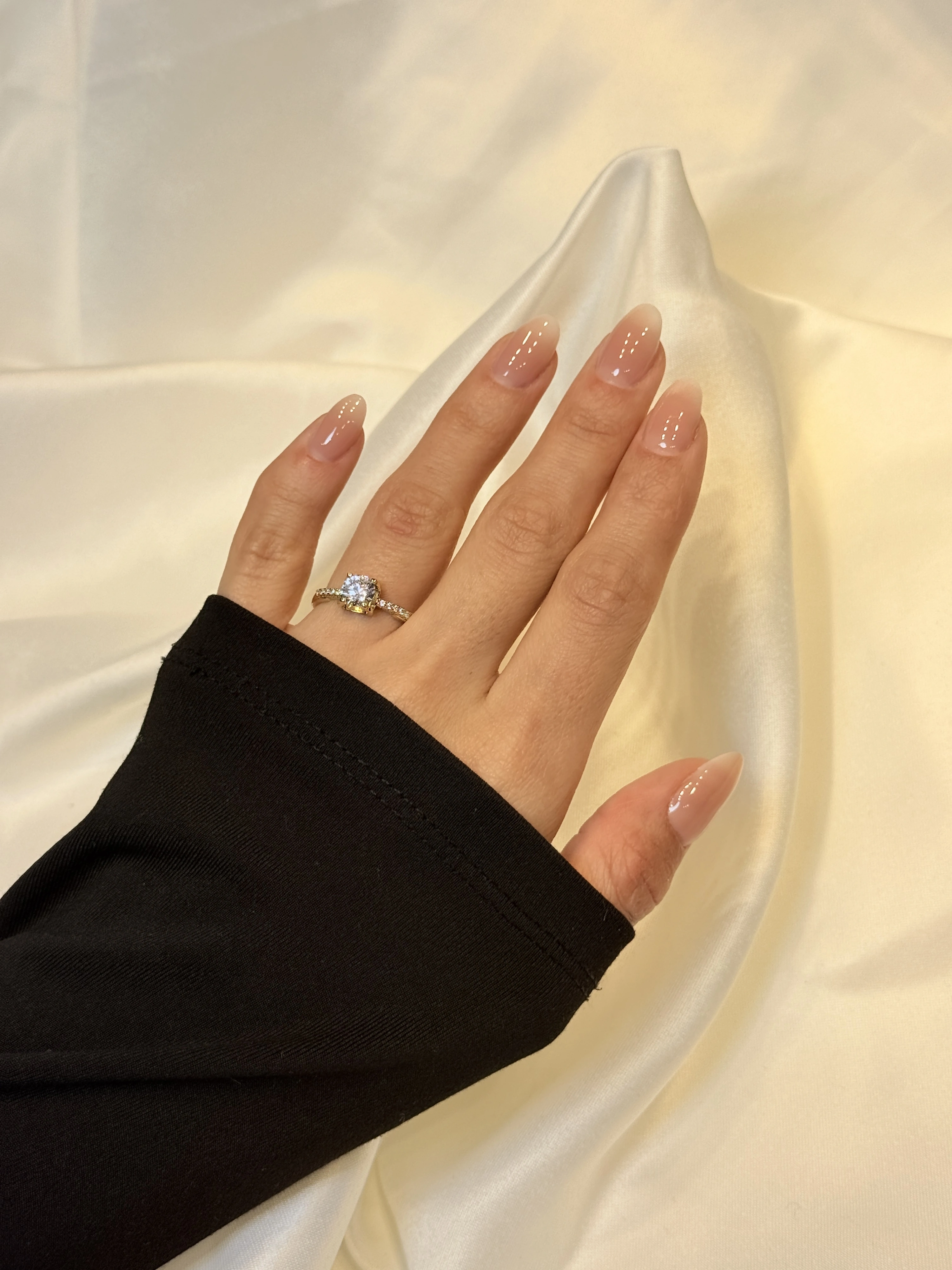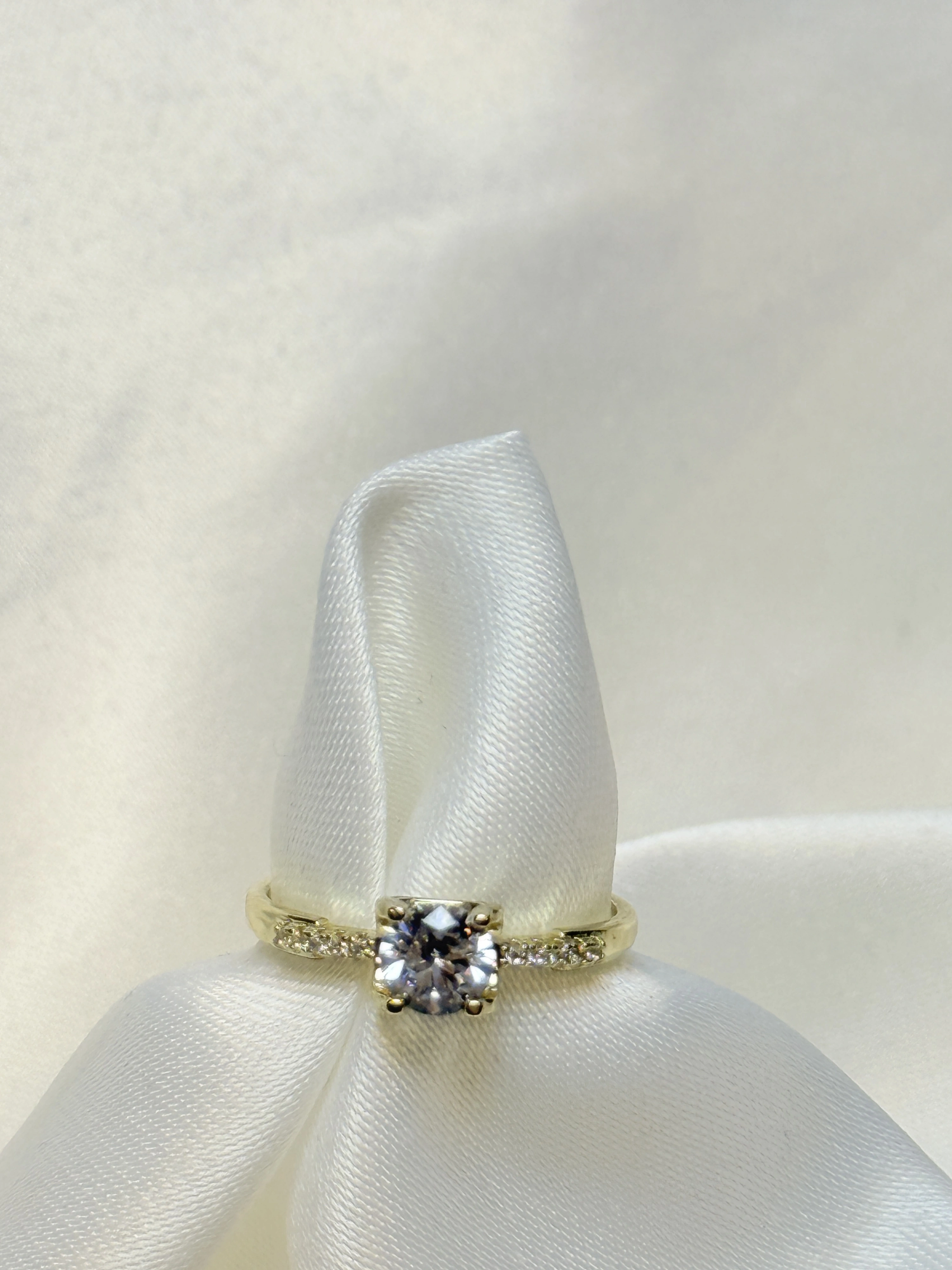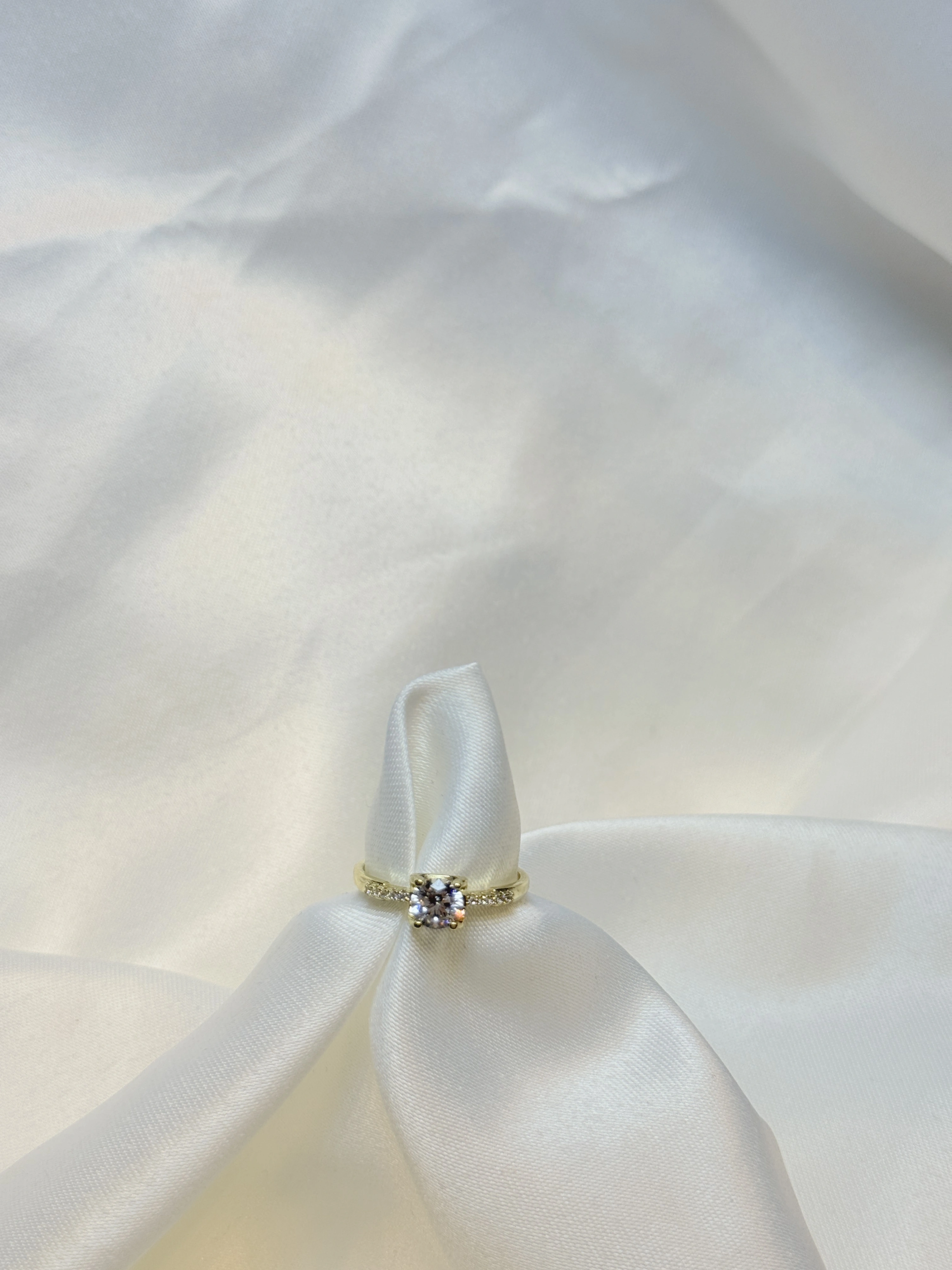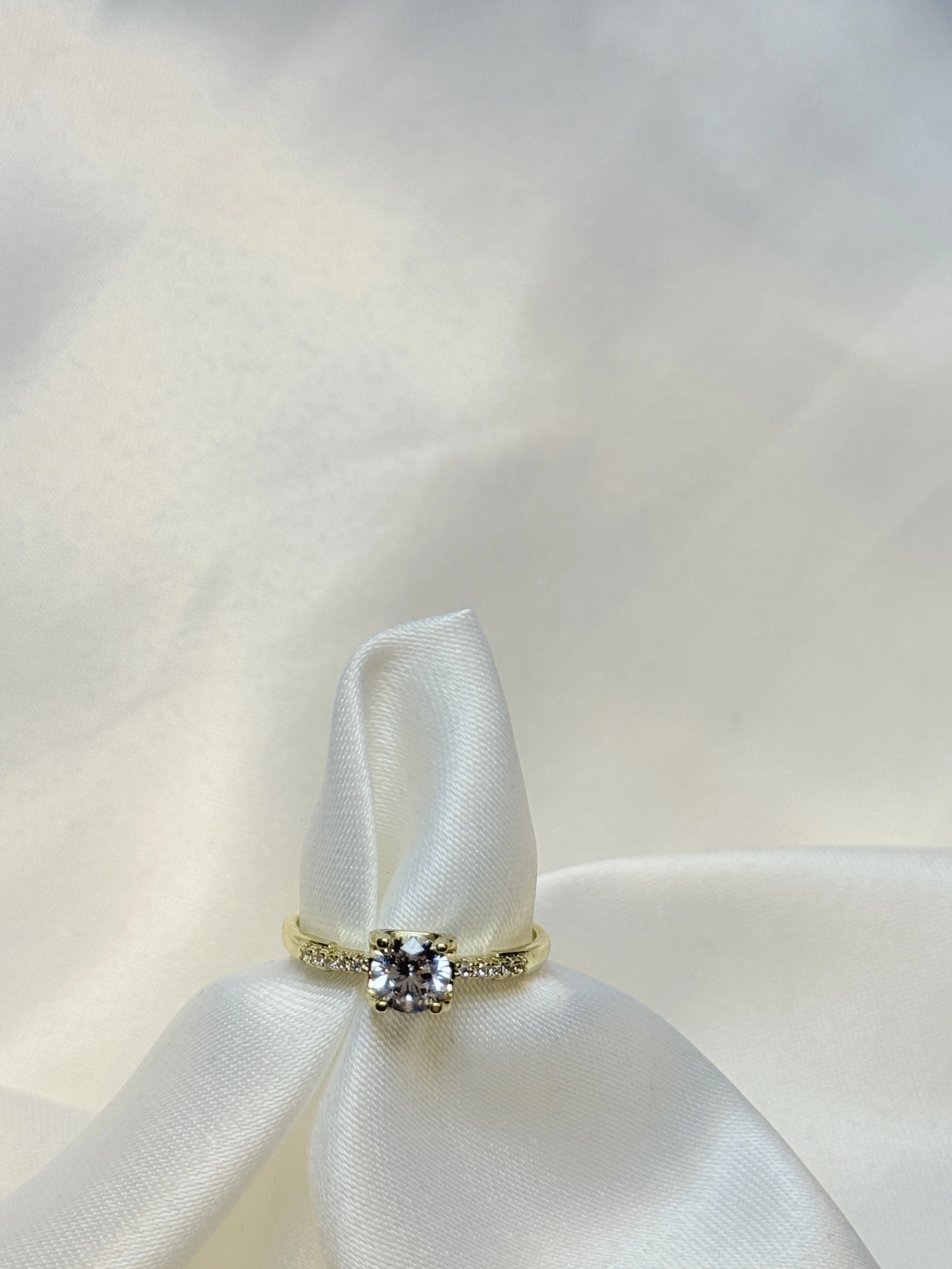Gold Rengi Yanları Zirkon Taşlı Tek Taş XP Kadın Yüzük