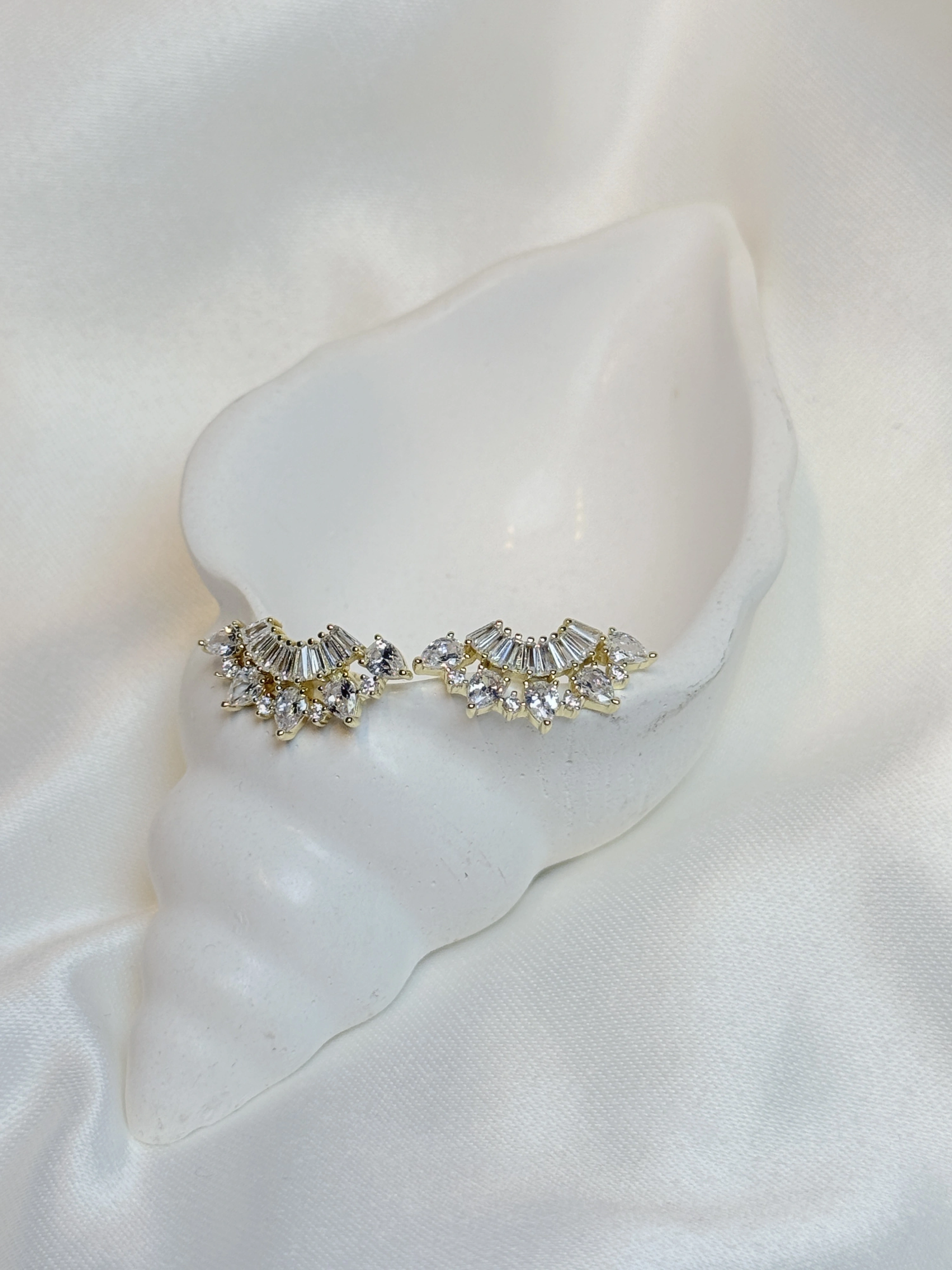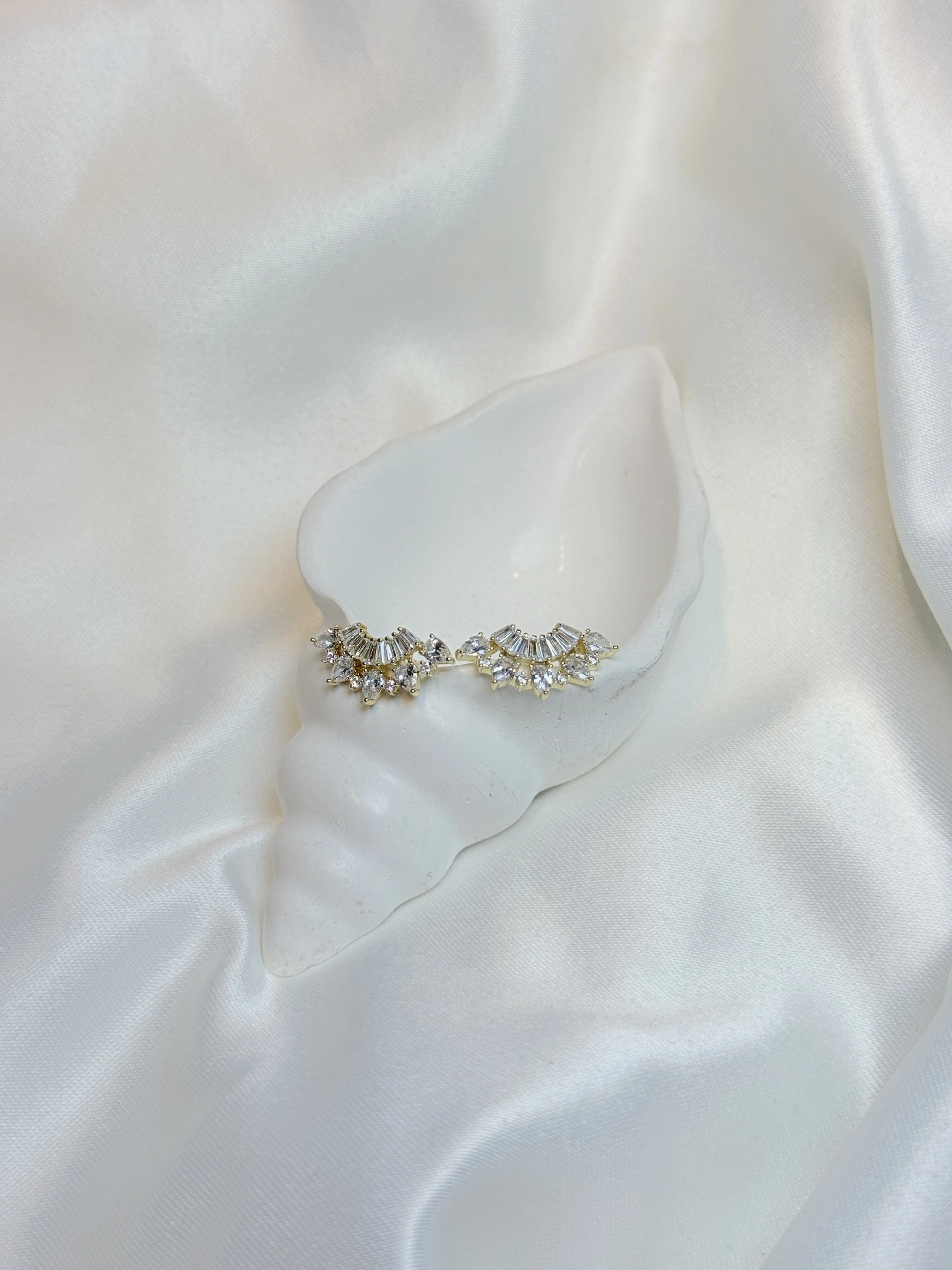 Gold Rengi Yarım Oval Taşlı XP Kadın Küpe