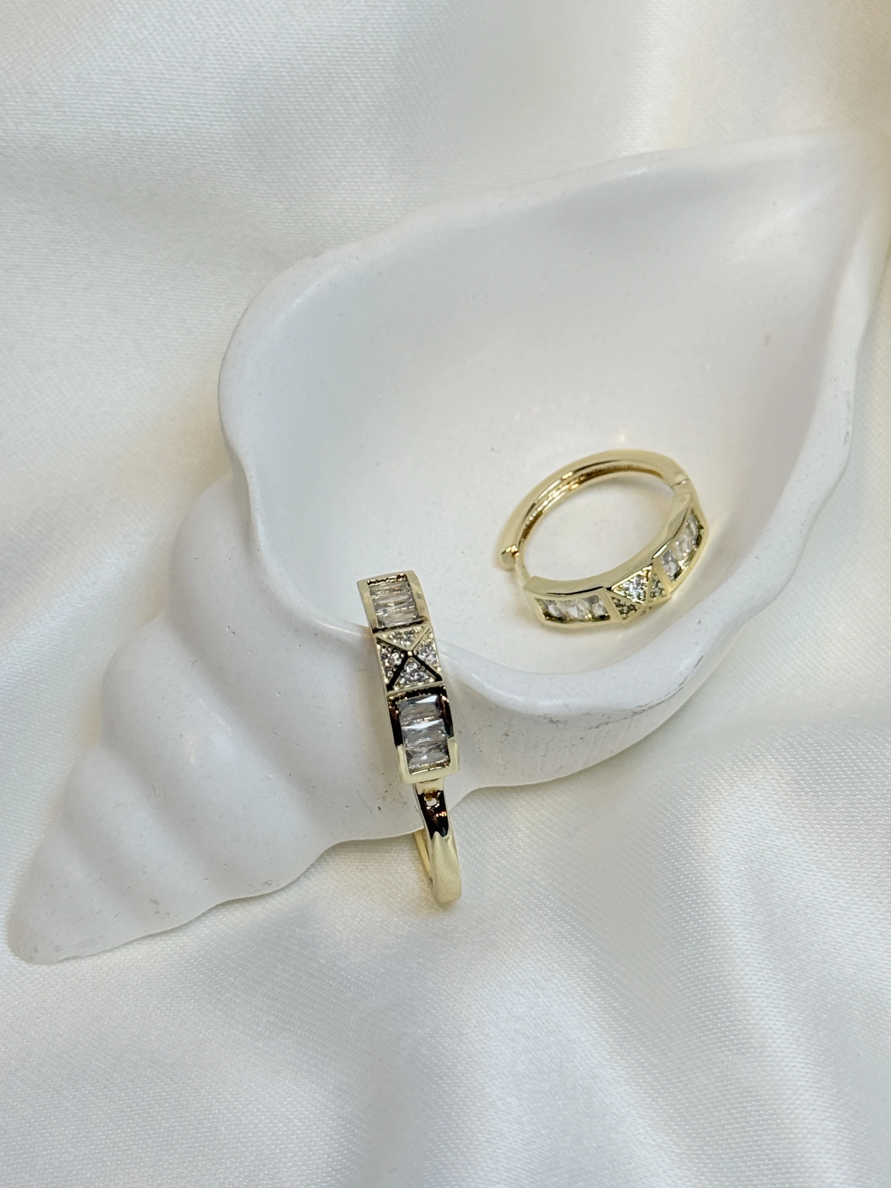 Gold Rengi Baget Taşlı X Desenli CM Kadın Küpe
