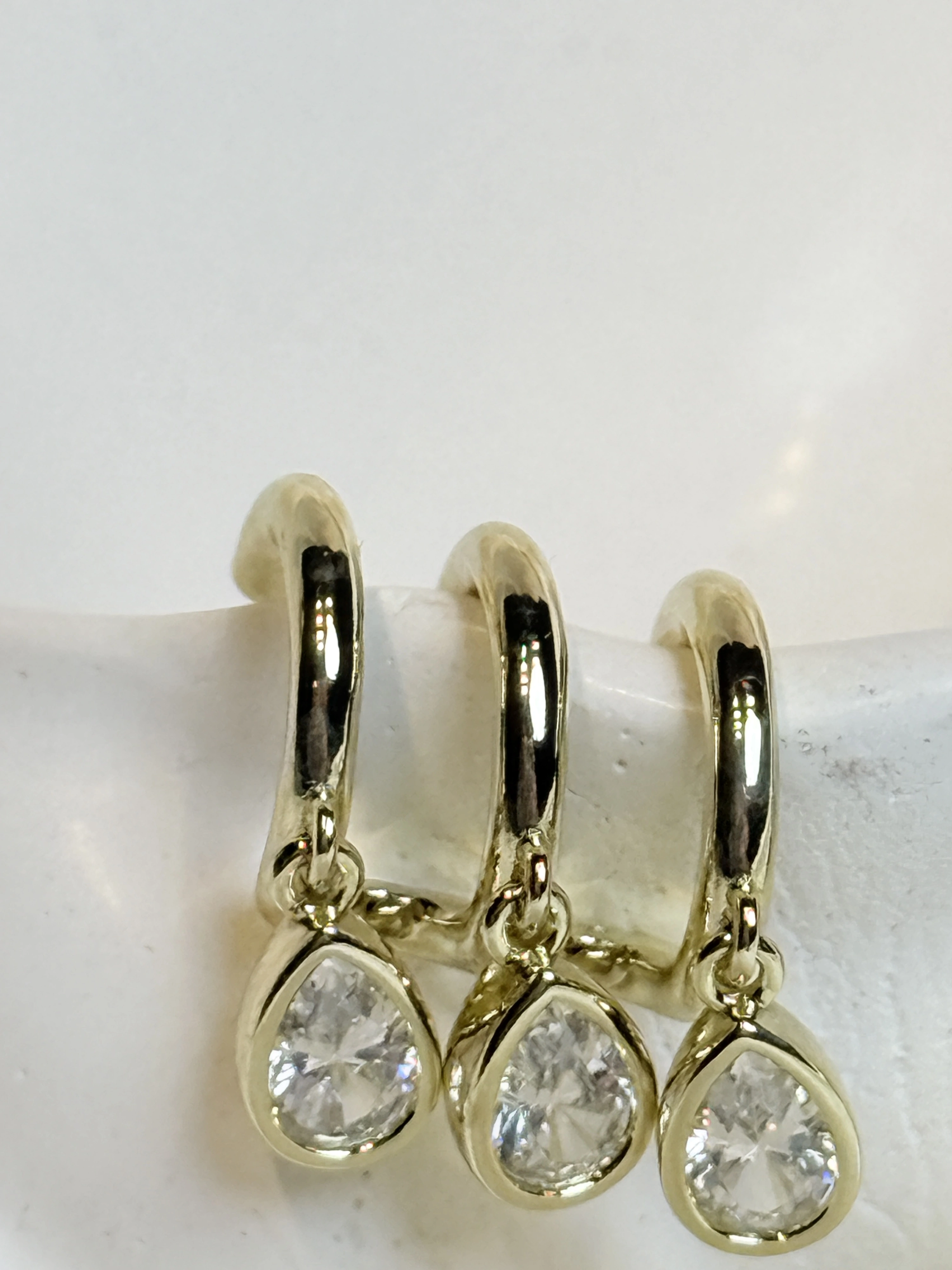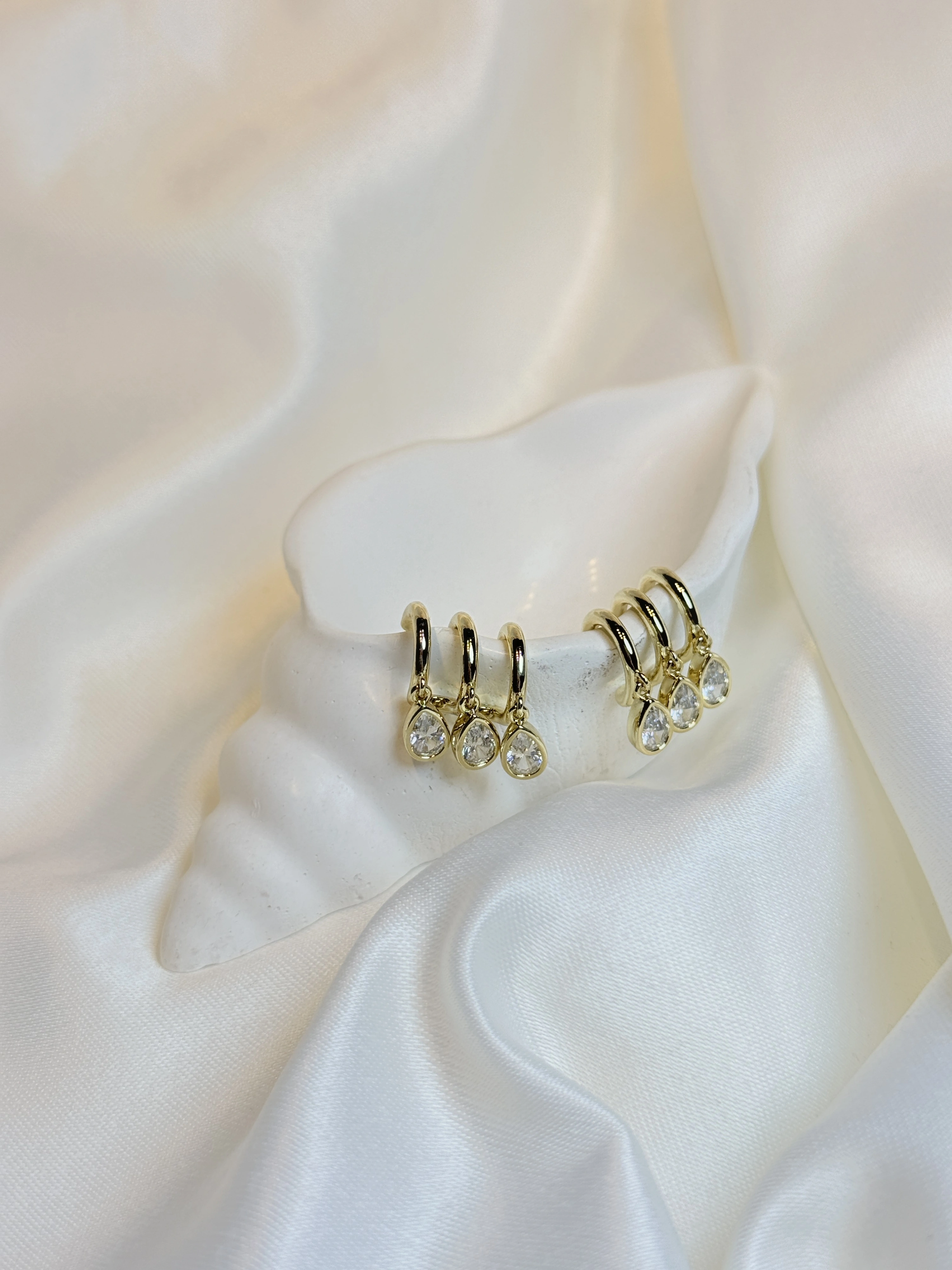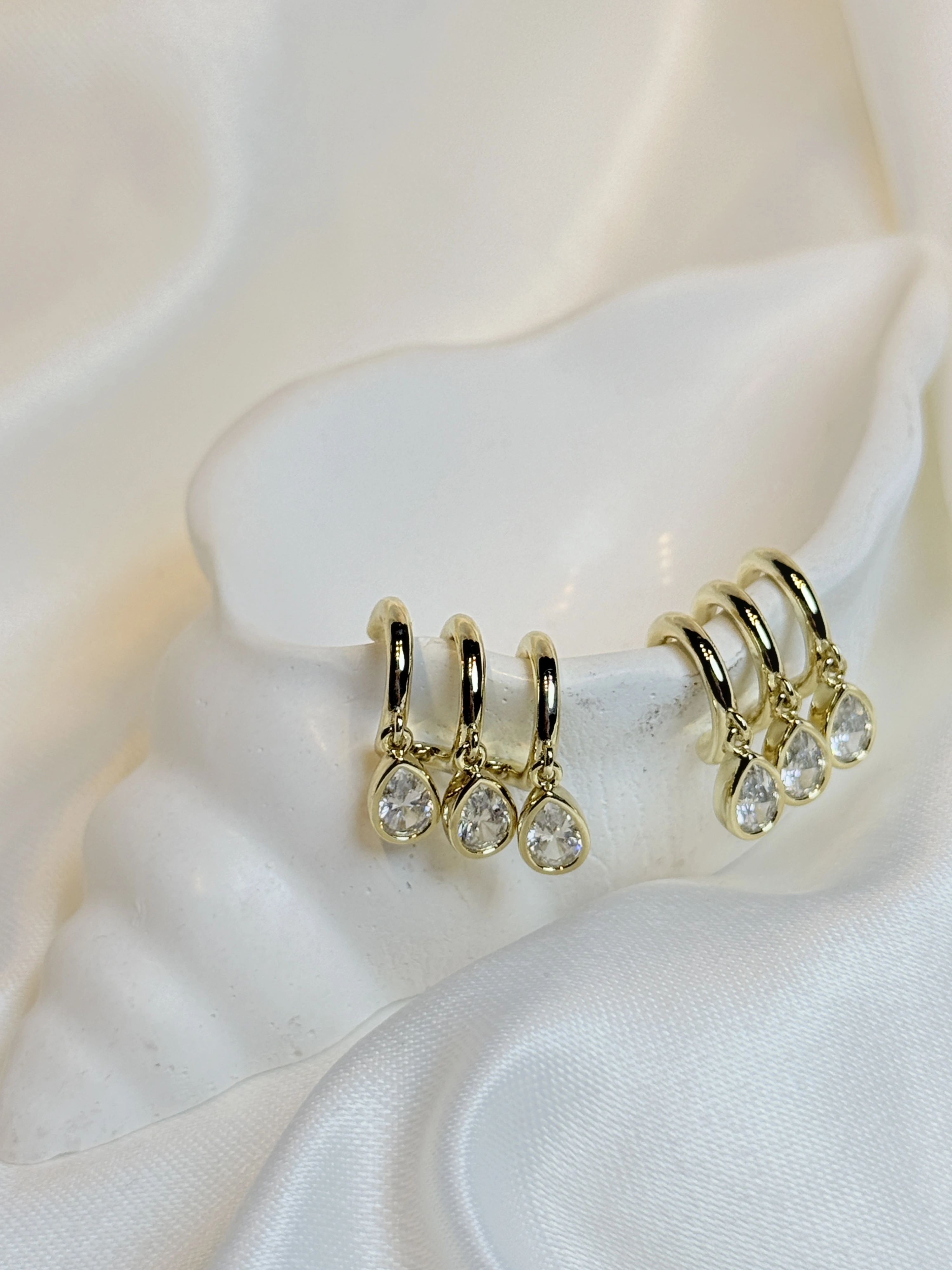 Gold Rengi 3'lü Görünümlü Damla Taş Sallantılı XP Kadın Küpe