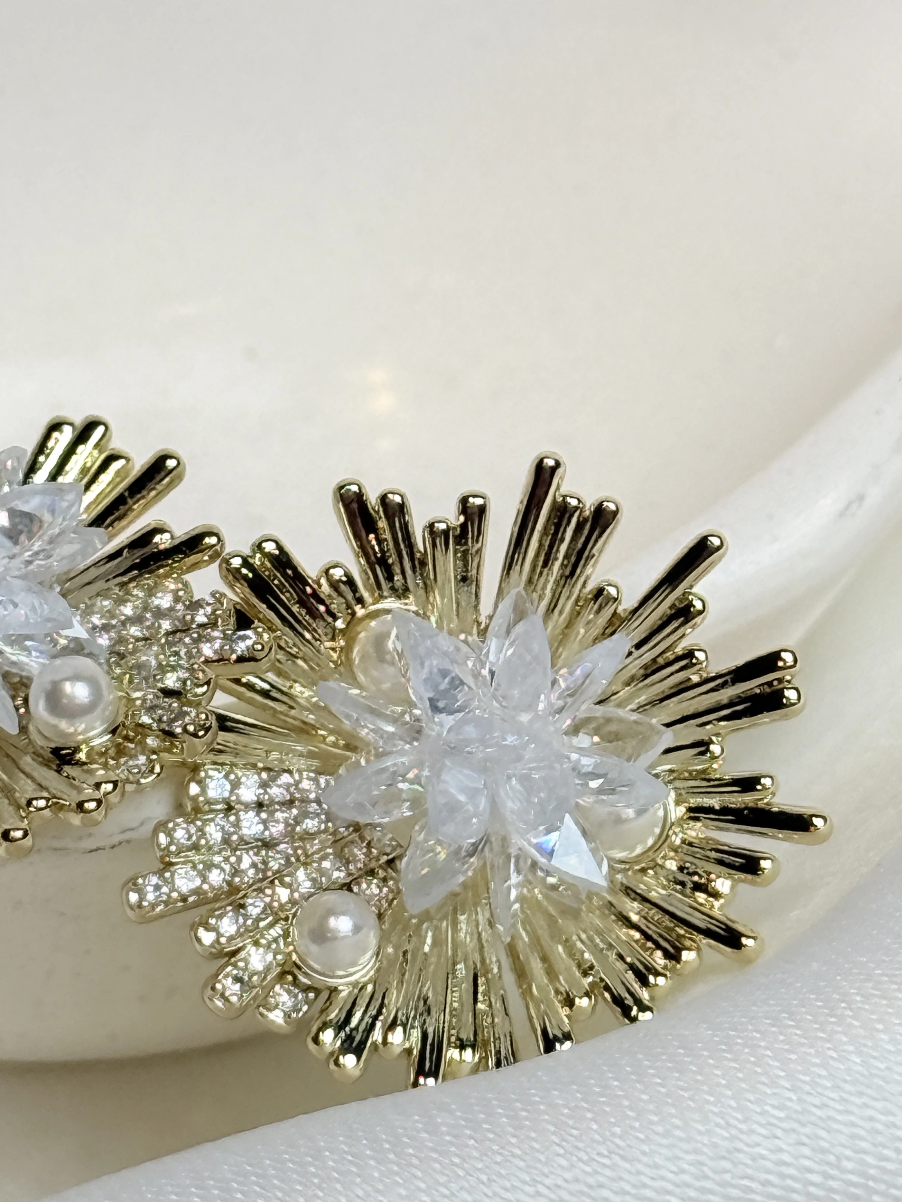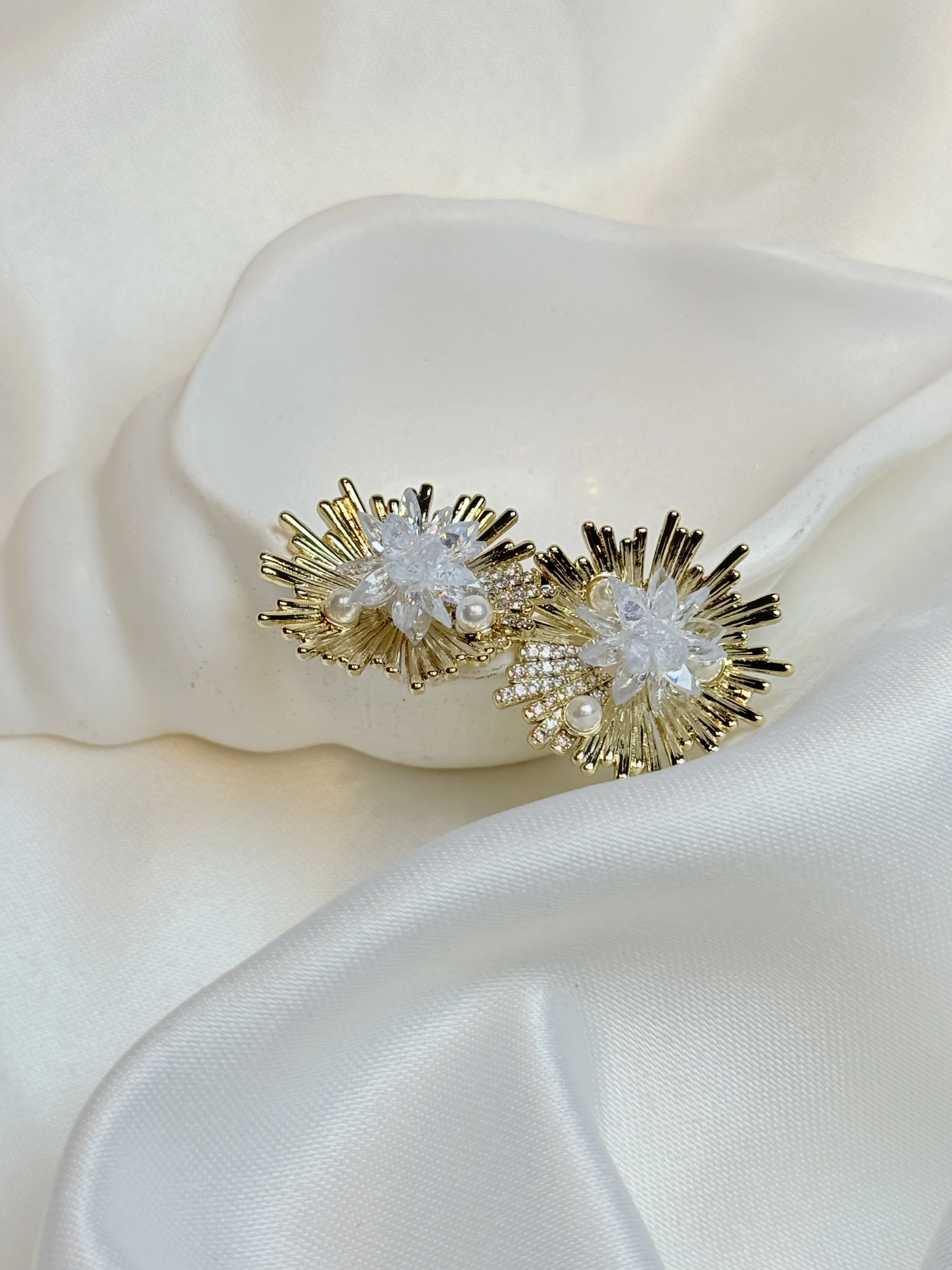 Gold Rengi Zirkon Taşlı Kristal Detaylı XP Kadın Küpe